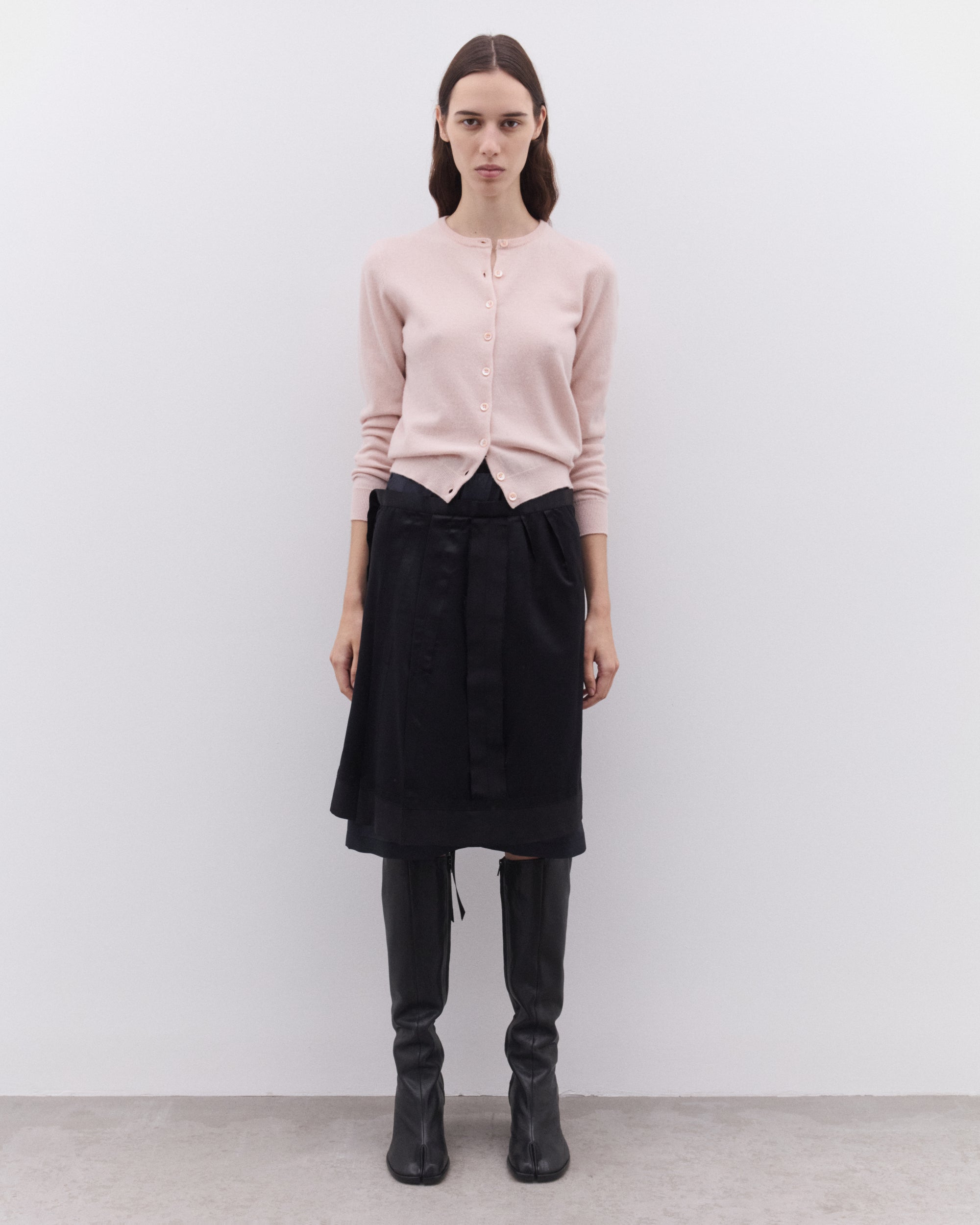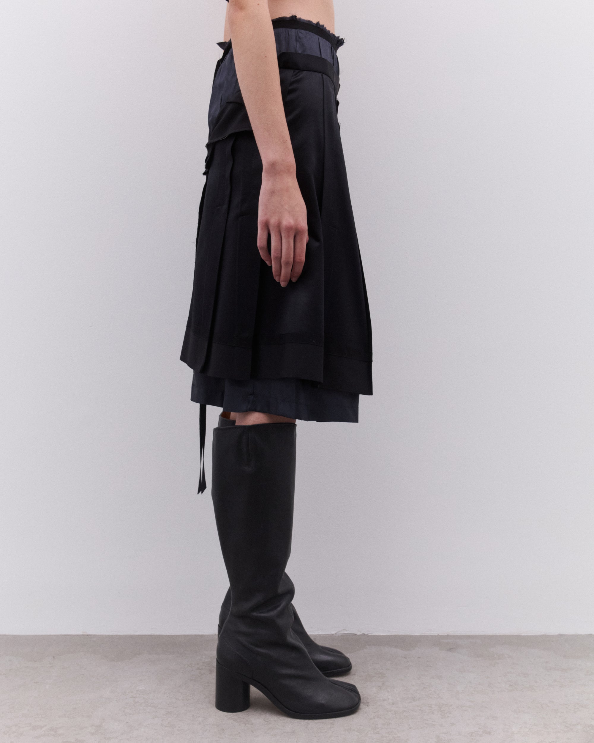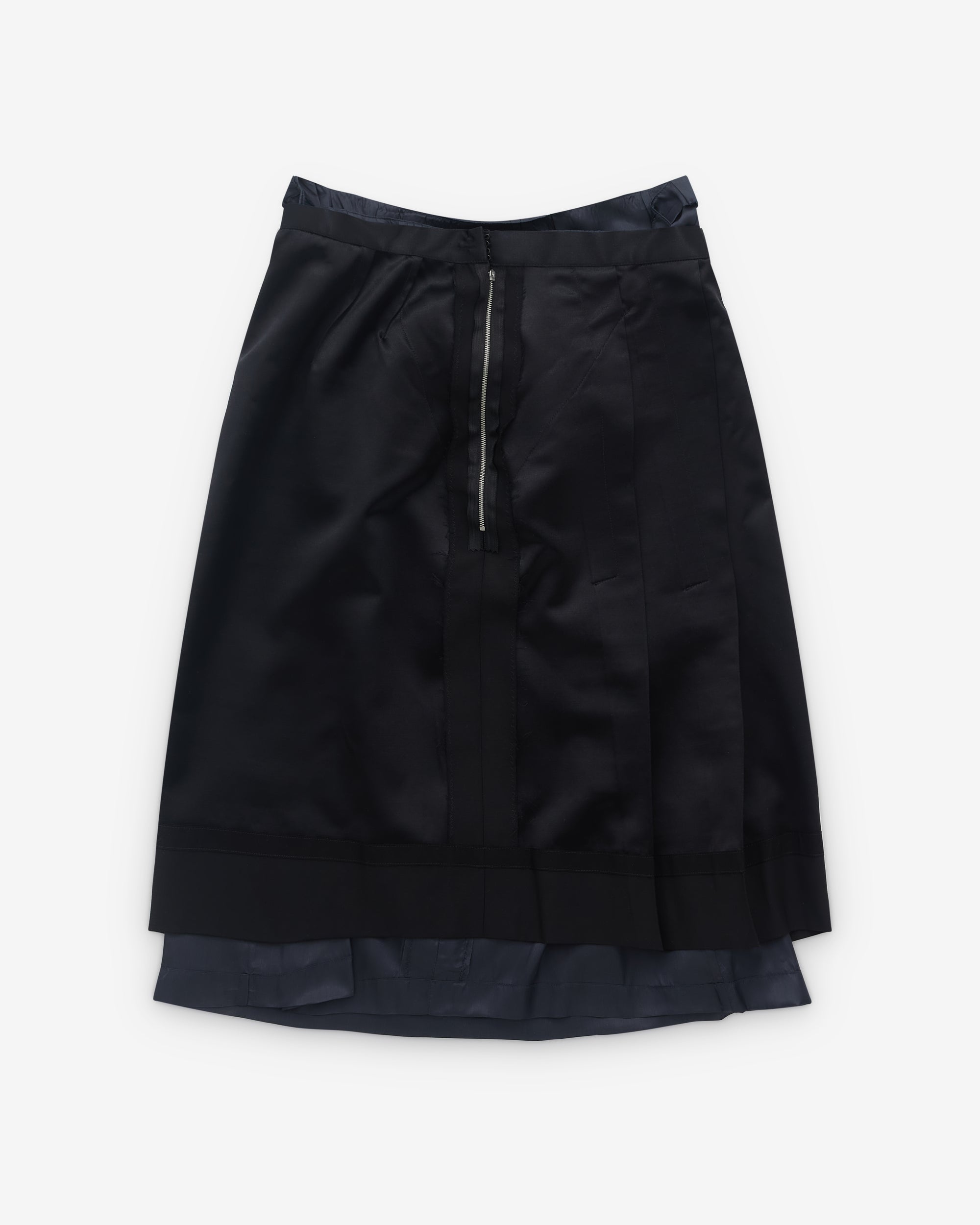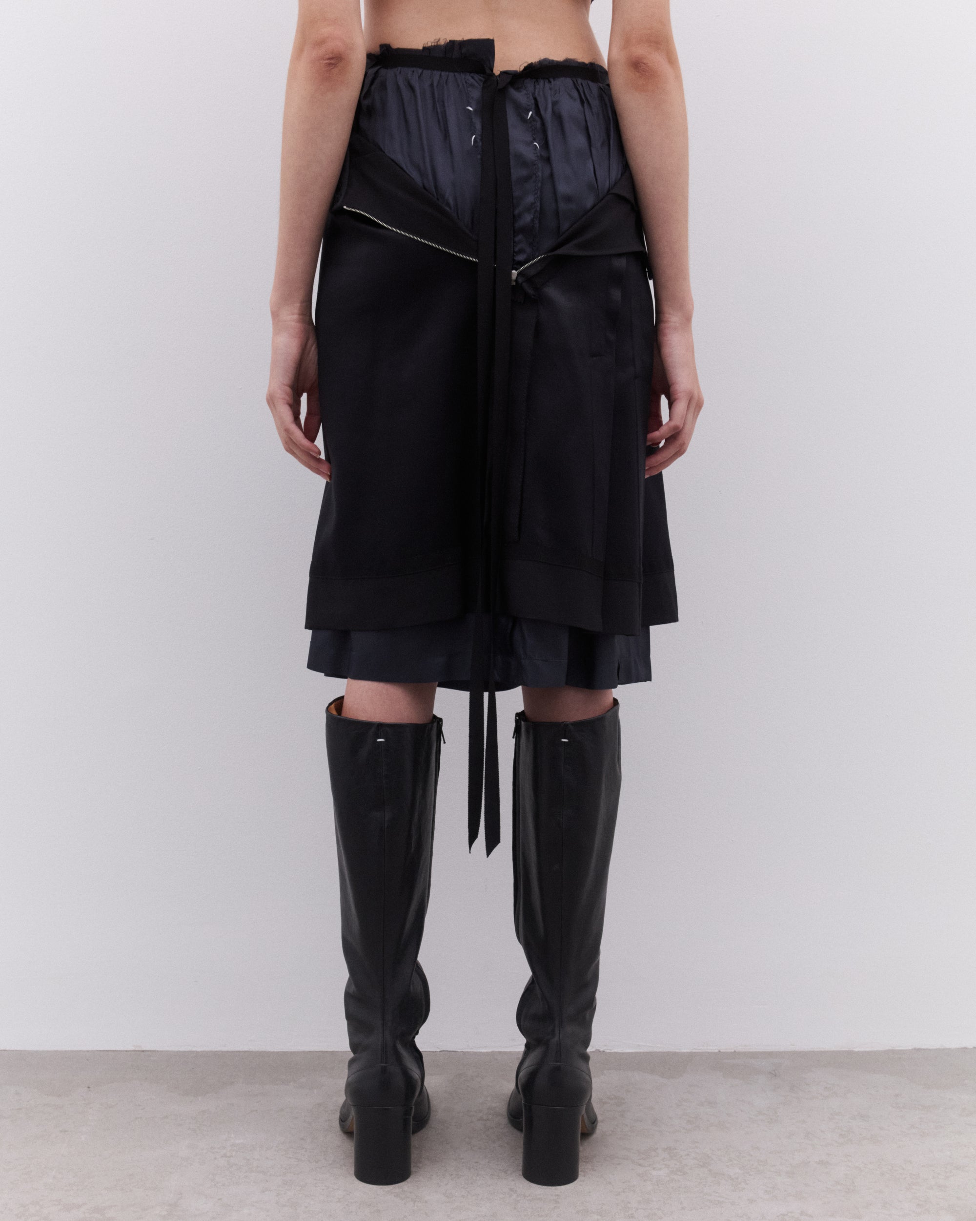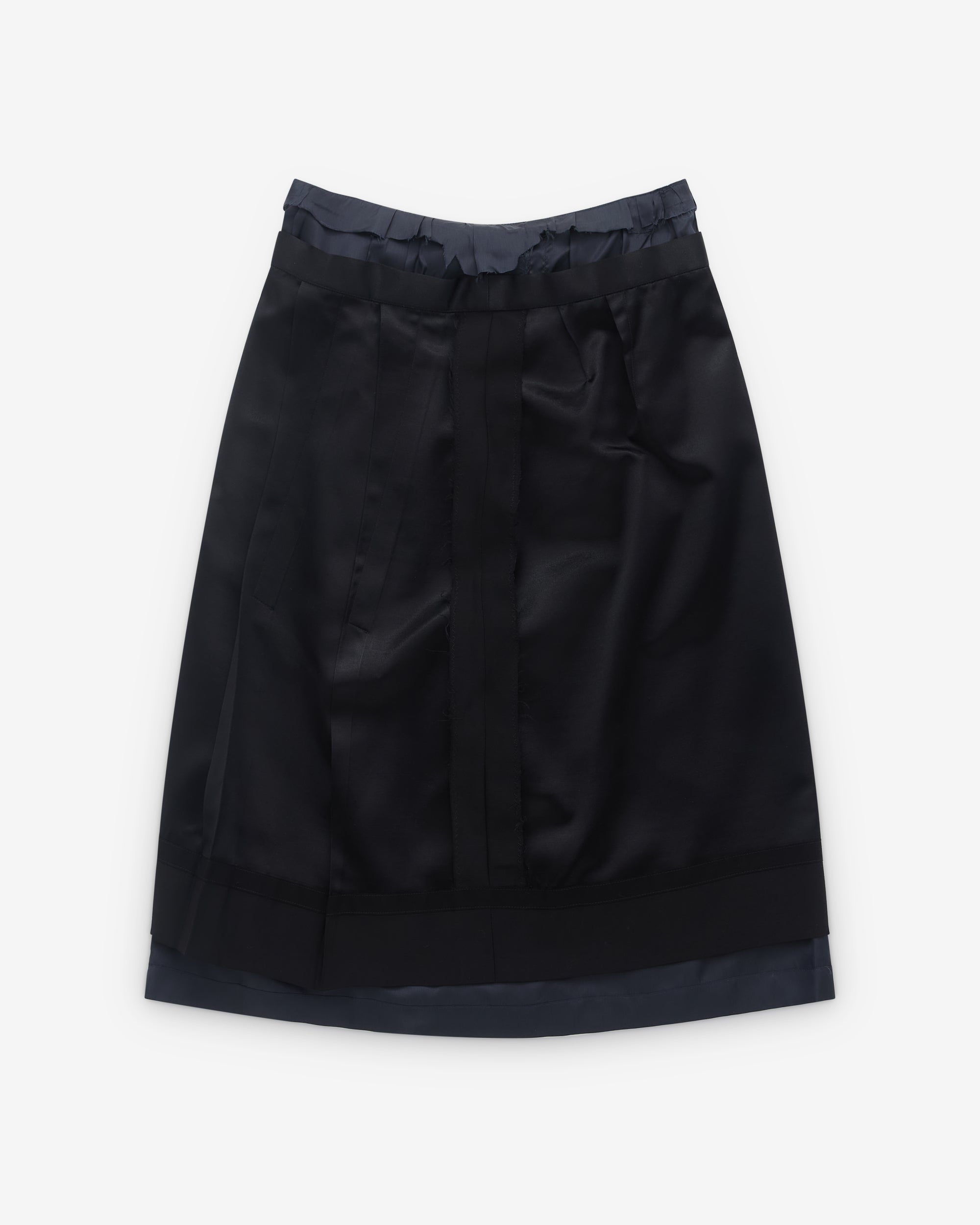 Viscose-RayonStraight skirt in a wool-silk blendRaw-edge waistband with gathered detailLayered hem with tonal contrast panelBelt loopsFour stitches at the back