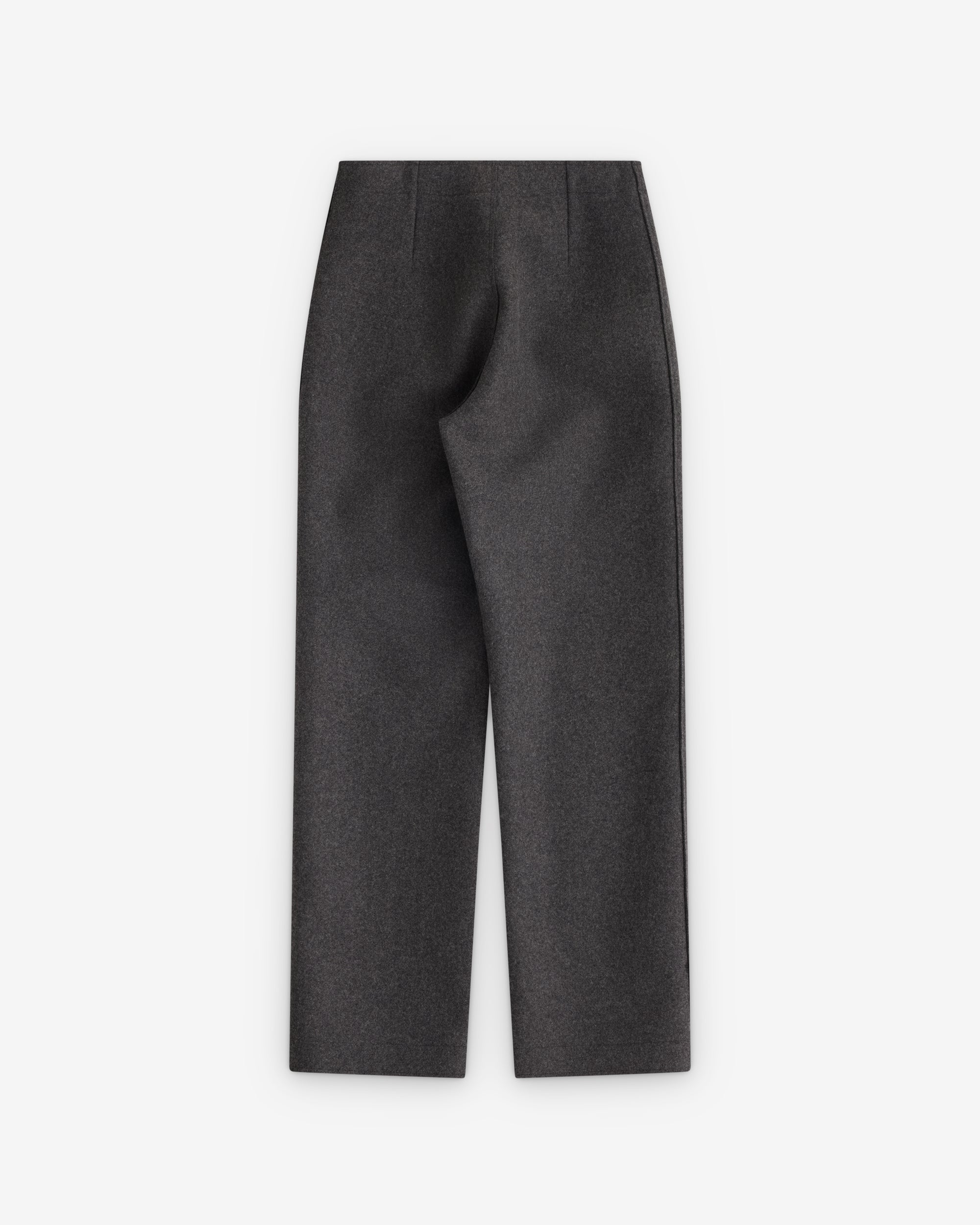 Flat frontedCentral seamSide zip fasteningStraight legHigh waisted