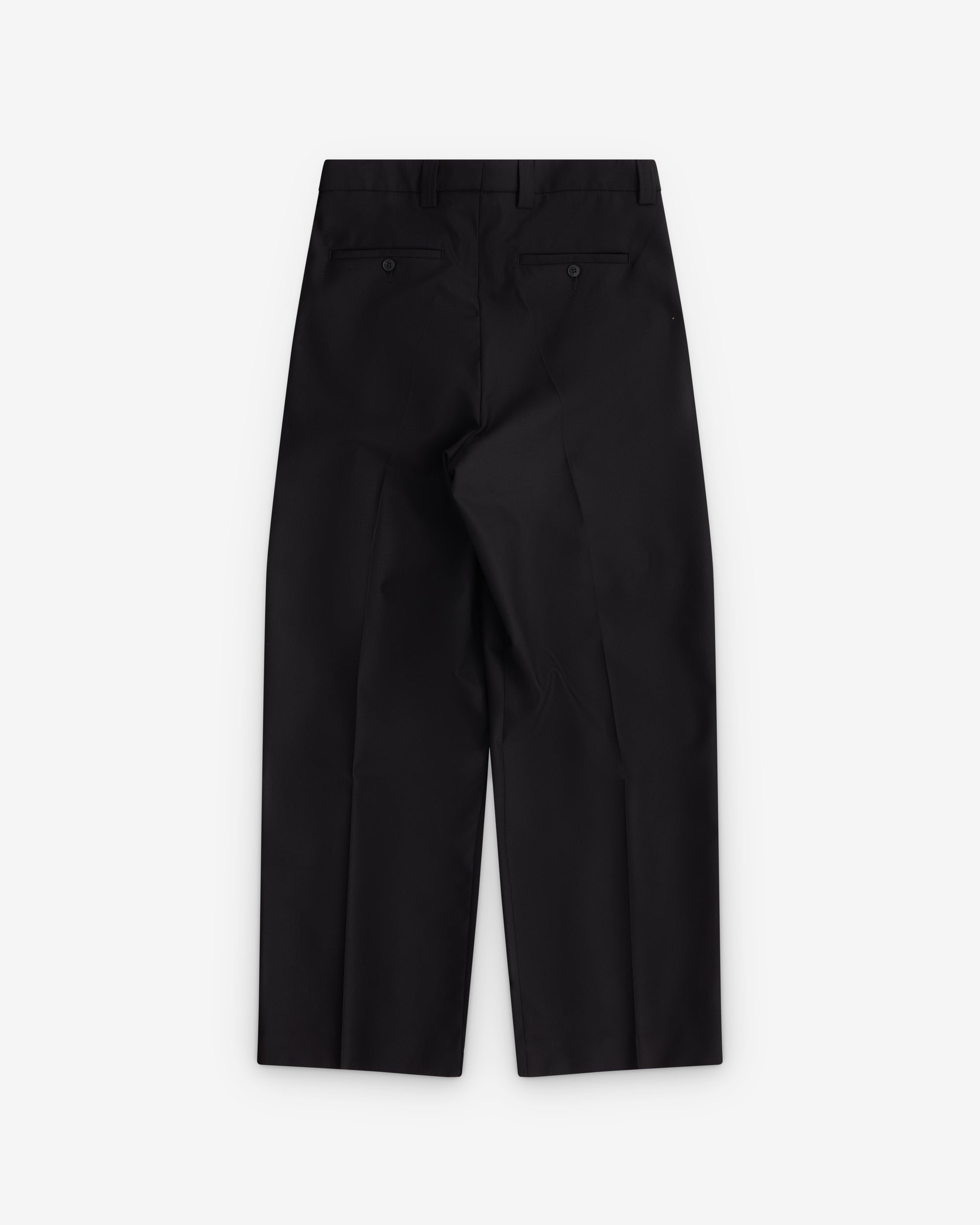 Wide straight fitDouble pleat frontSide seam slip pocketsButton and hook and eye waist Zip flyRear welt pockets