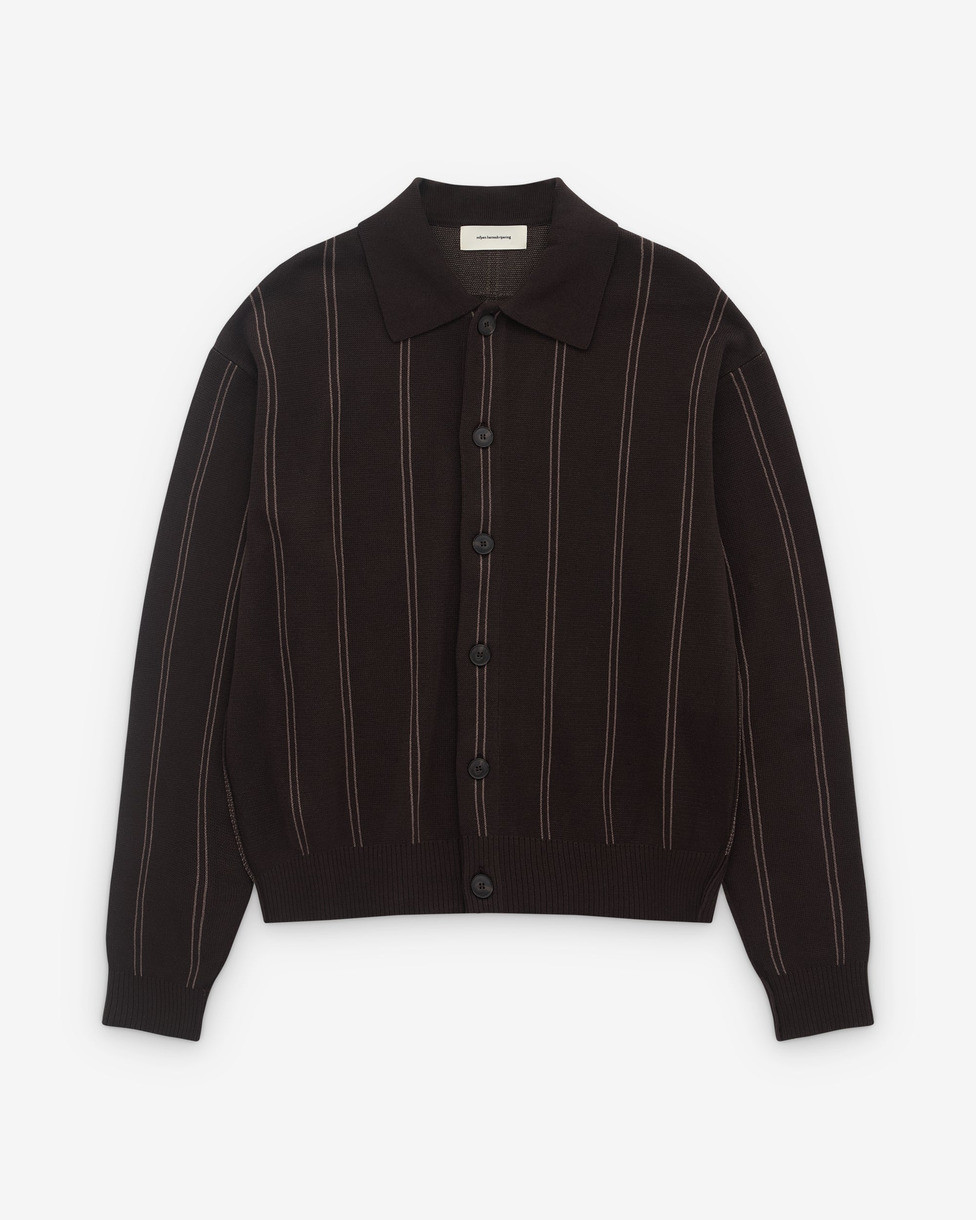 Polo collarButton up closureStriped cotton fabricLong sleevesRibbed cuffs and hem