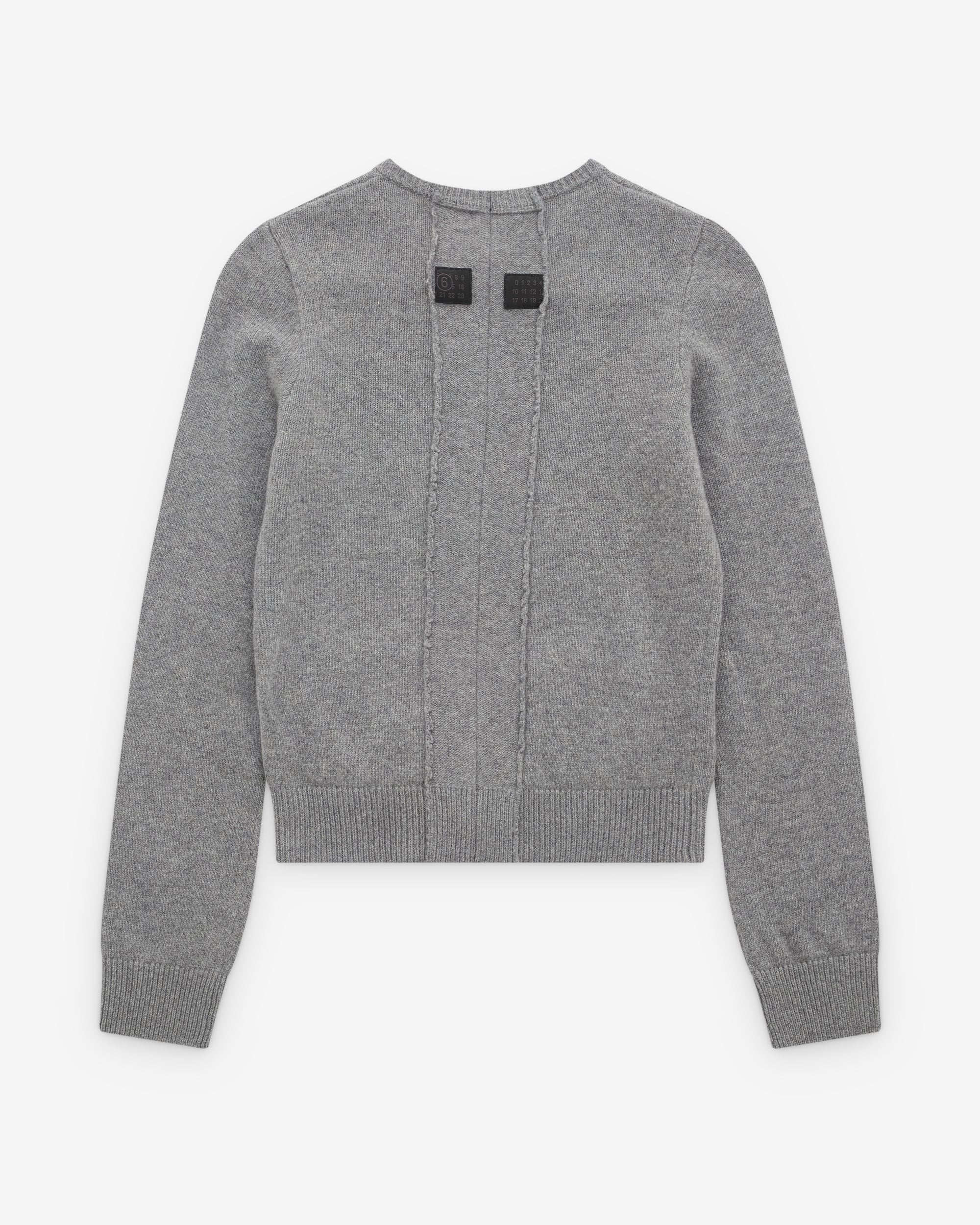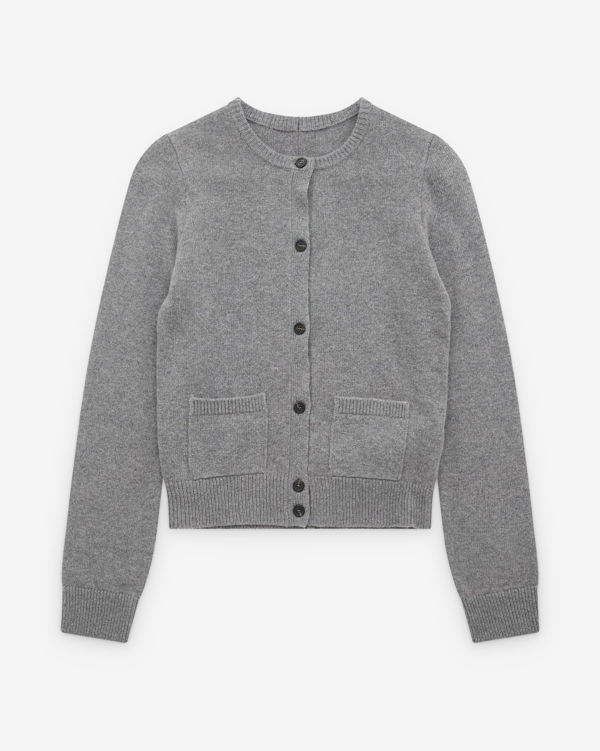 Ribbed rounded necklineFront button closureTwo front patch pocketsRibbed cuffs and hemExposed tab label at back