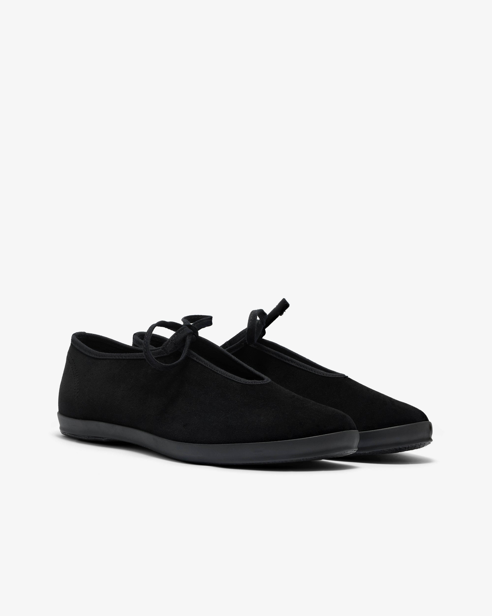 Classic ballet design One piece canvas upperRounded toeRibbon lace closureRubber outsole