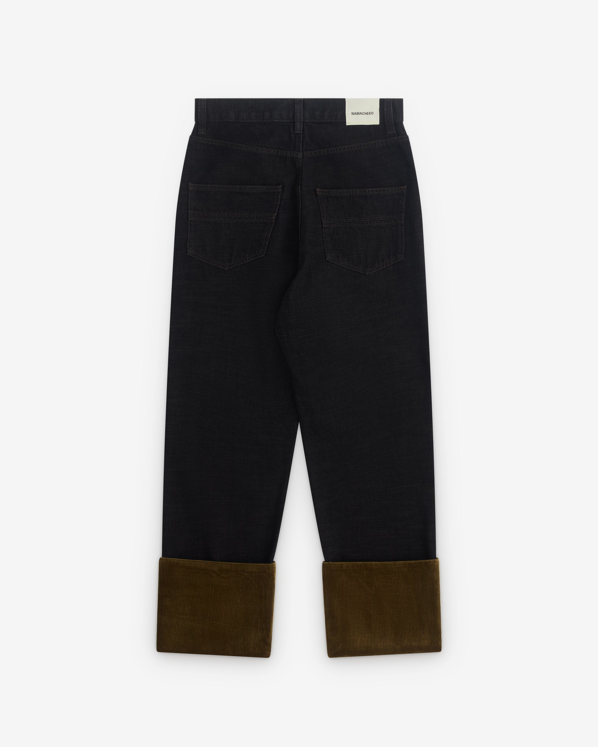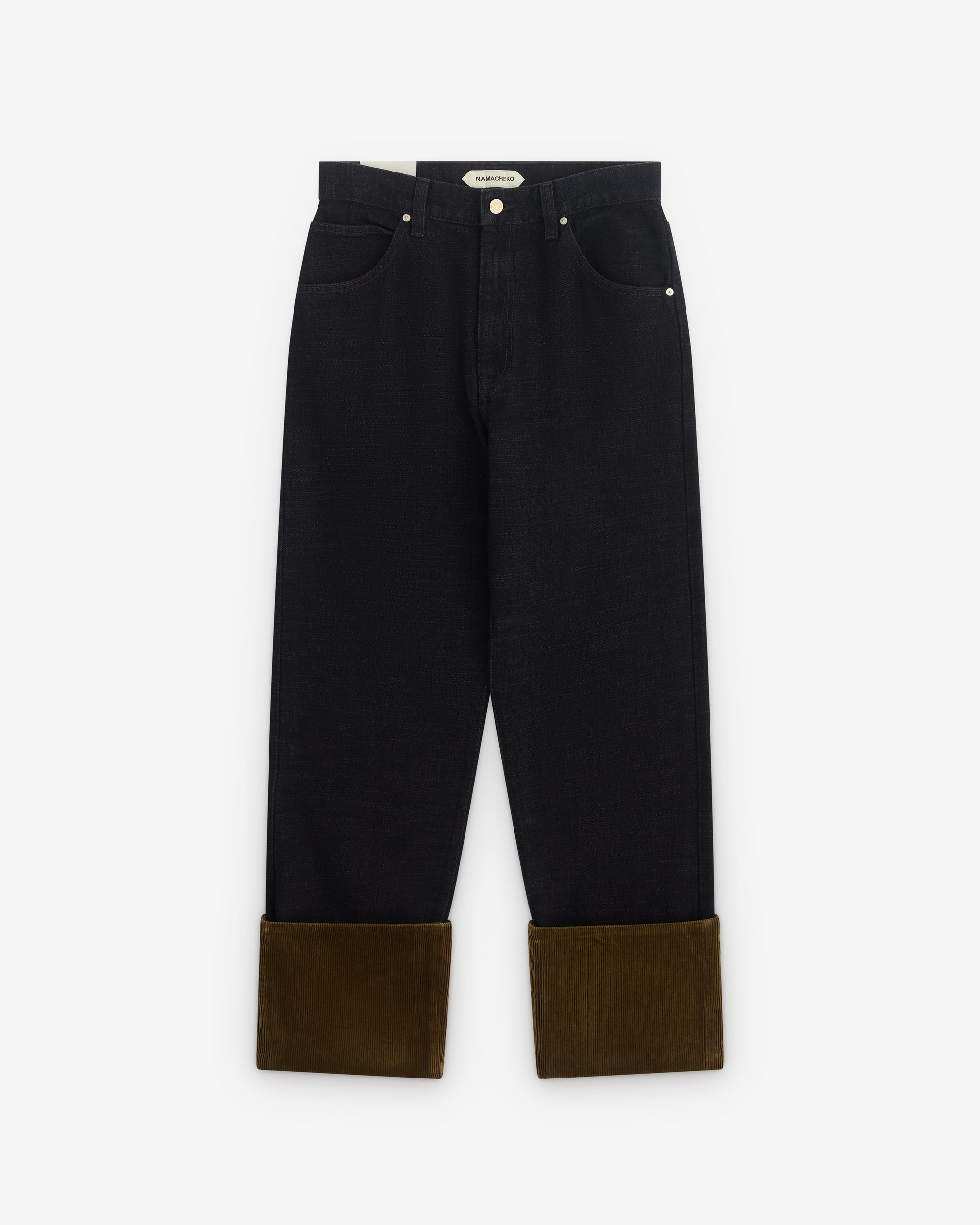 Regular fit, straight legButton waist closureCorduroy turn up cuffsGraphic patch at rear waist5 Pocket construction