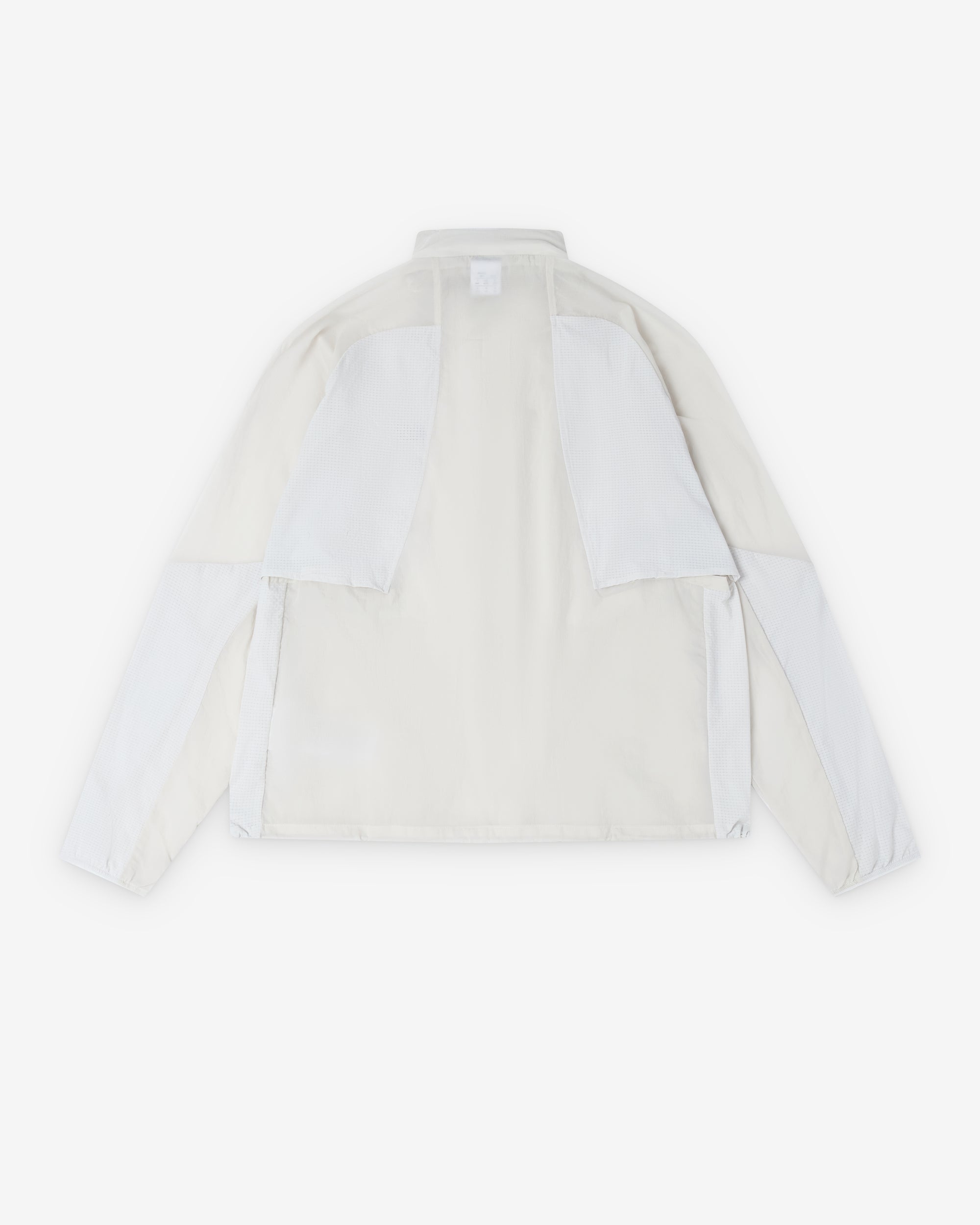 Exclusively produced for Dover Street MarketPackable hoodPull tab two way zip closureStand collarDual branded graphics Two zip close hand pocketsPull cords at waistDWR coated fabricPackable