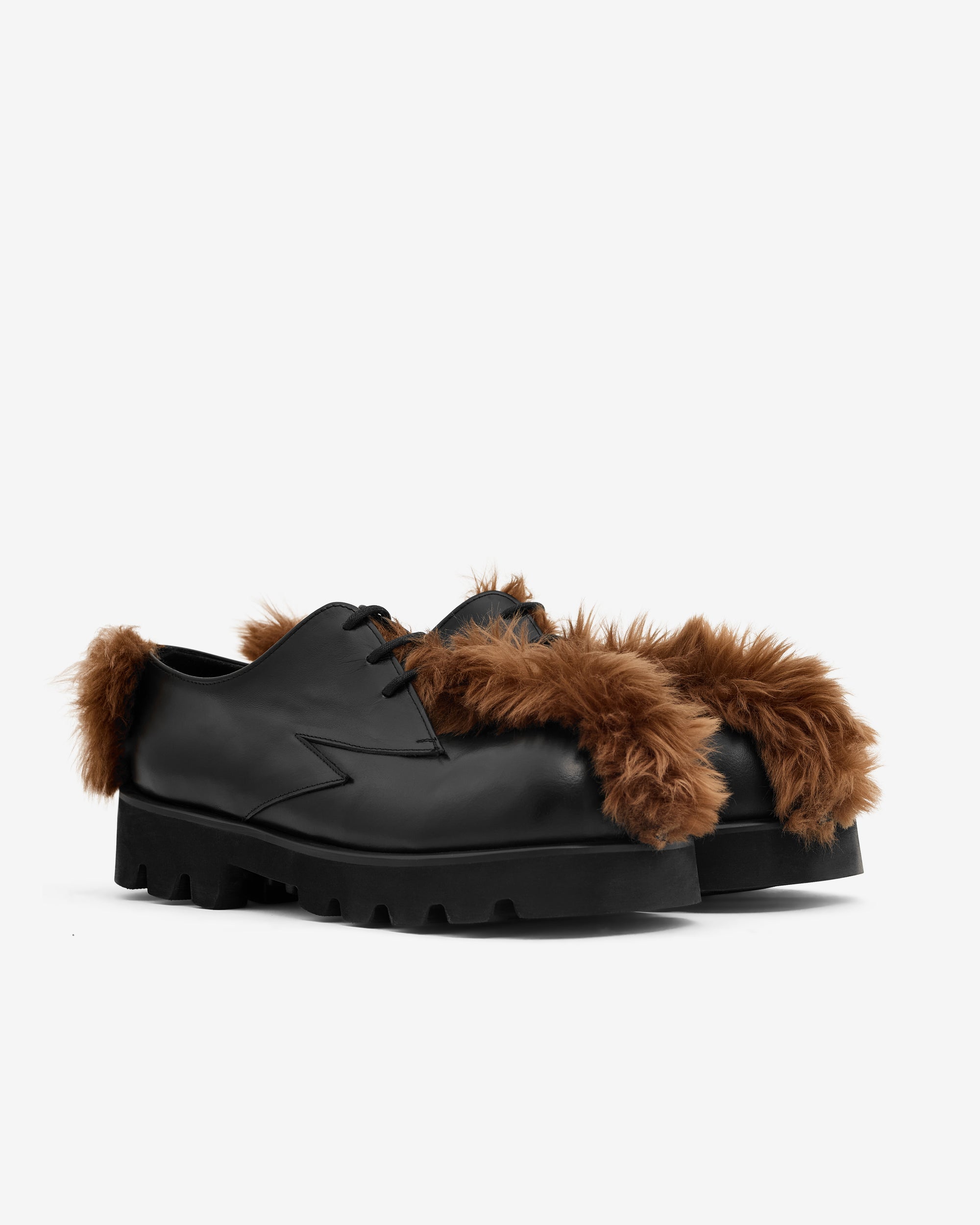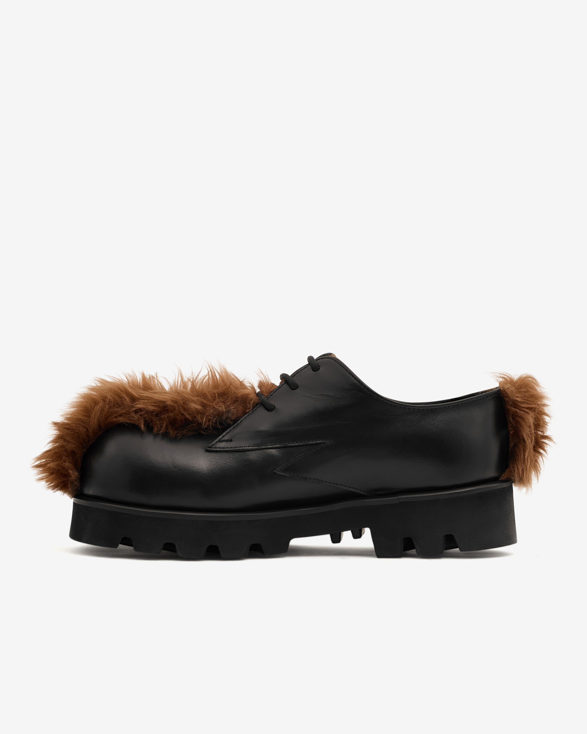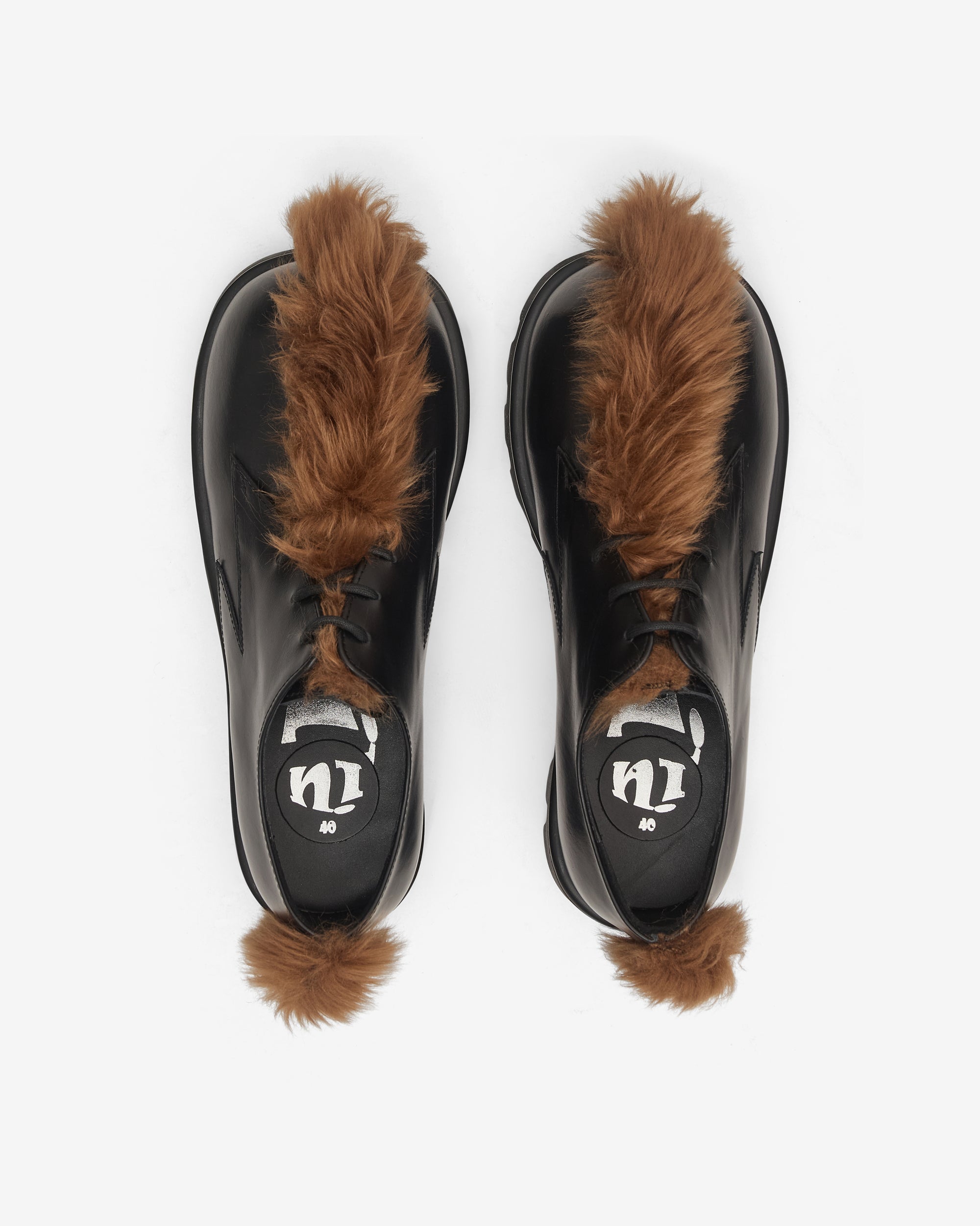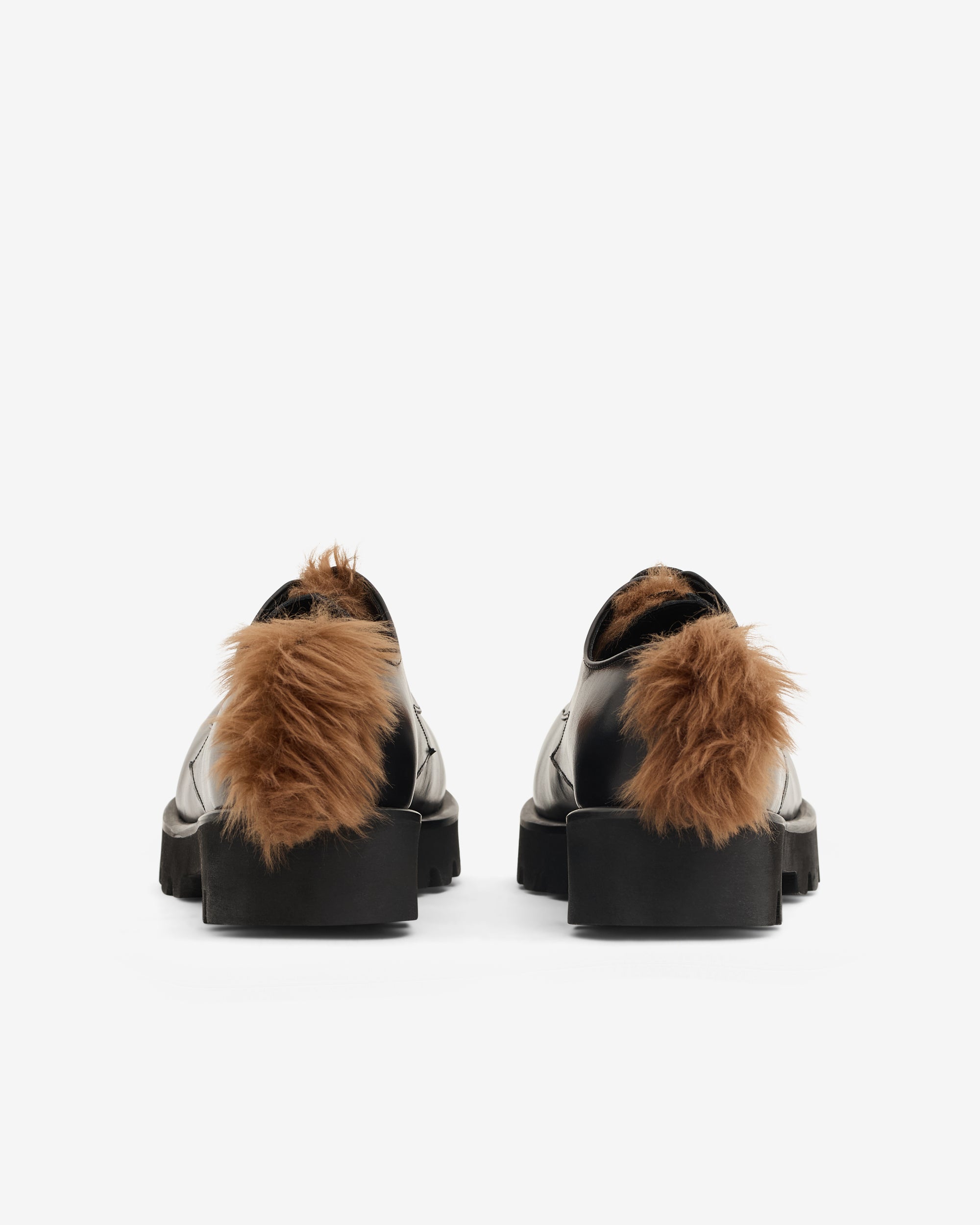 Rubber soleMink fur trimOrtholite insoleHeel height: 4cmRound toeLace up fastening