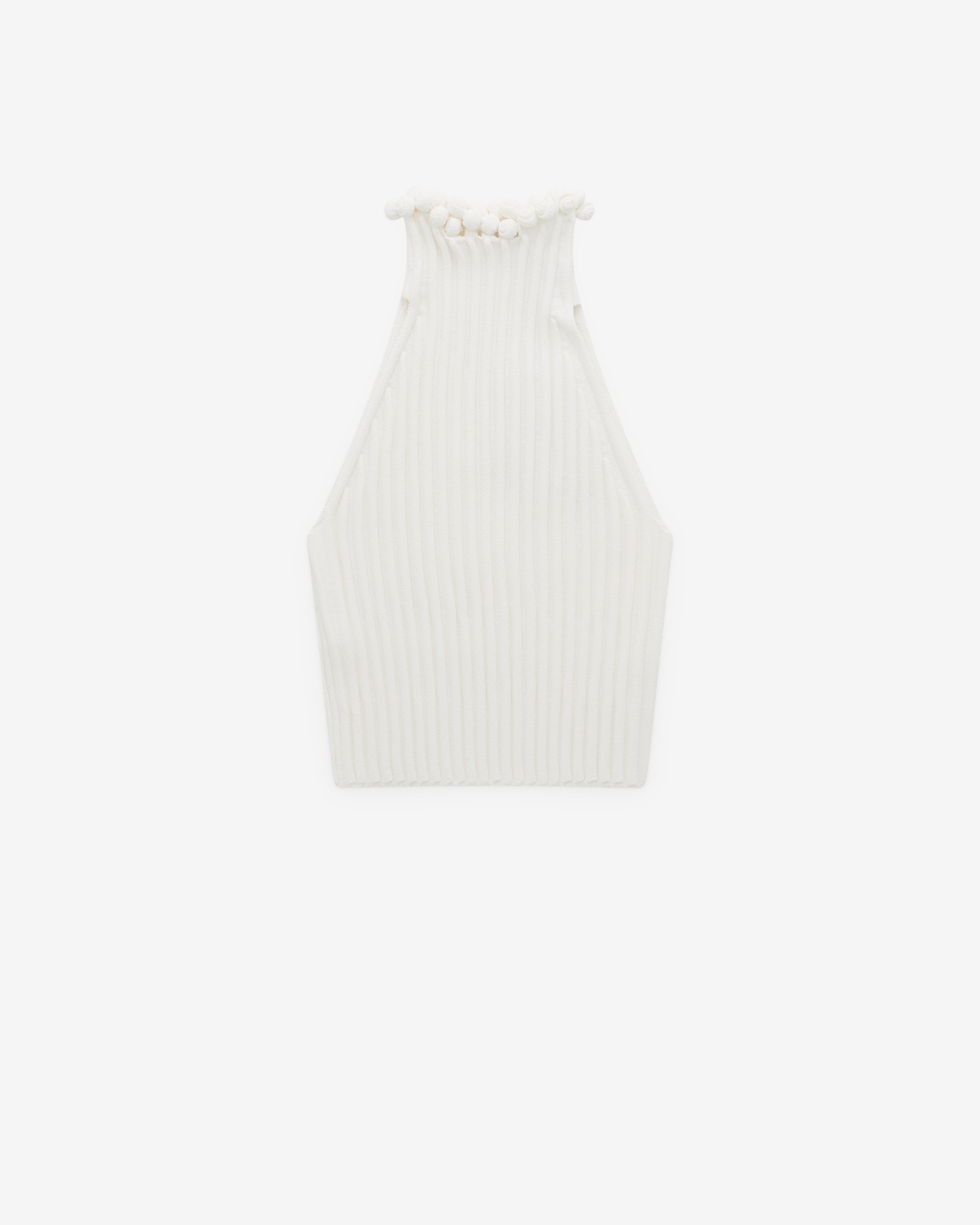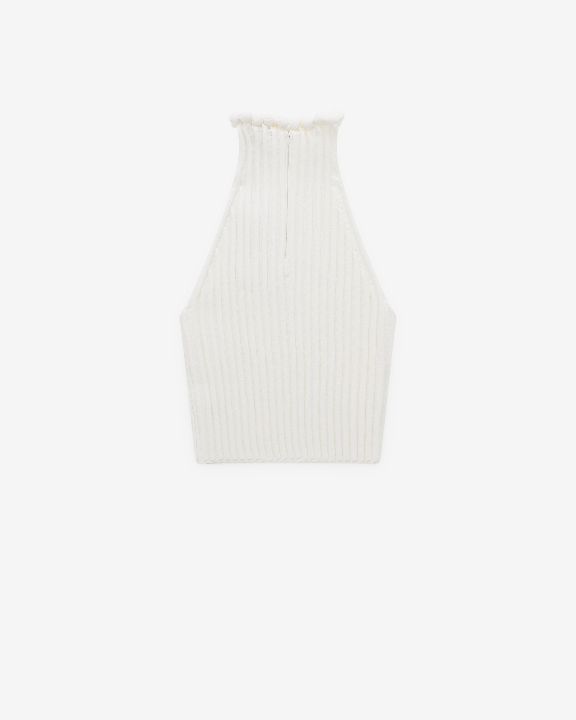 Halter top in sculpted ribbed stripe knitCrop lengthCurled trimming detail at the neckline