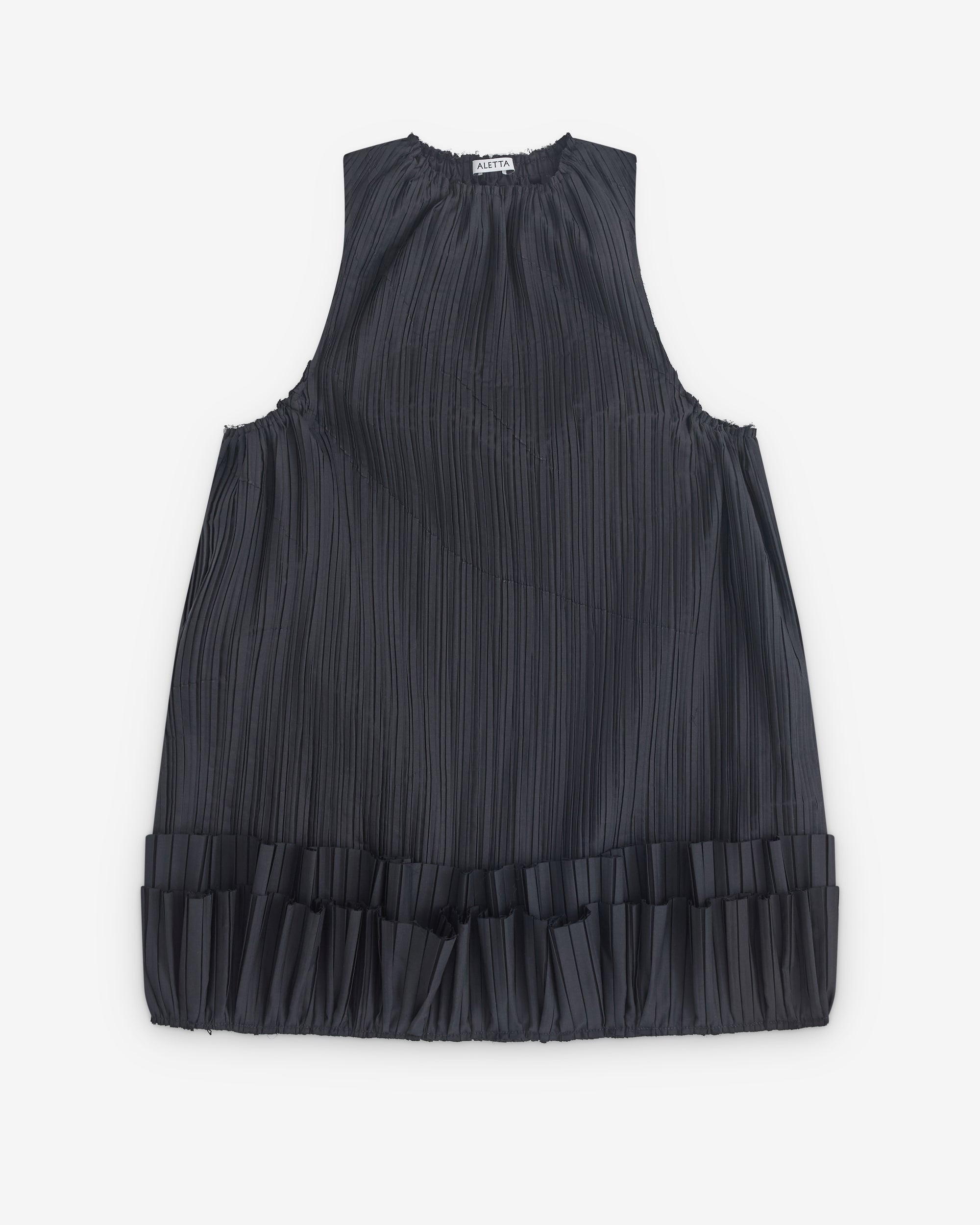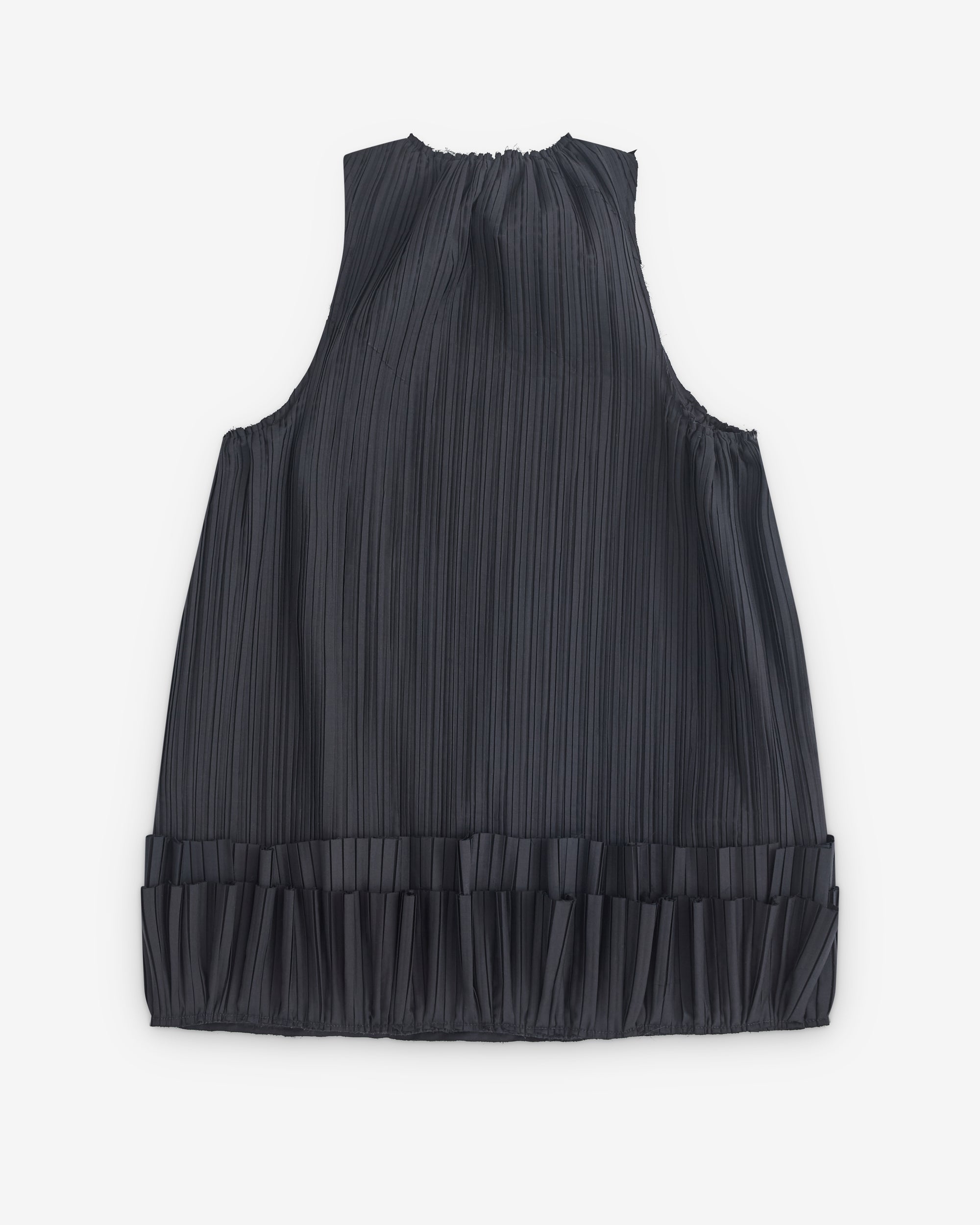 Rounded necklinePleated fabricSleevelessMidi lengthUp turned hem