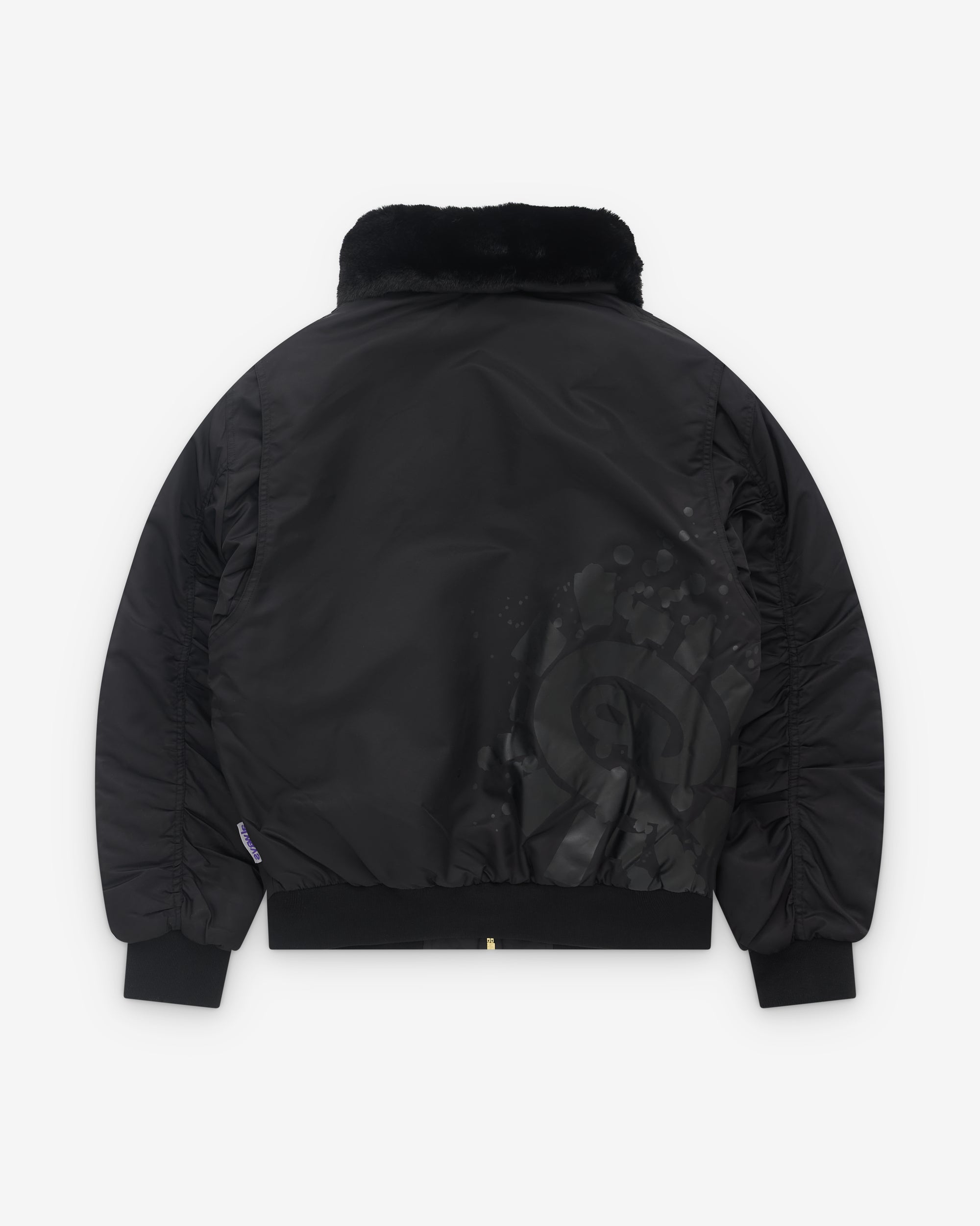 Faux fur trim pint collarFlap front pocketsRib knit trimsLogo at chestZip fasteningWadded100% NylonMade in China