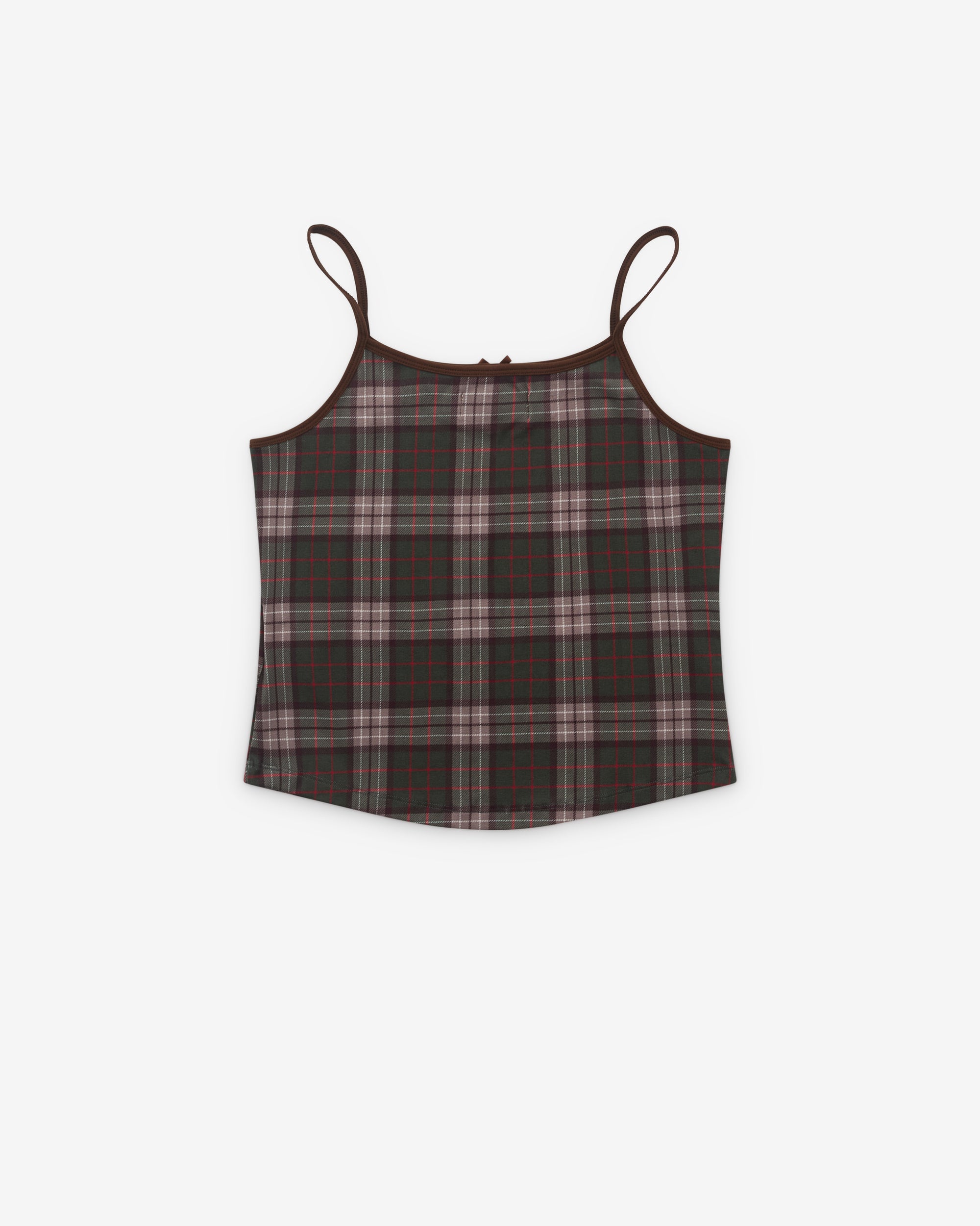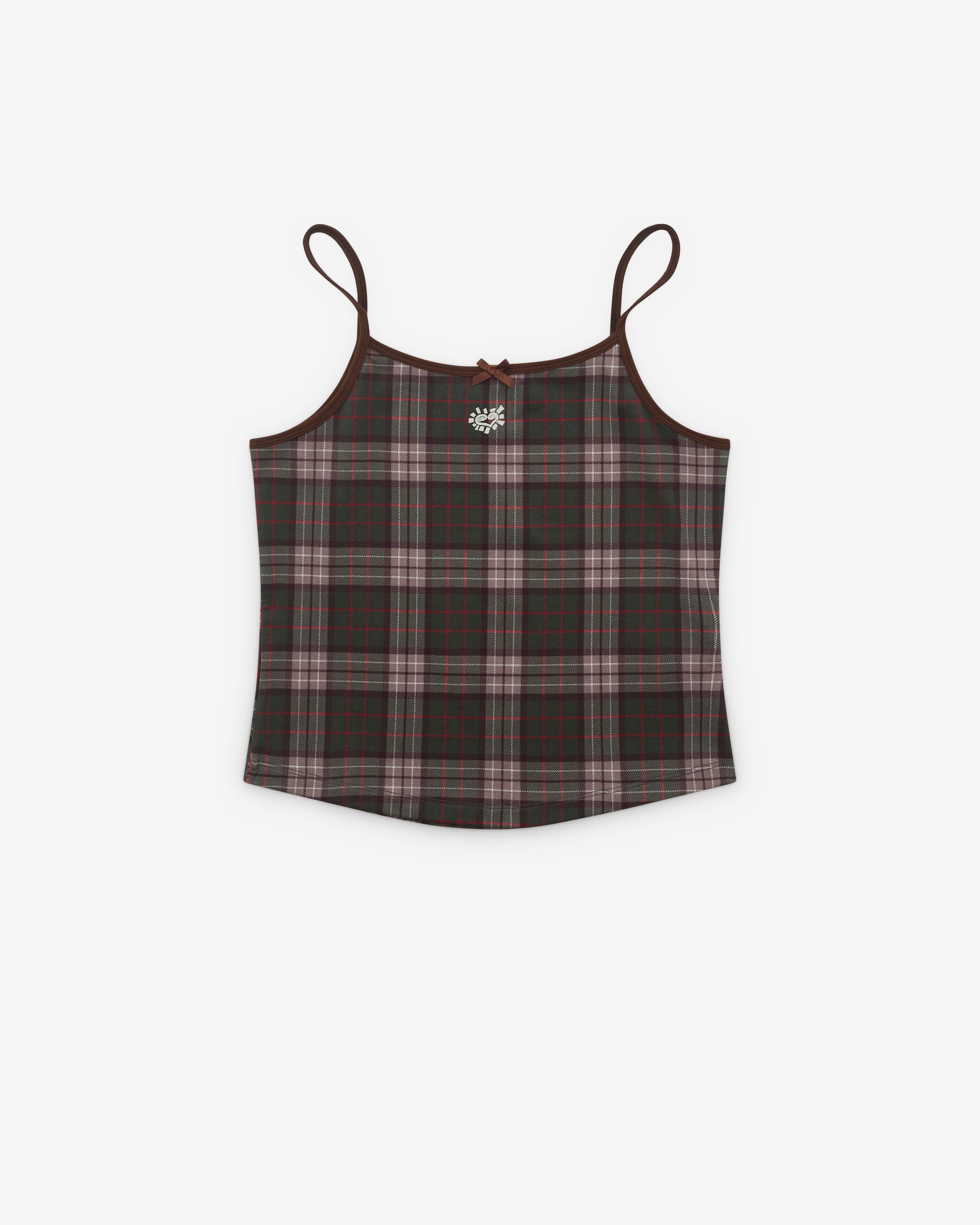 Spaghetti shoulder strapsPlaid fabric Printed logo at chestBow detail at trim