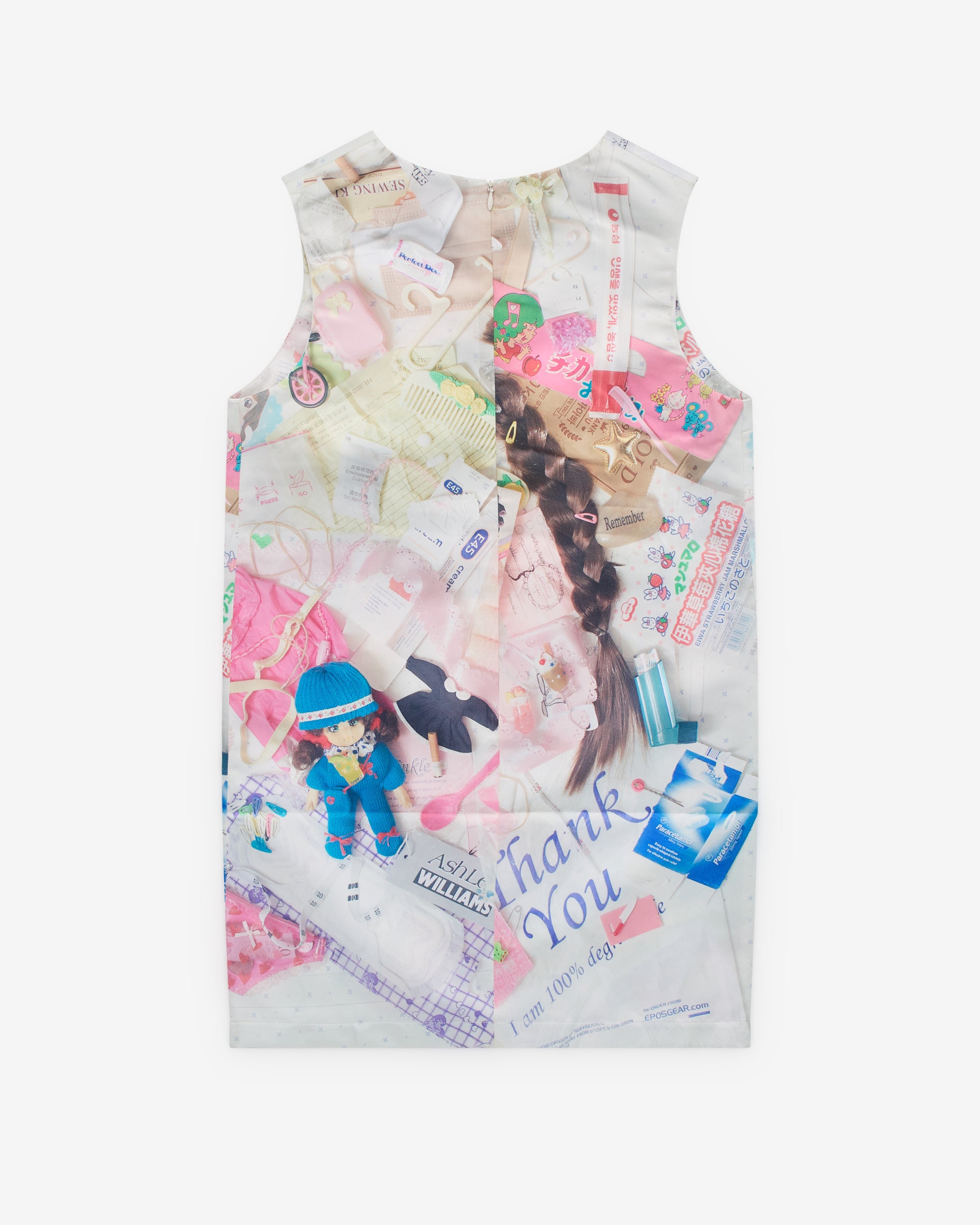 Rounded necklineSleeveless Printed fabricMini dress lengthRear zip closure