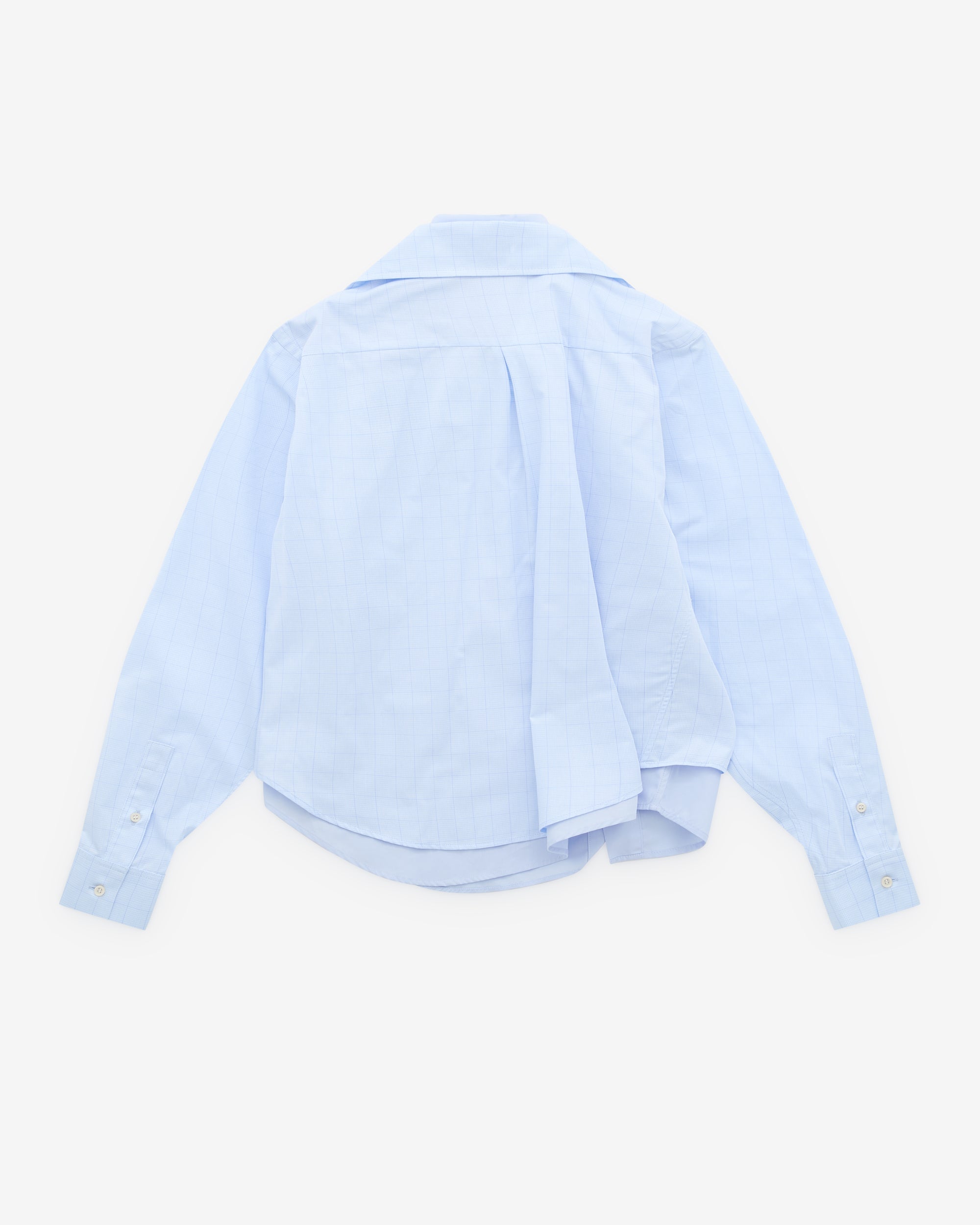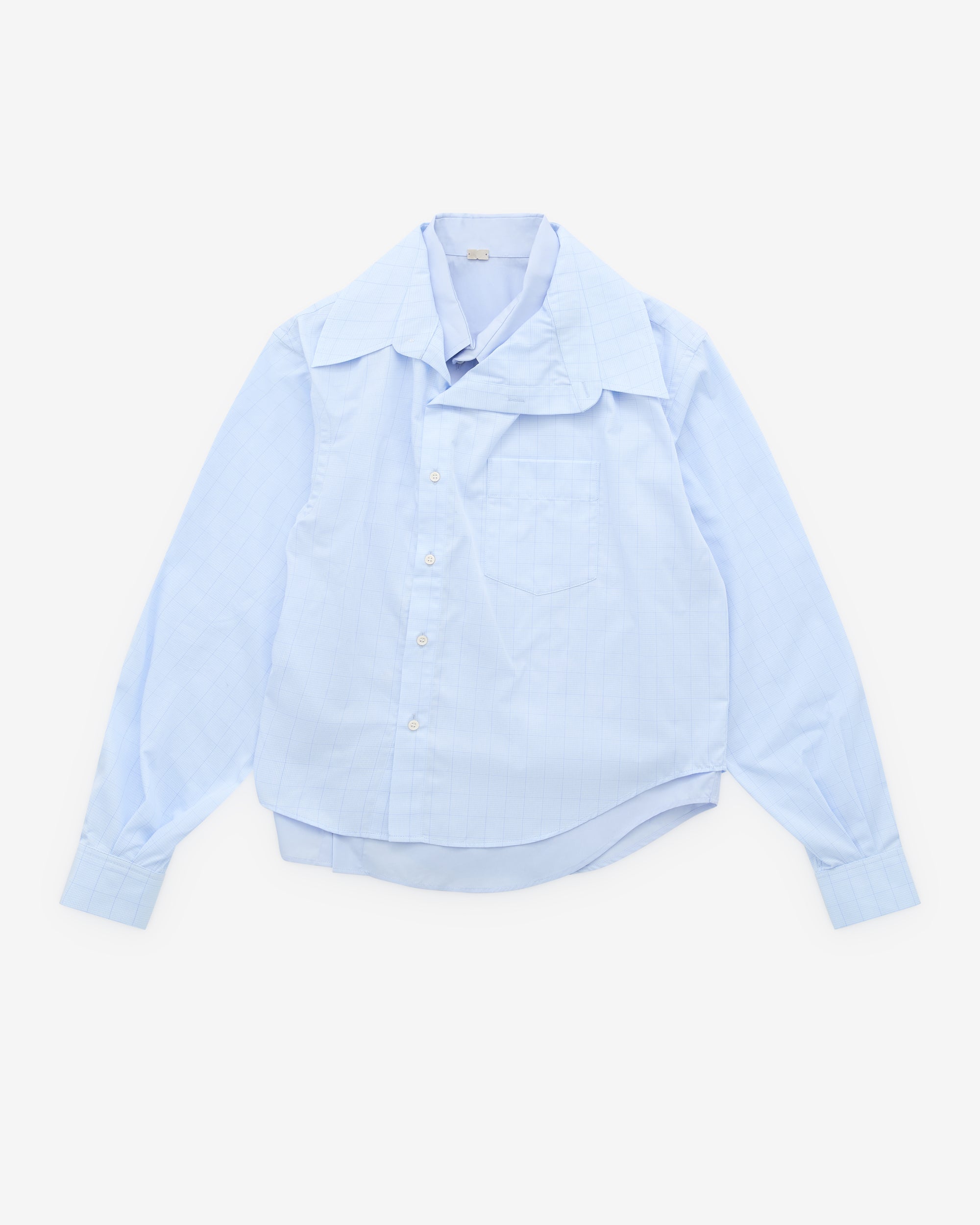 Layered constructionPoint collarsLong sleevesButton fasteningCurved hem