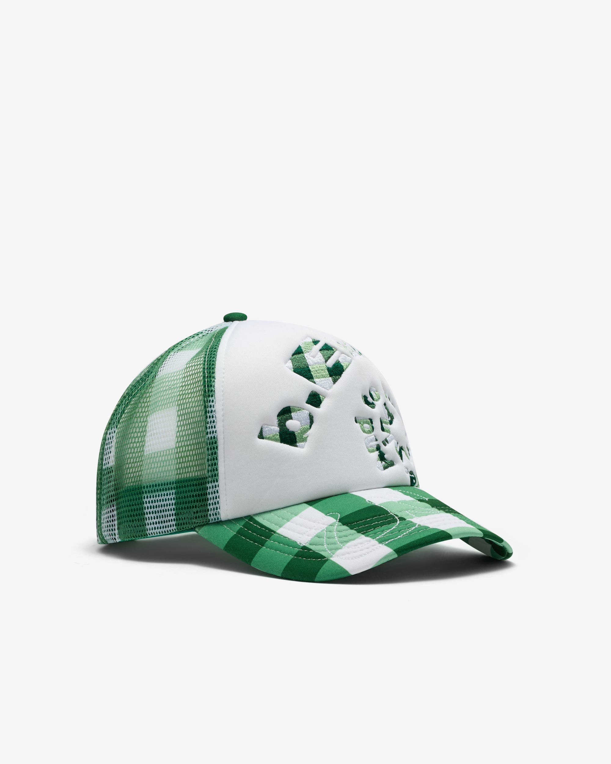 Trucker hat constructionMesh back panelAdjustable snap at rearEmbroidered details