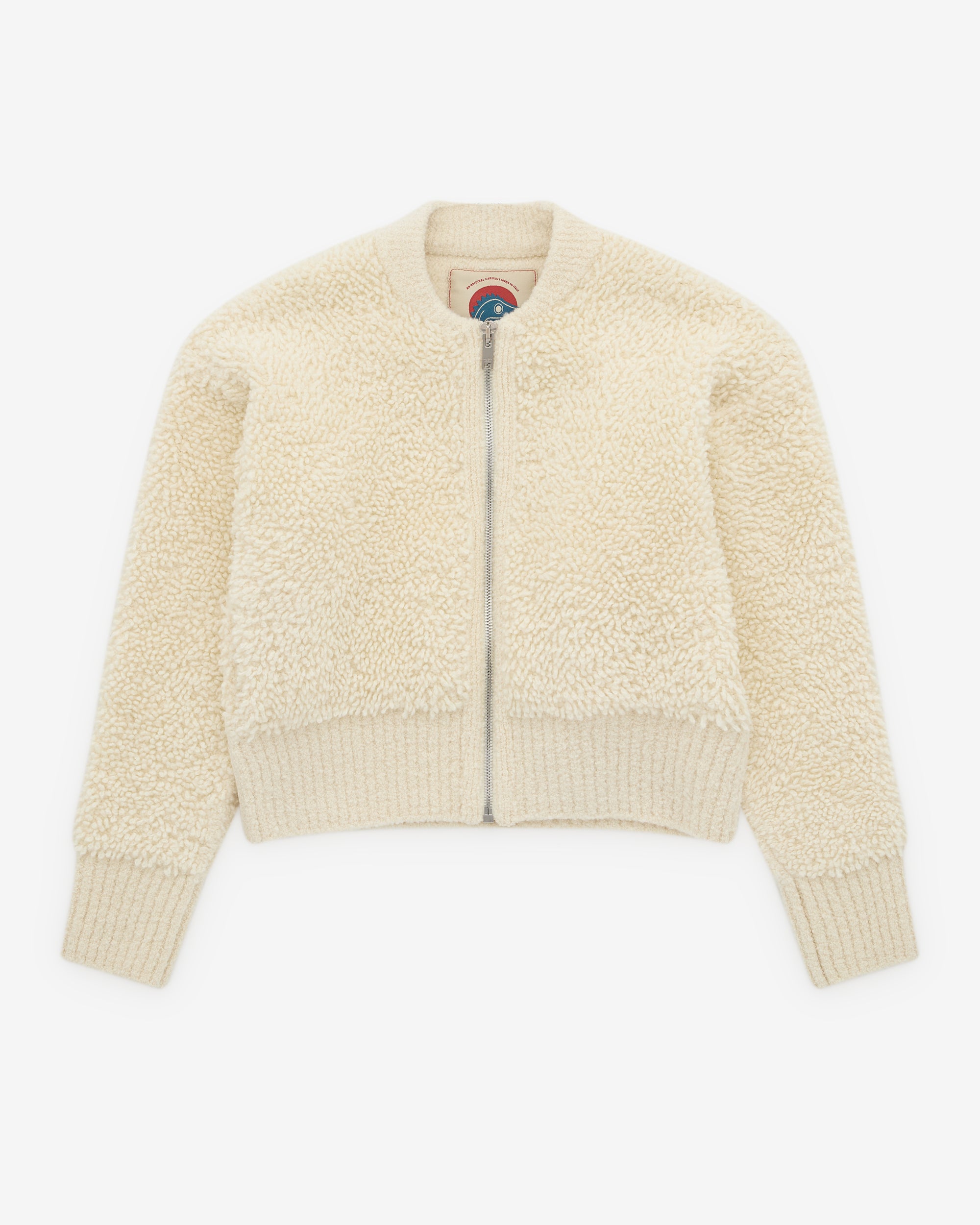 Textured loop wool rib cardiganInterior special labelZip closureRegular fit
