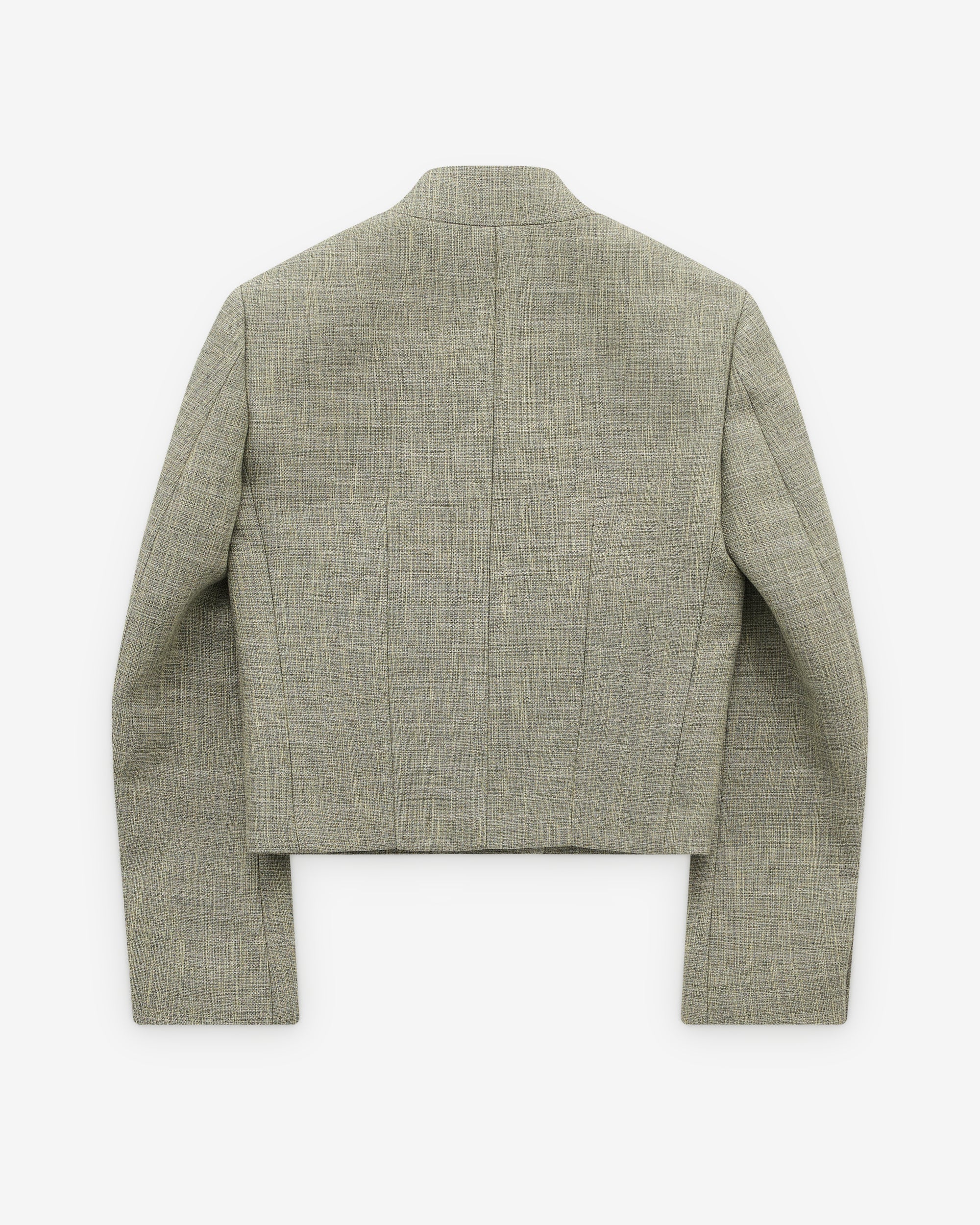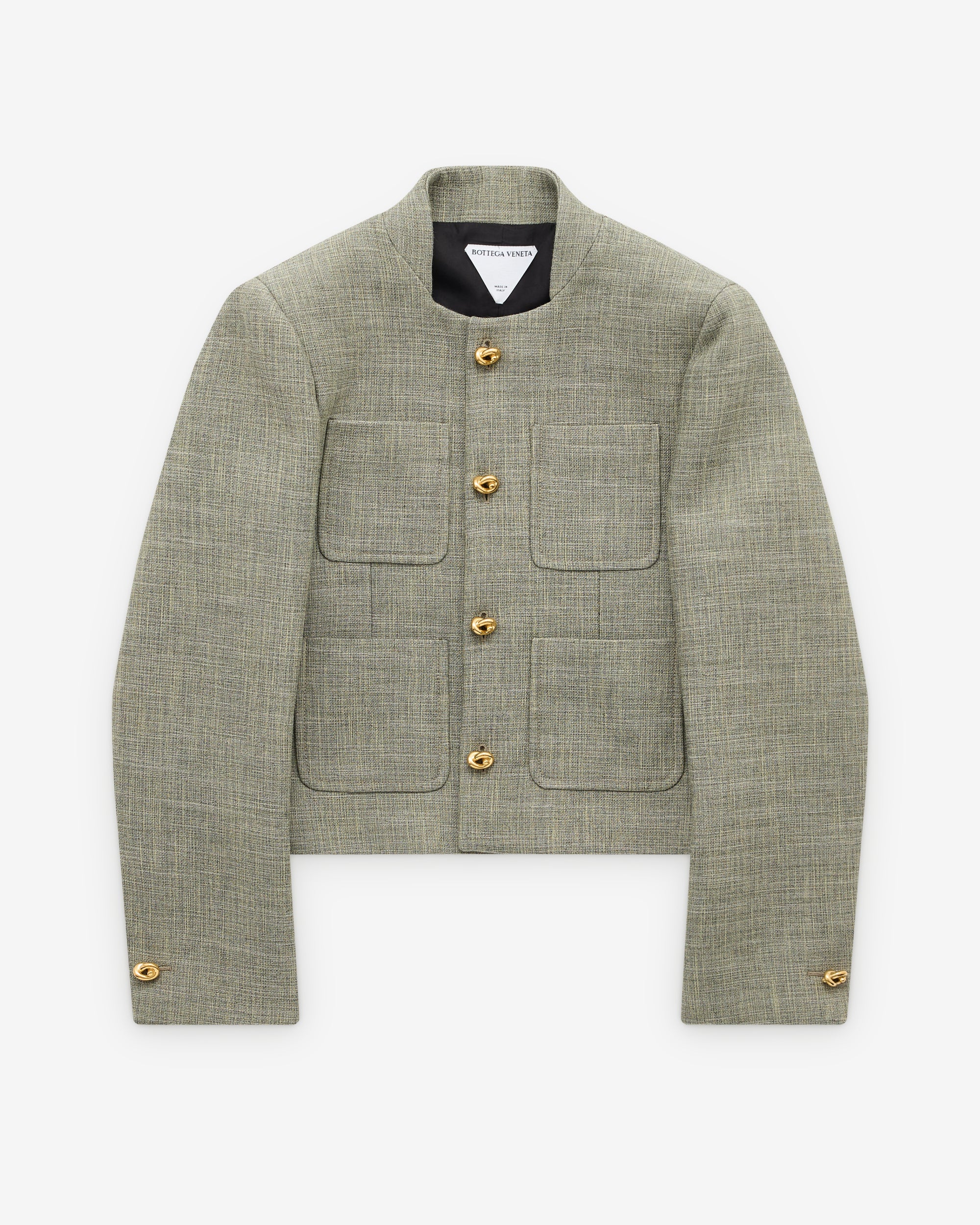 Jacket in cotton and viscose double melange with metal knot button detailing.