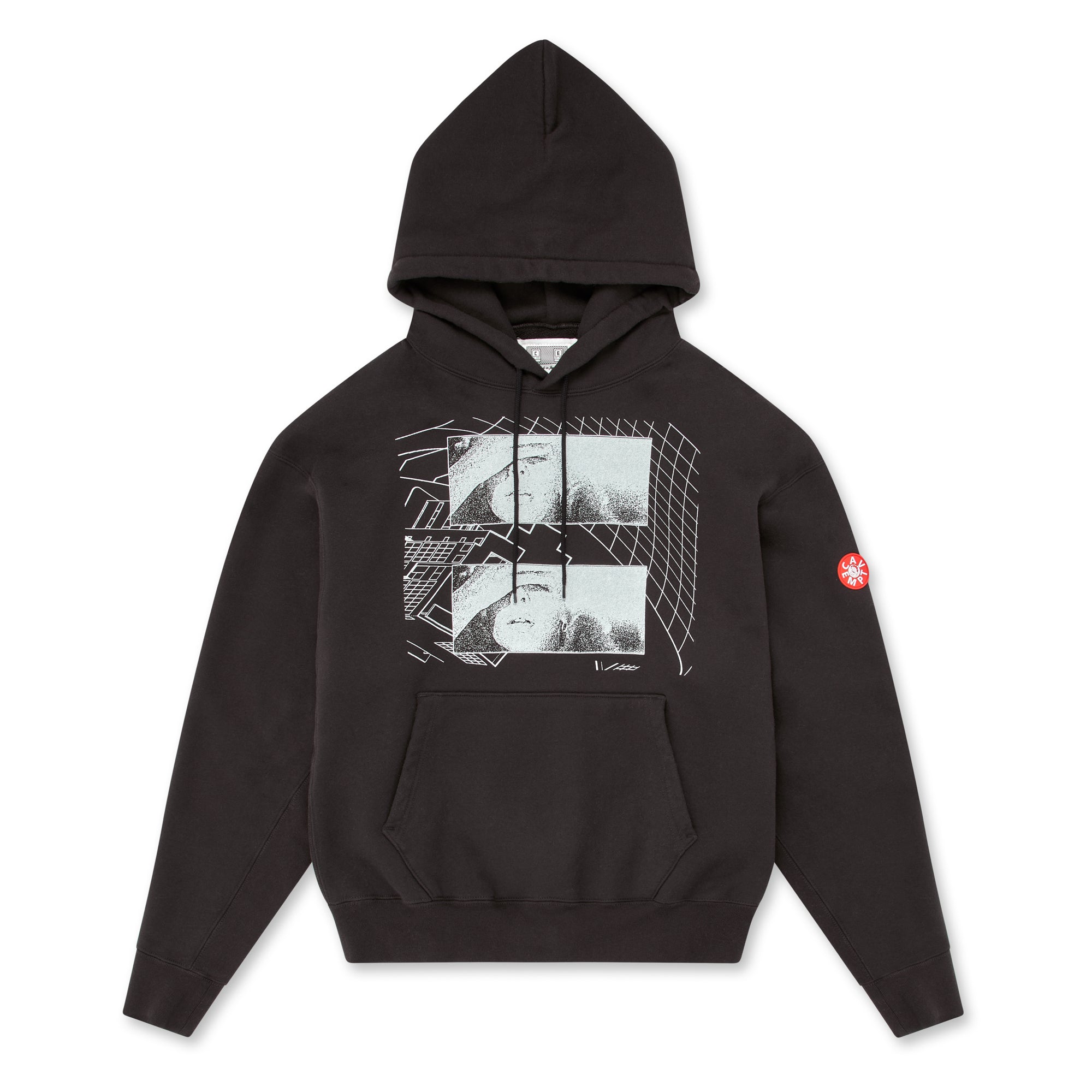 Cav Empt Dizziness Heavy cotton hooded sweatshirt, with adjustable drawstring hood and kangaroo pocket.