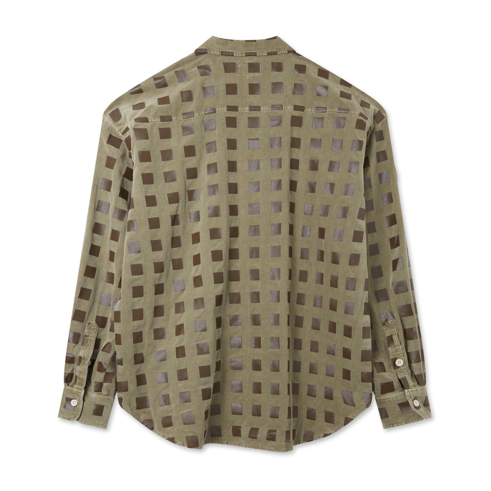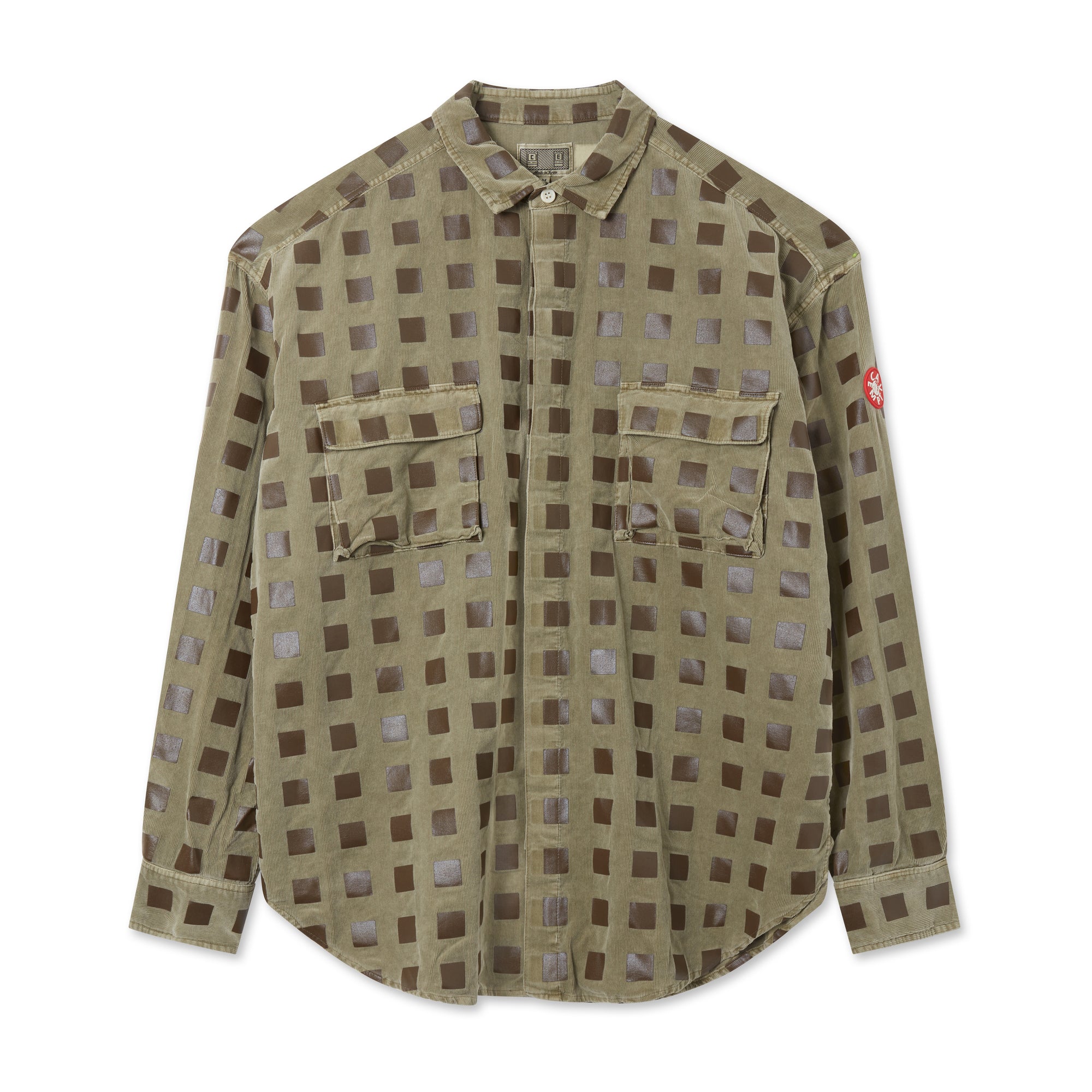 Two chest pocketsButton closureLong sleevesAll over square dots