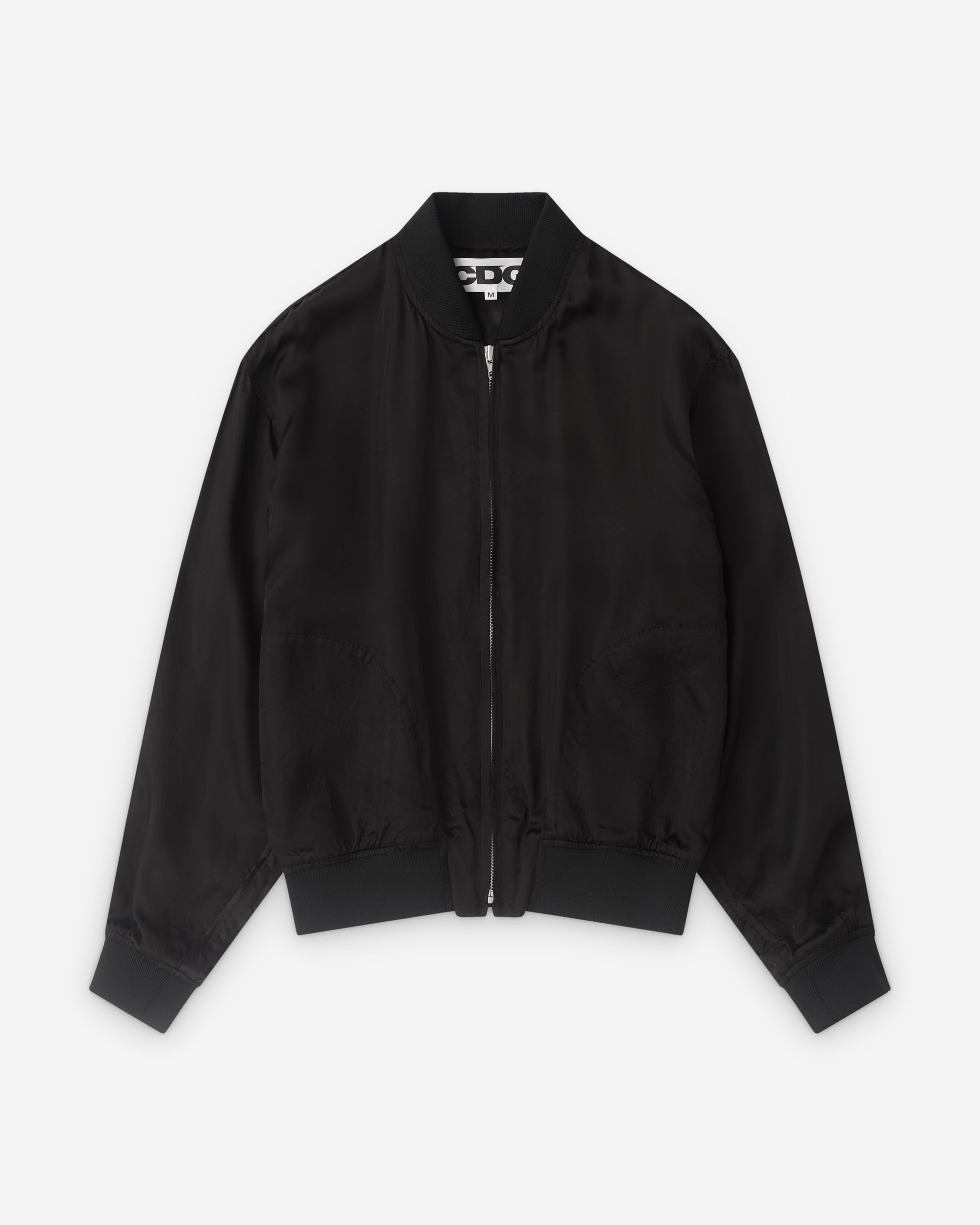 RIb knit trimsZip fasteningDropped shouldersWarped printed logoGarment treated