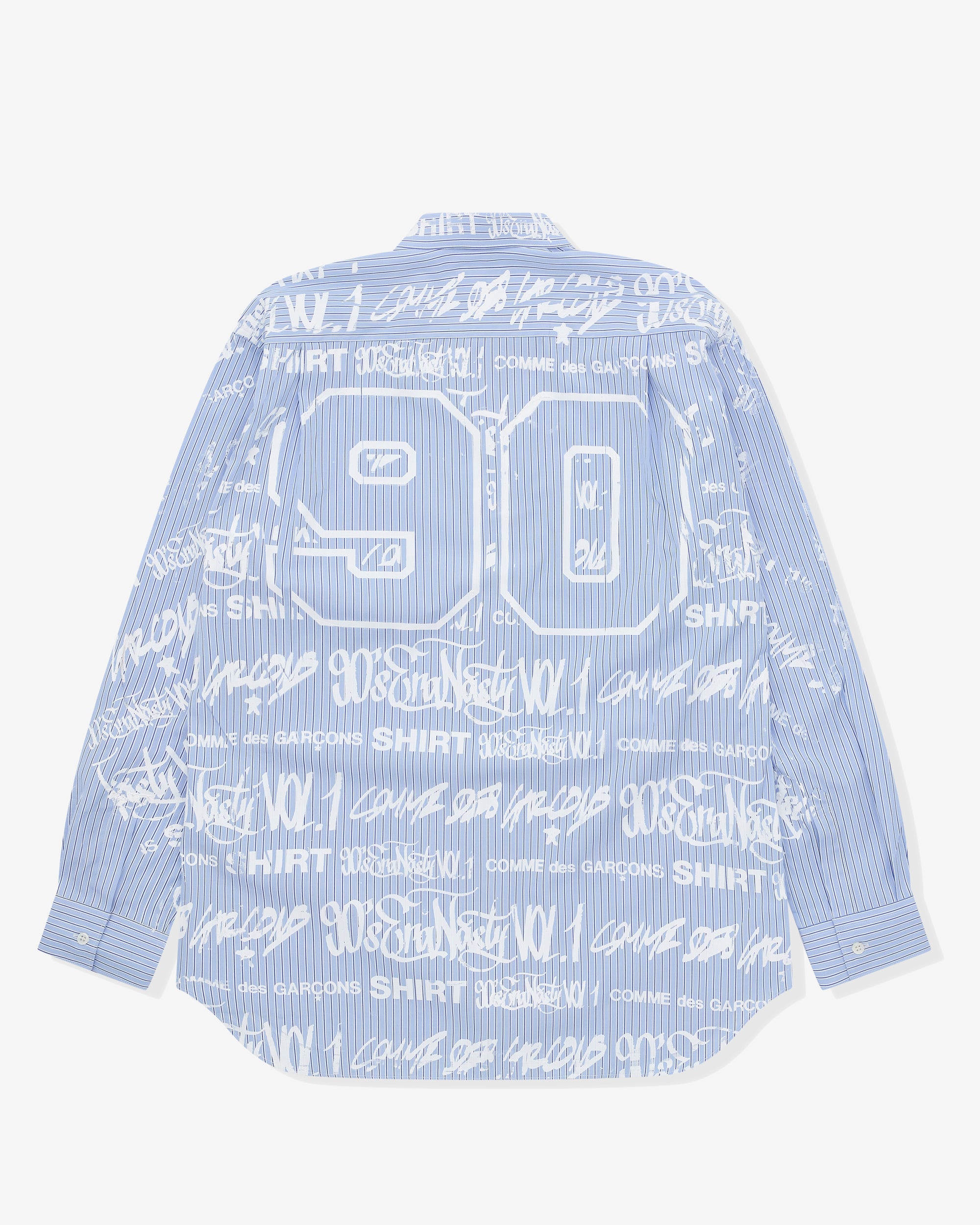 CDG Shirt Men’s A$AP Nast All Over Printed Shirt Pinstripe/White Print