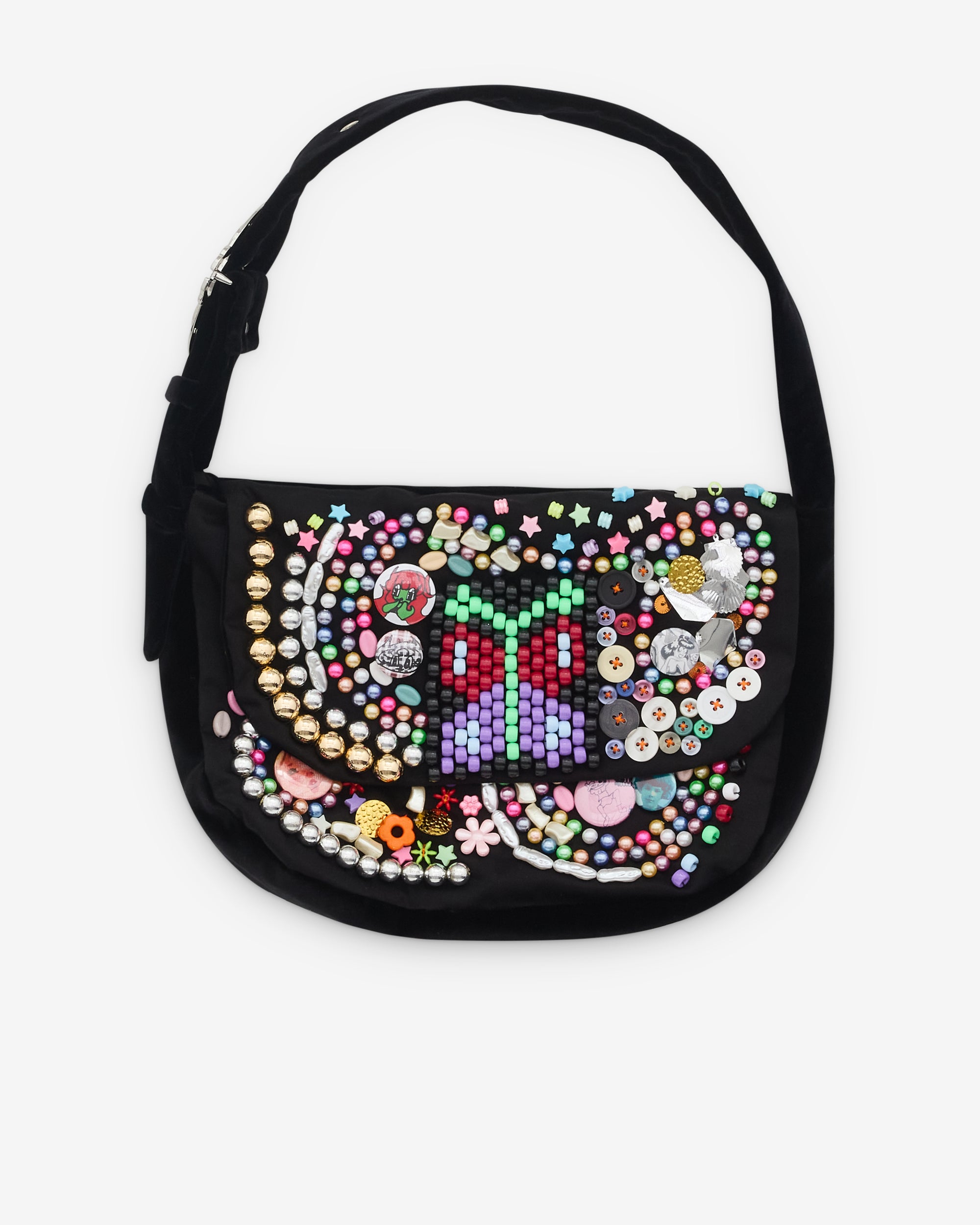 Adjustable shoulder strapFlap closureBeaded at frontCottonMade in Bulgaria