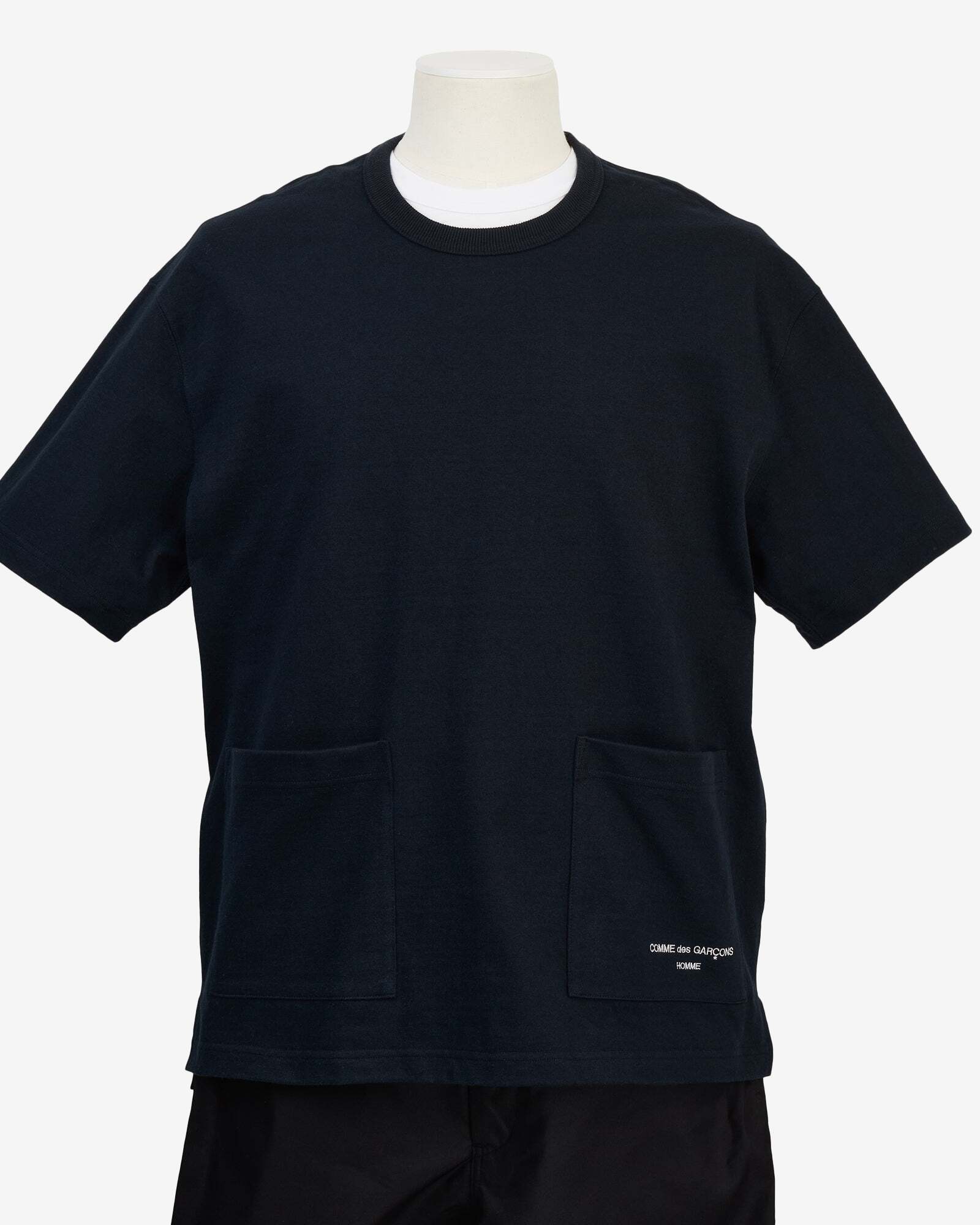 Comme des Garçons Homme cotton short sleeve crewneck t-shirt with two patch pockets on the front lower body, including a branded logo on one of these. Short sleeveCrewneckTwo patch pocketsBranded logo100% CottonMade in Japan