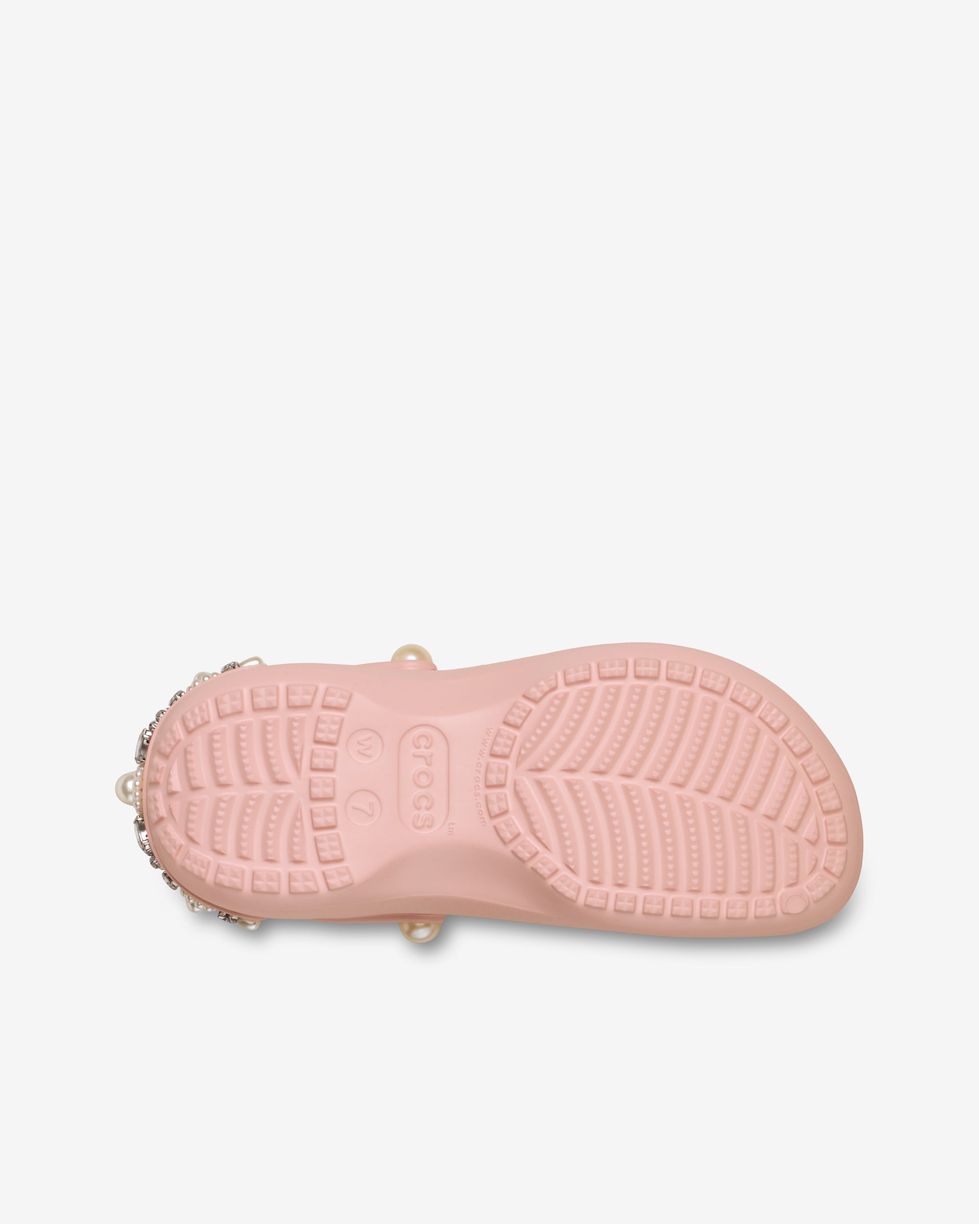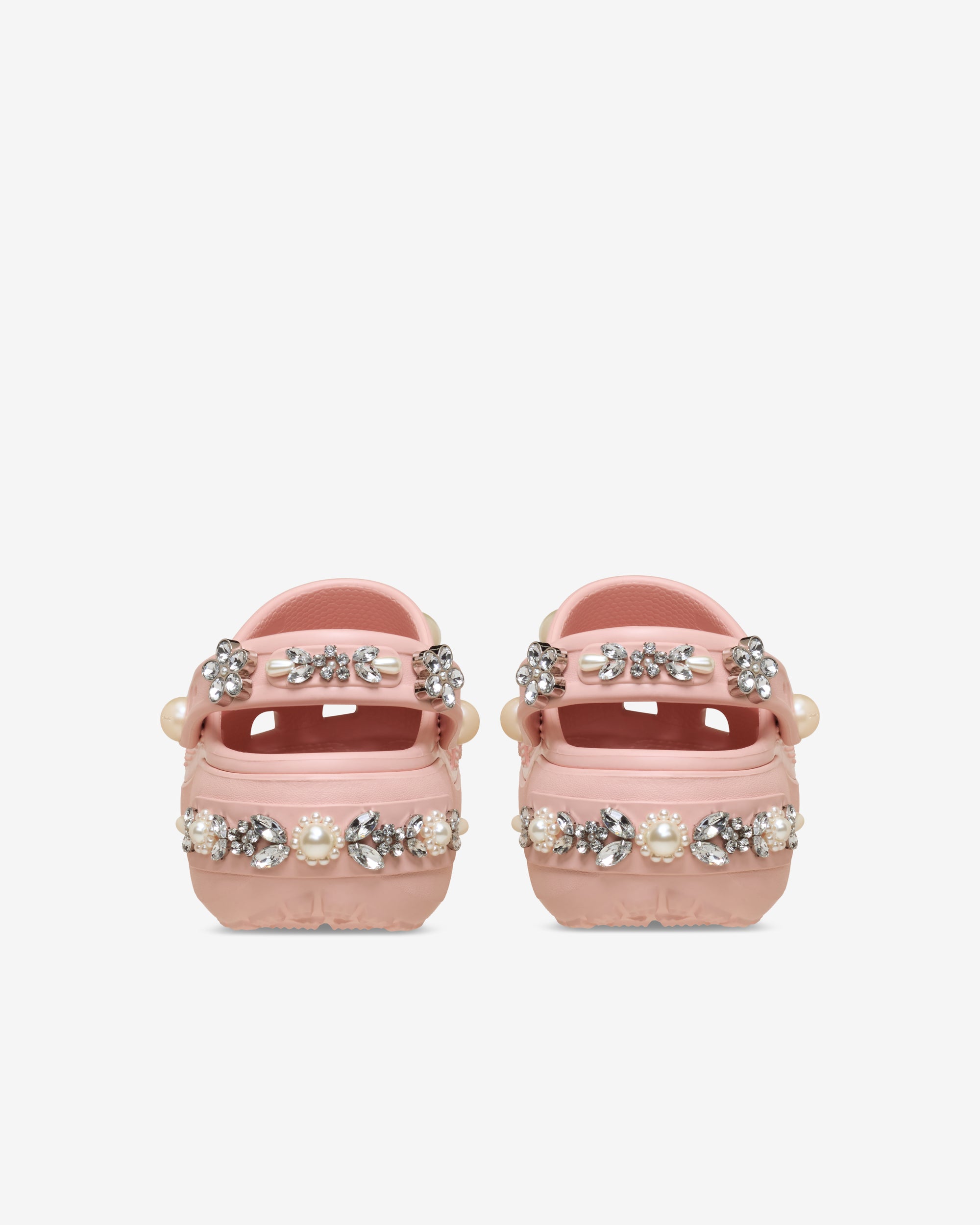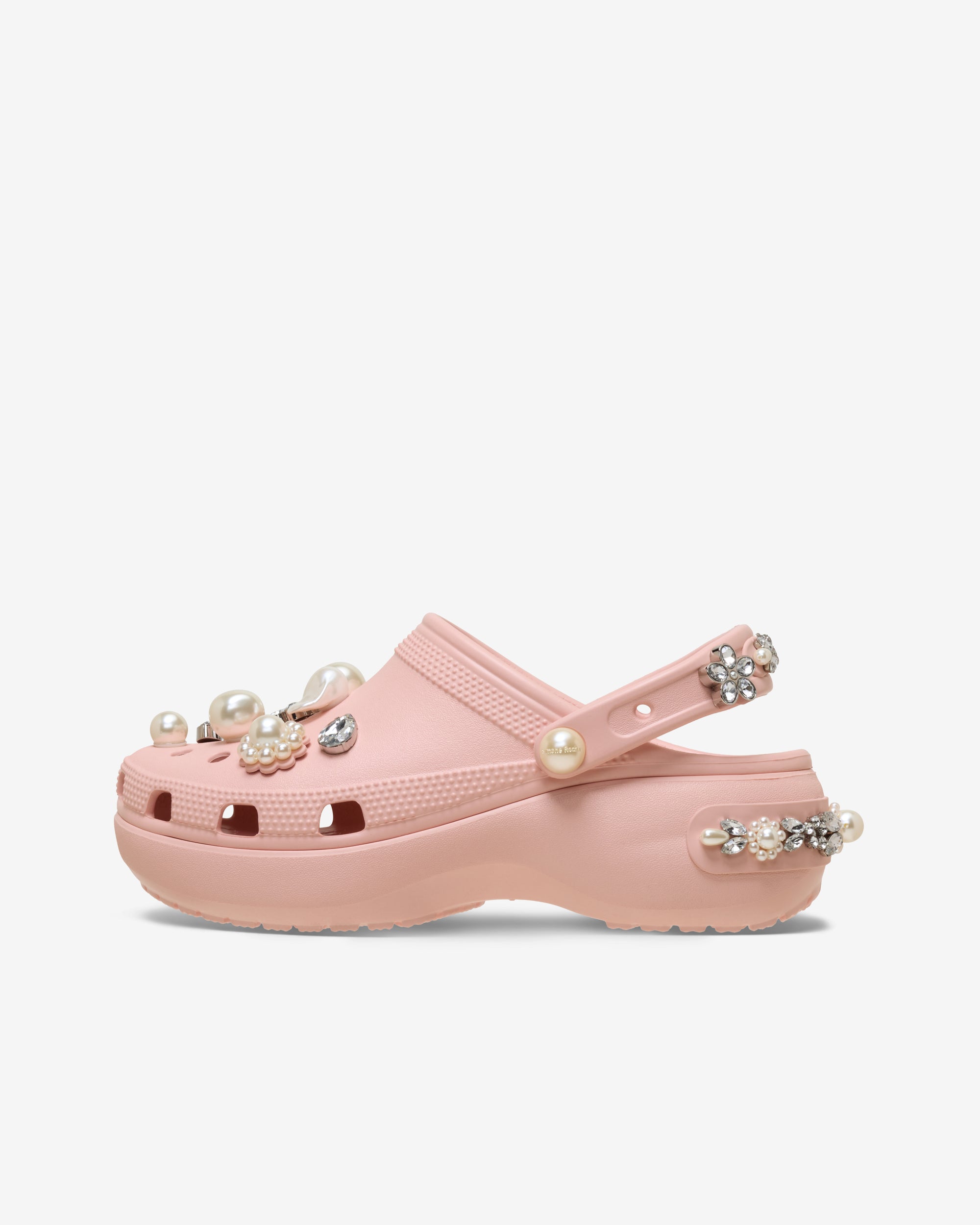 The Platform Clog is an elegant adaptation of an everyday classic. The clog is supported by a cushioned footbed and contoured outsole for comfort, while elevated by a platform sole for style. Adorned with Simone Rocha’s signature embellishments, this stunning style shines with dazzling gemstones and drop pearl Jibbitz™ charms.