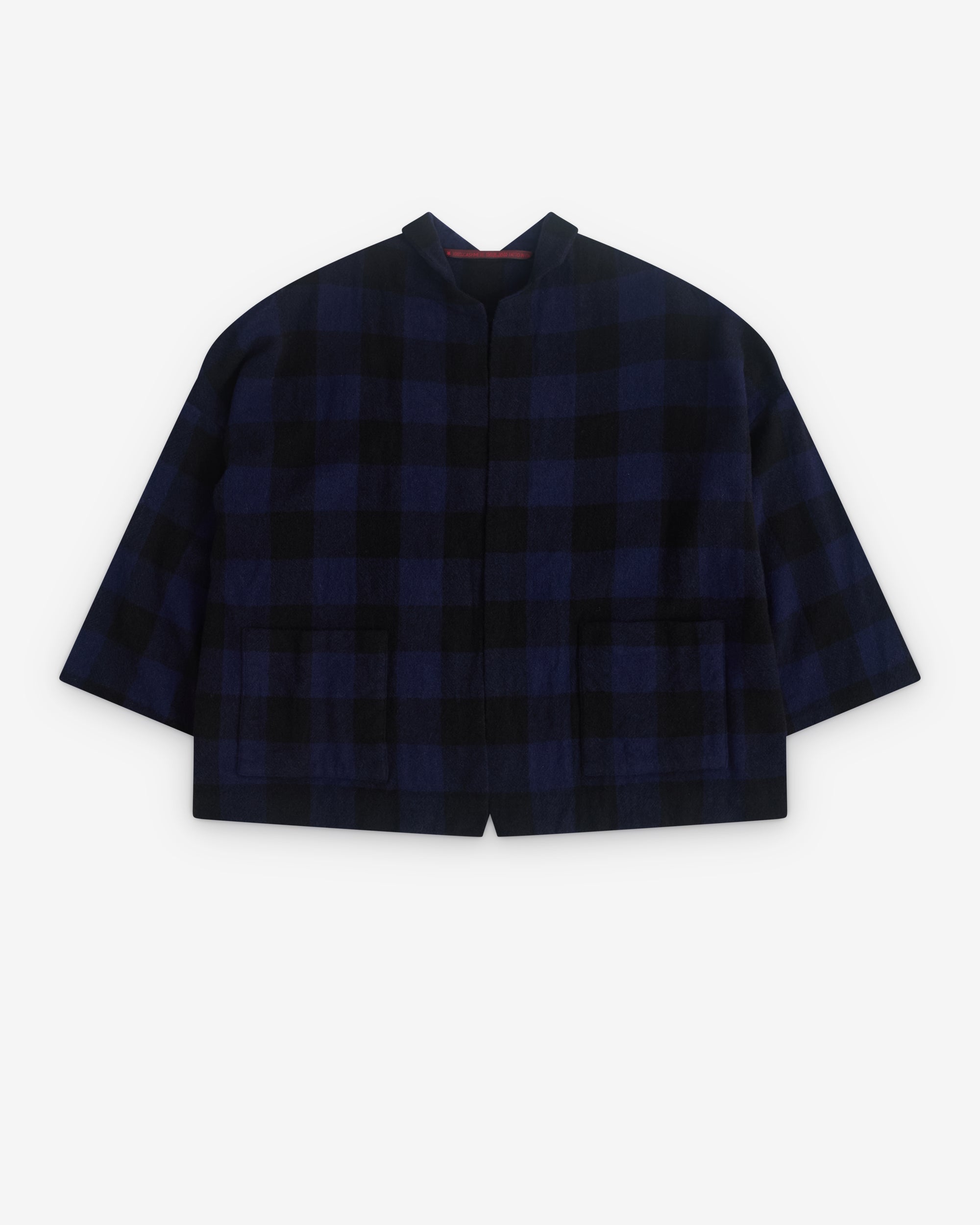 Miniature collarCropped, boxy fit3/4 length sleevesFront patch pockets