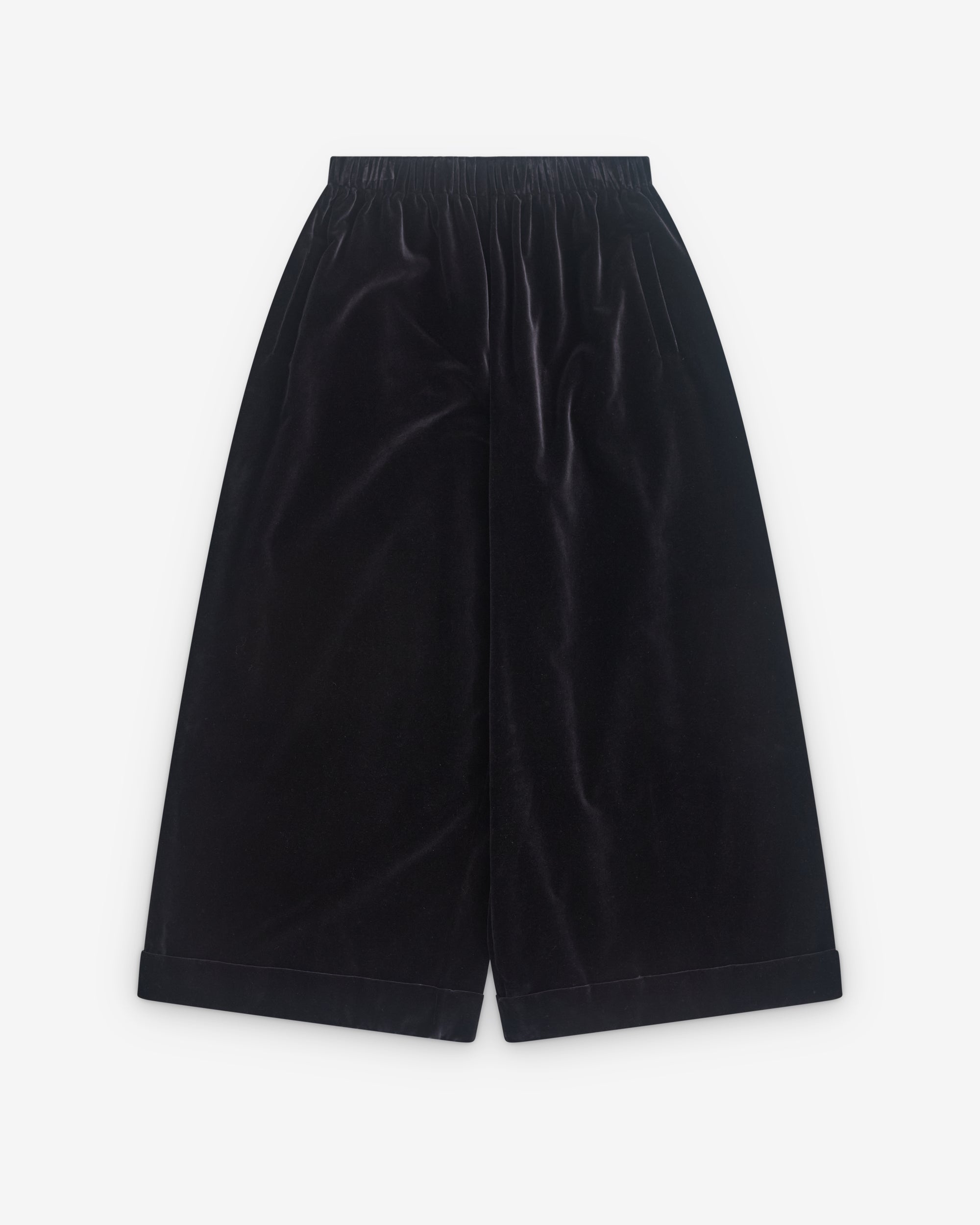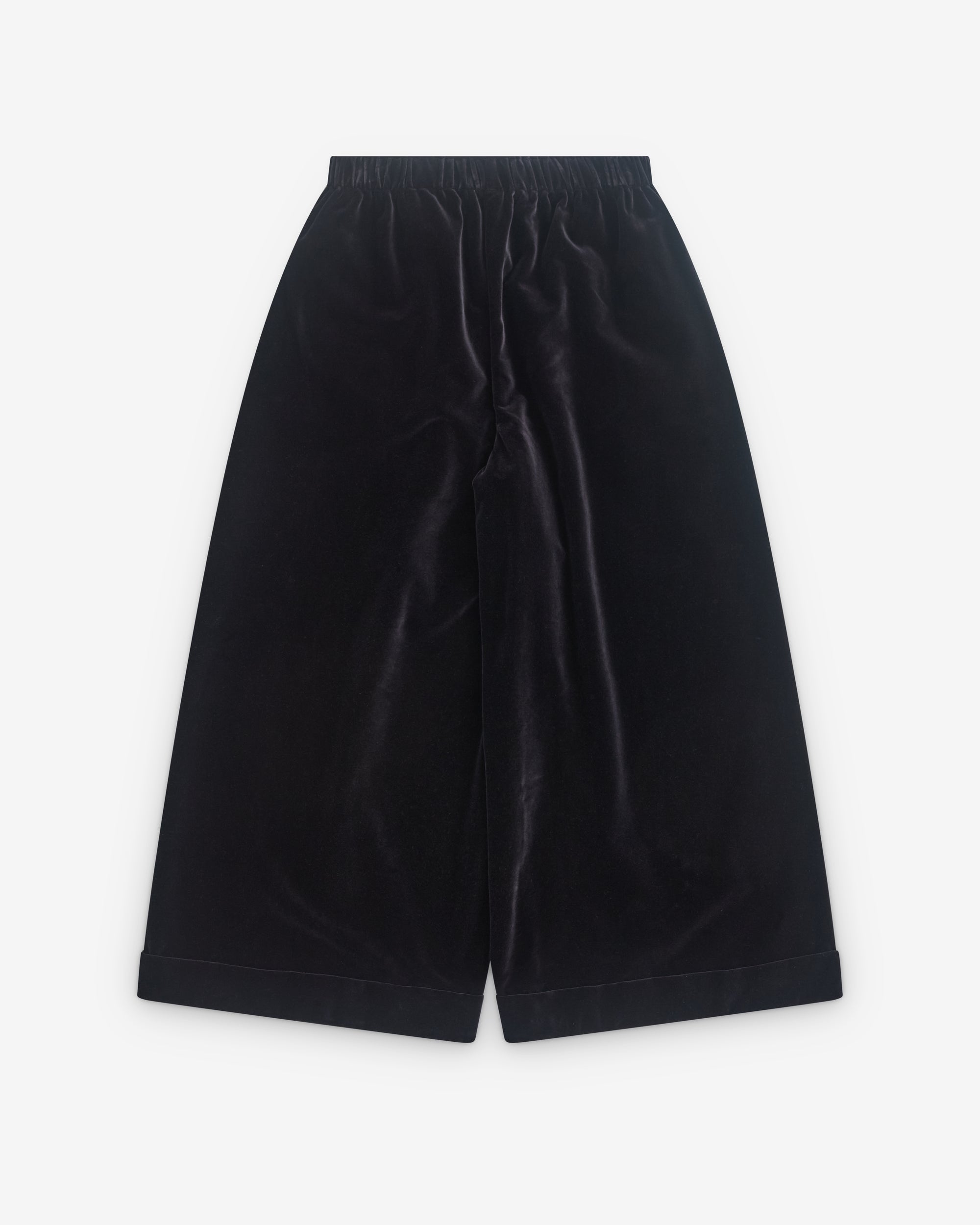 Elasticated waistWide legVelvet fabricationTurned up hemSide seam pockets