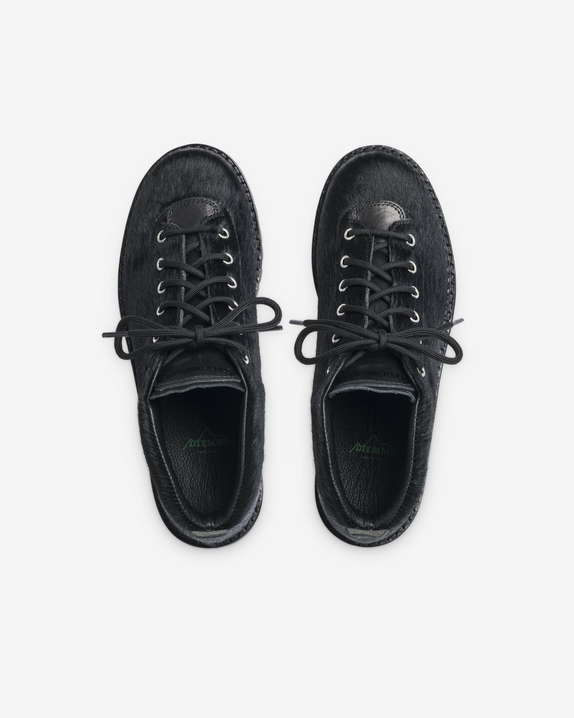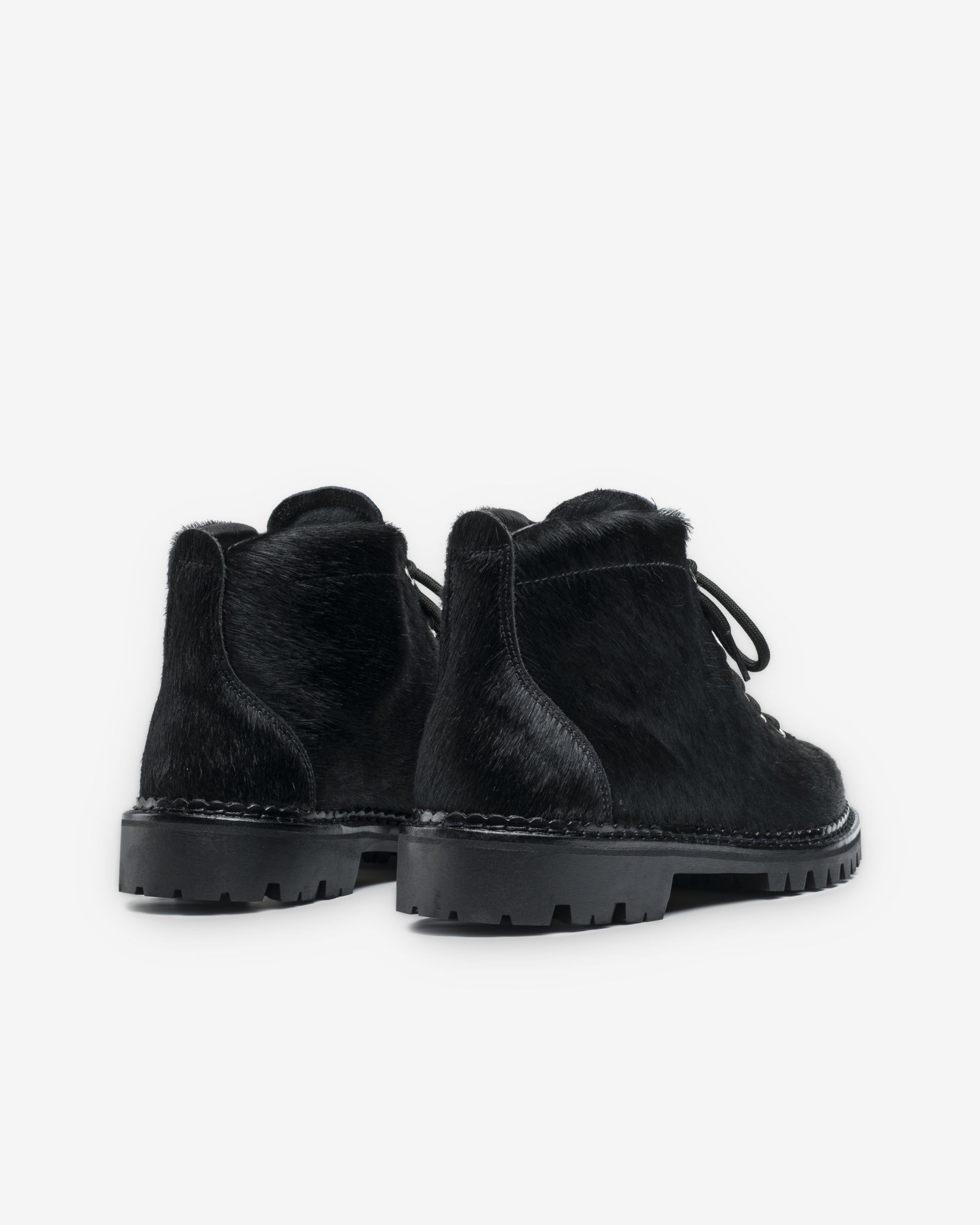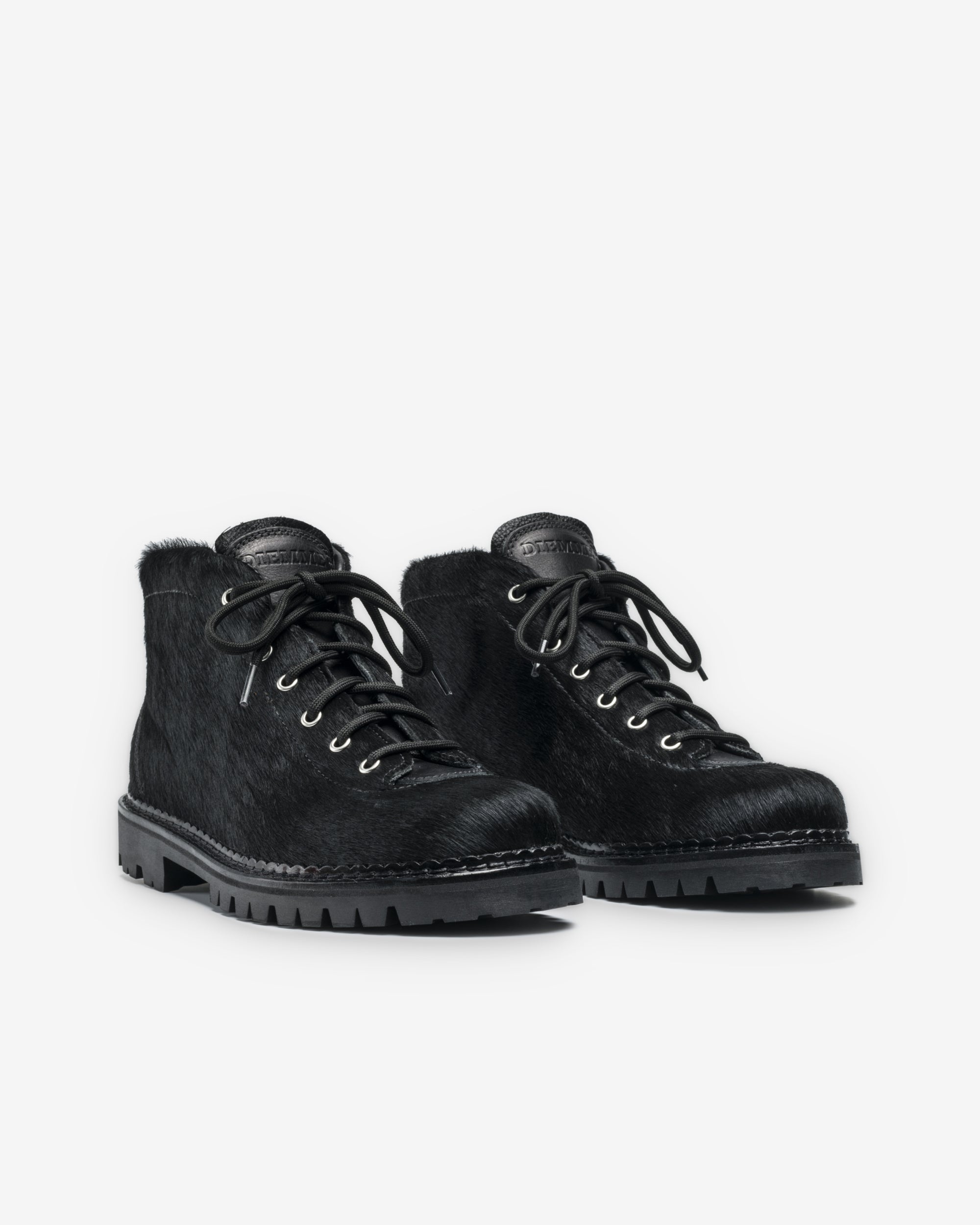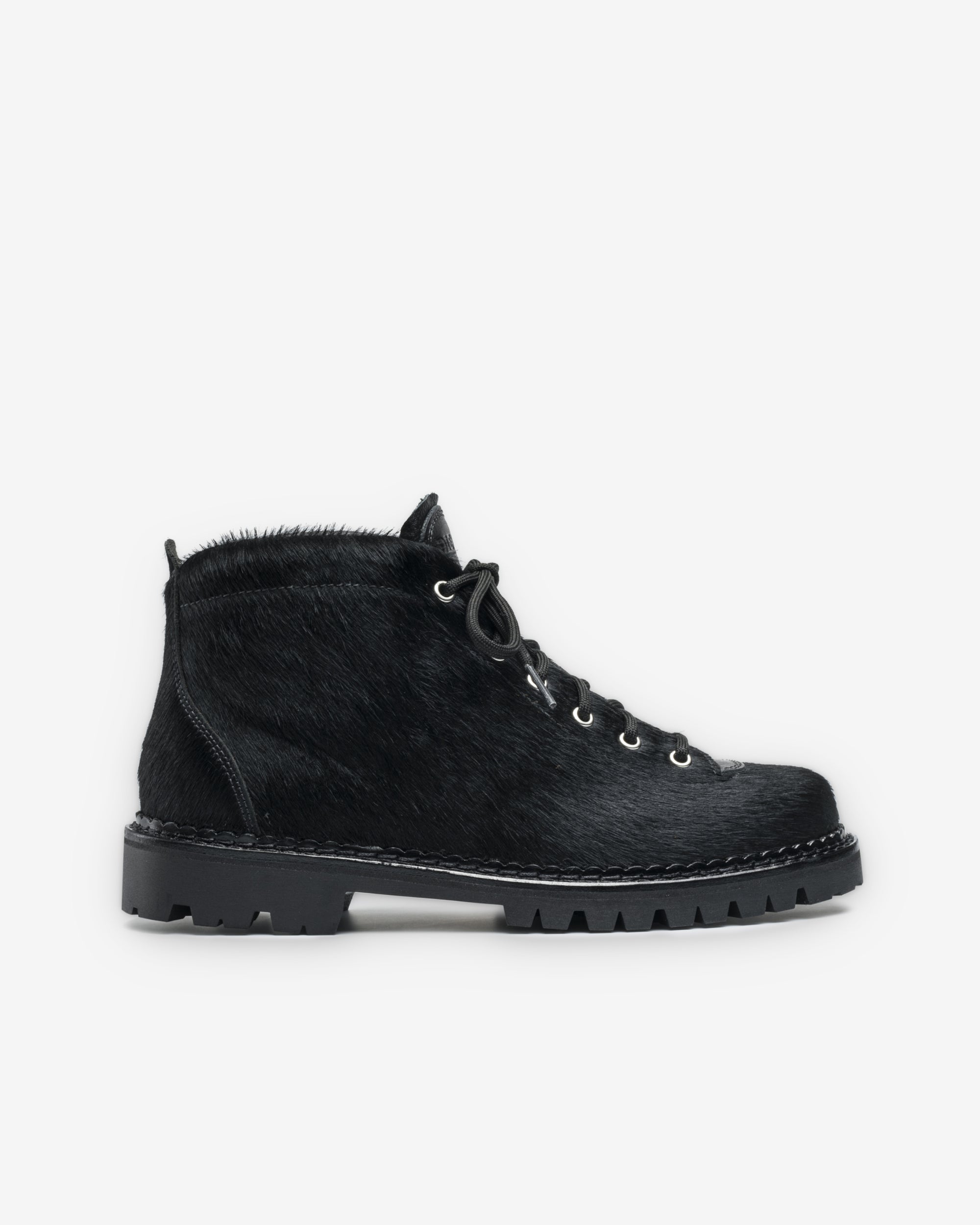 Exclusively produced for DSMPony Hair LeatherProtective rubber mudguardPlatform outsoleLeather lined latex insoleExtra set of laces