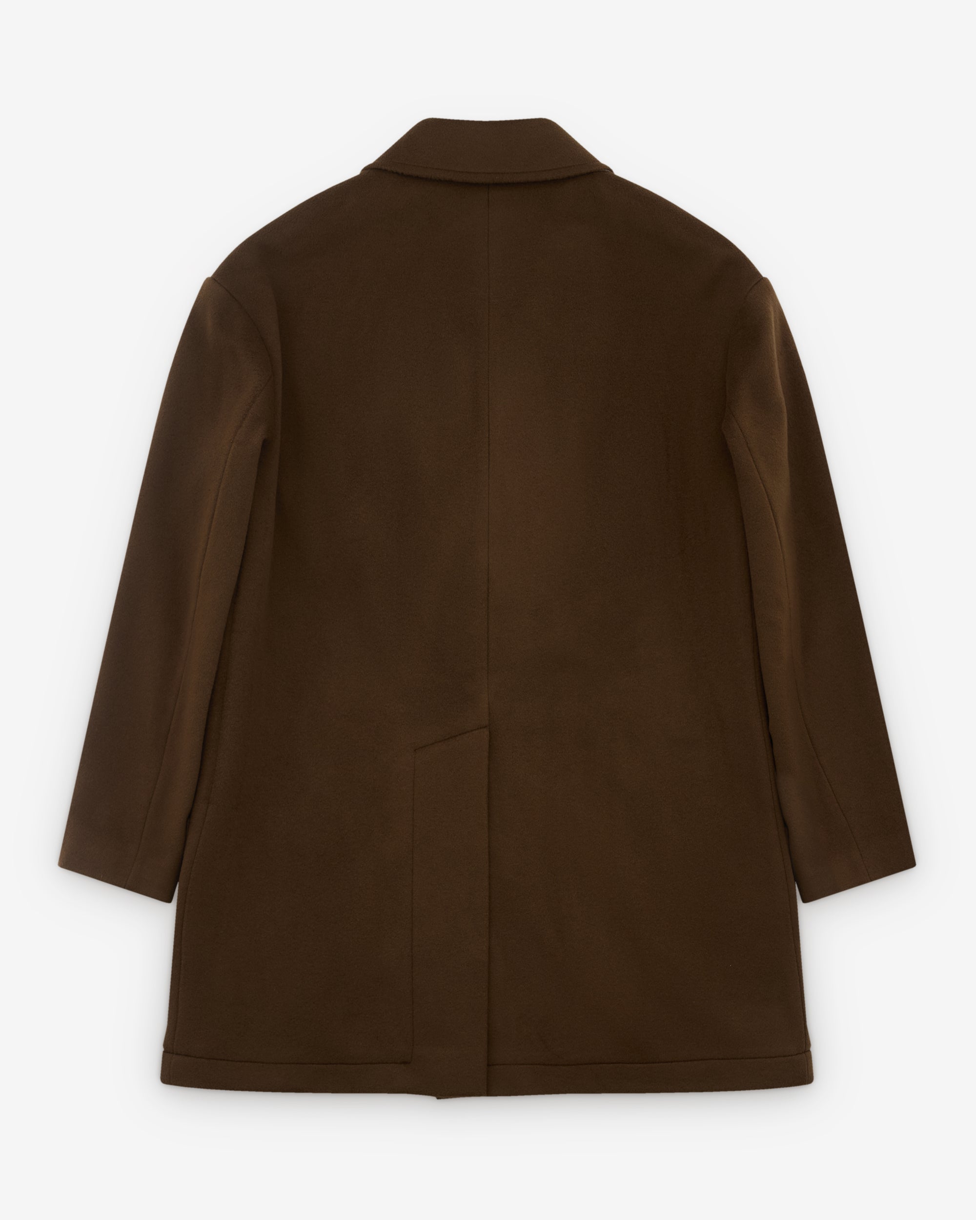 Double breasted button closurePeak lapel collarFull internal liningFront patch pocketsSplit rear hem