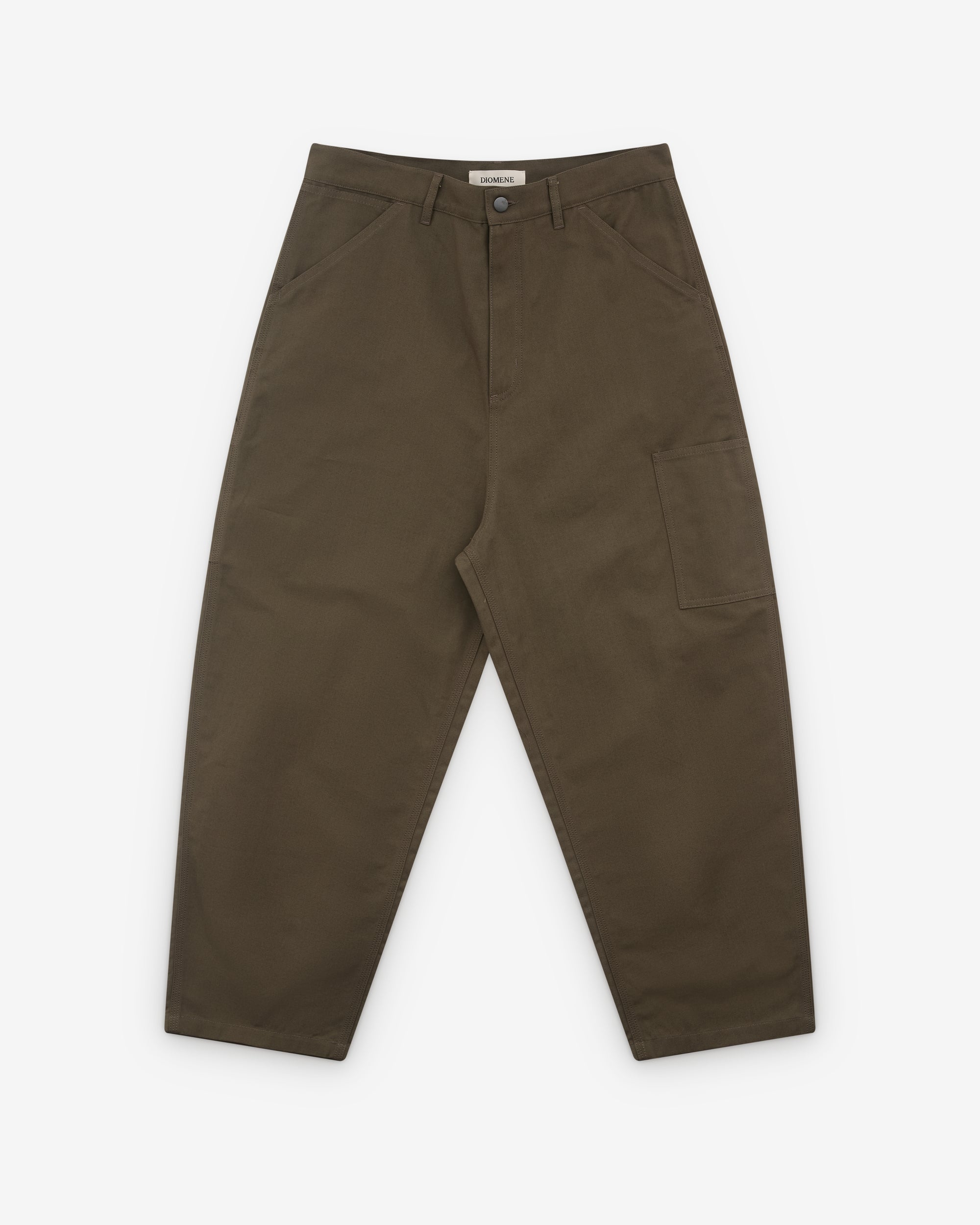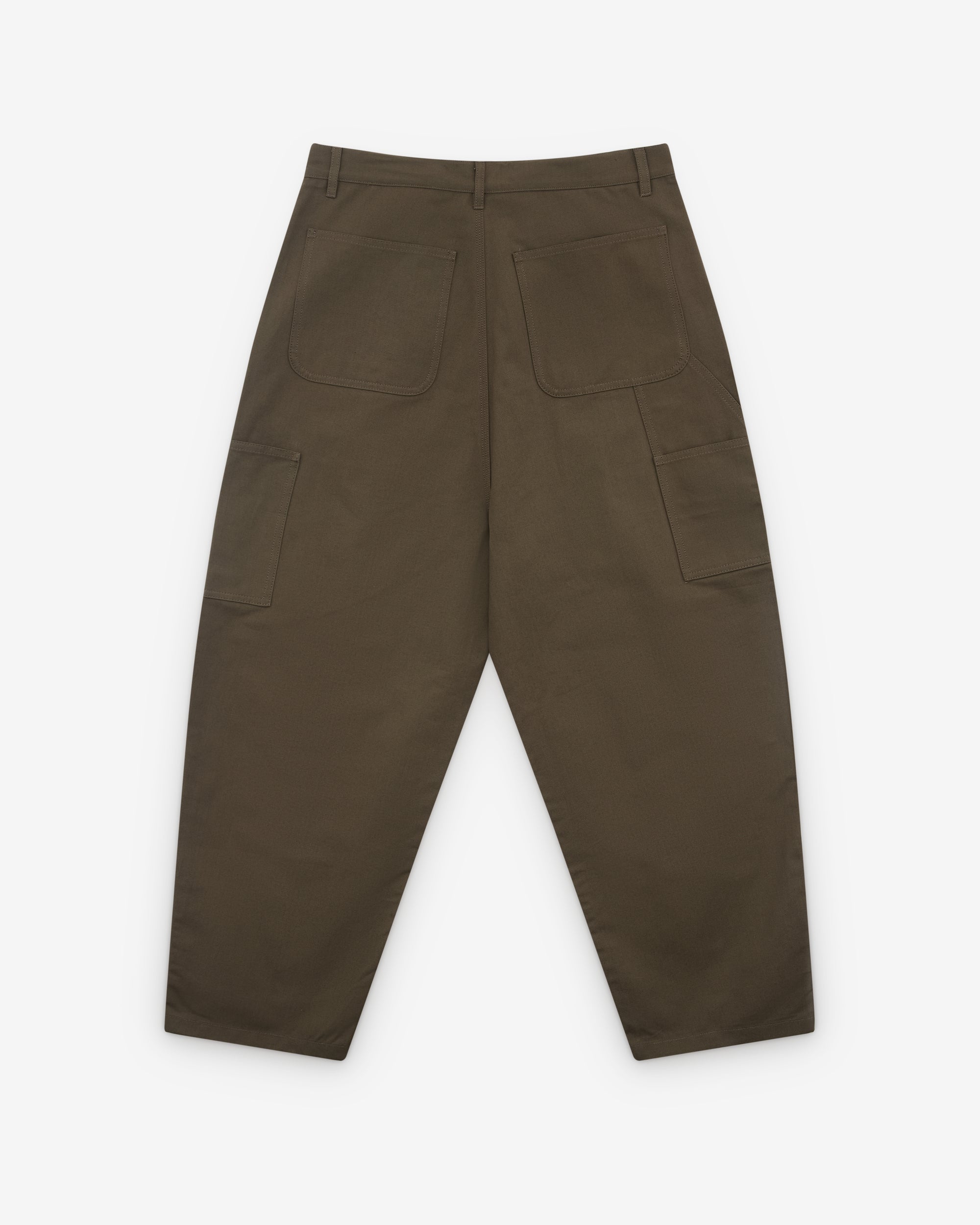 Wide, loose fit Button close waistFront pockets, two back pocketsWorkwear leg pocketsSlightly tapered leg