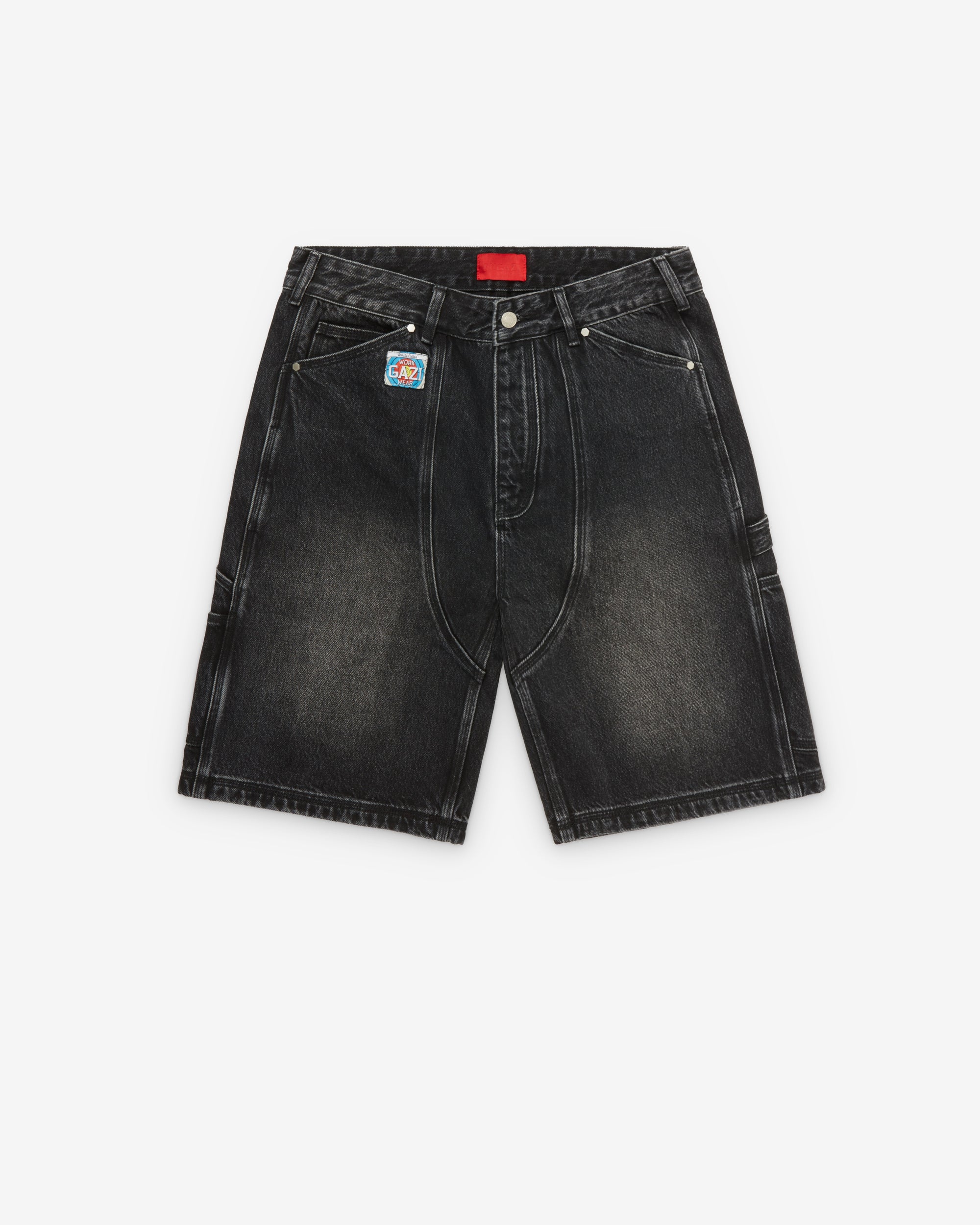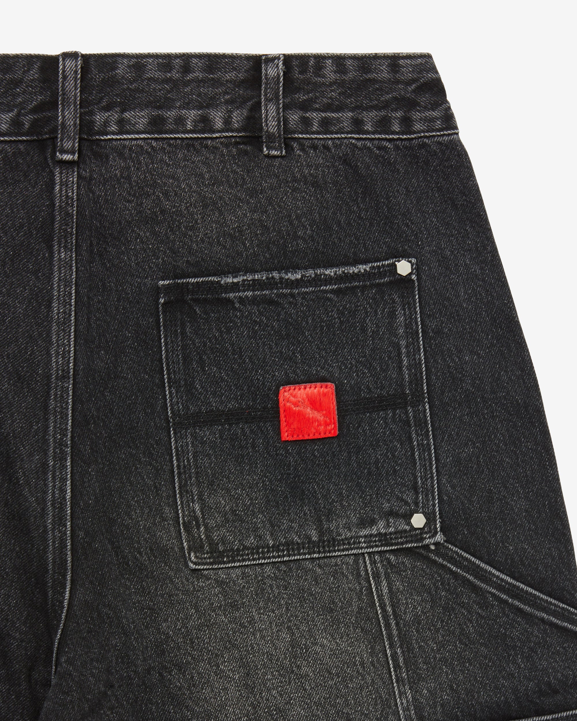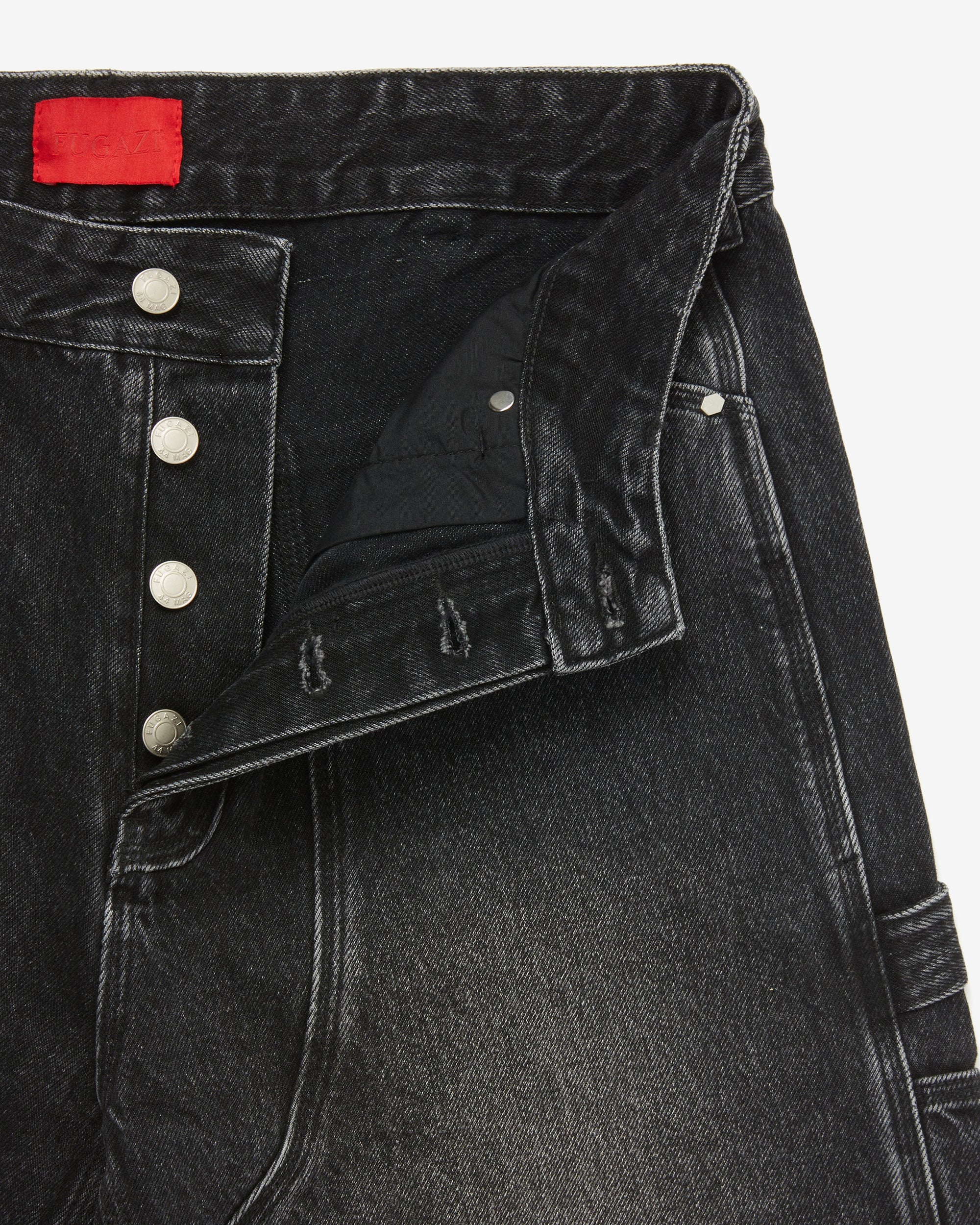Double knee constructionButton waist closure5 PocketsGraphic patch at front and backLeg pockets and hammer loopMetal rivets