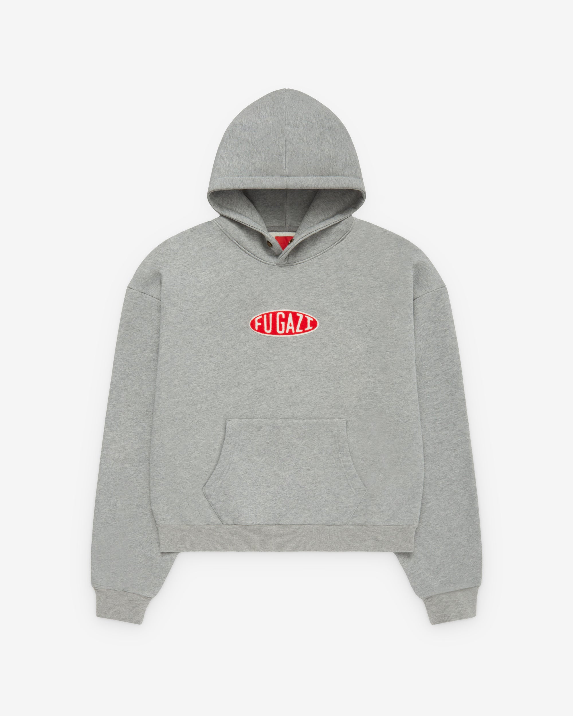 Snap button hoodPatch graphic at chestLong sleevesRibbed cuffs and hemKangaroo pocket