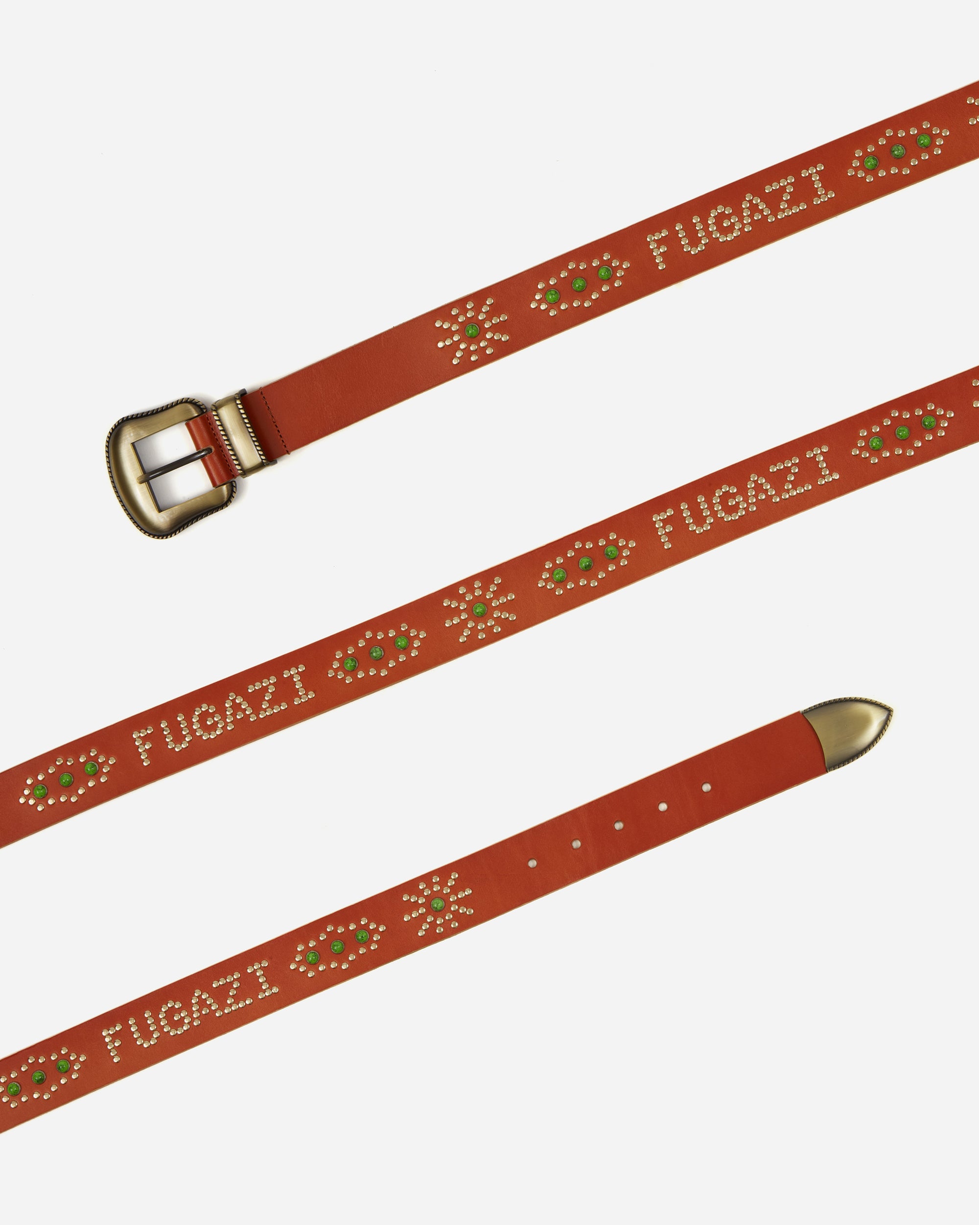 Vegetable tanned cow Metal buckle, loop and end tipEmbellished with metal studs and acrylic stones
