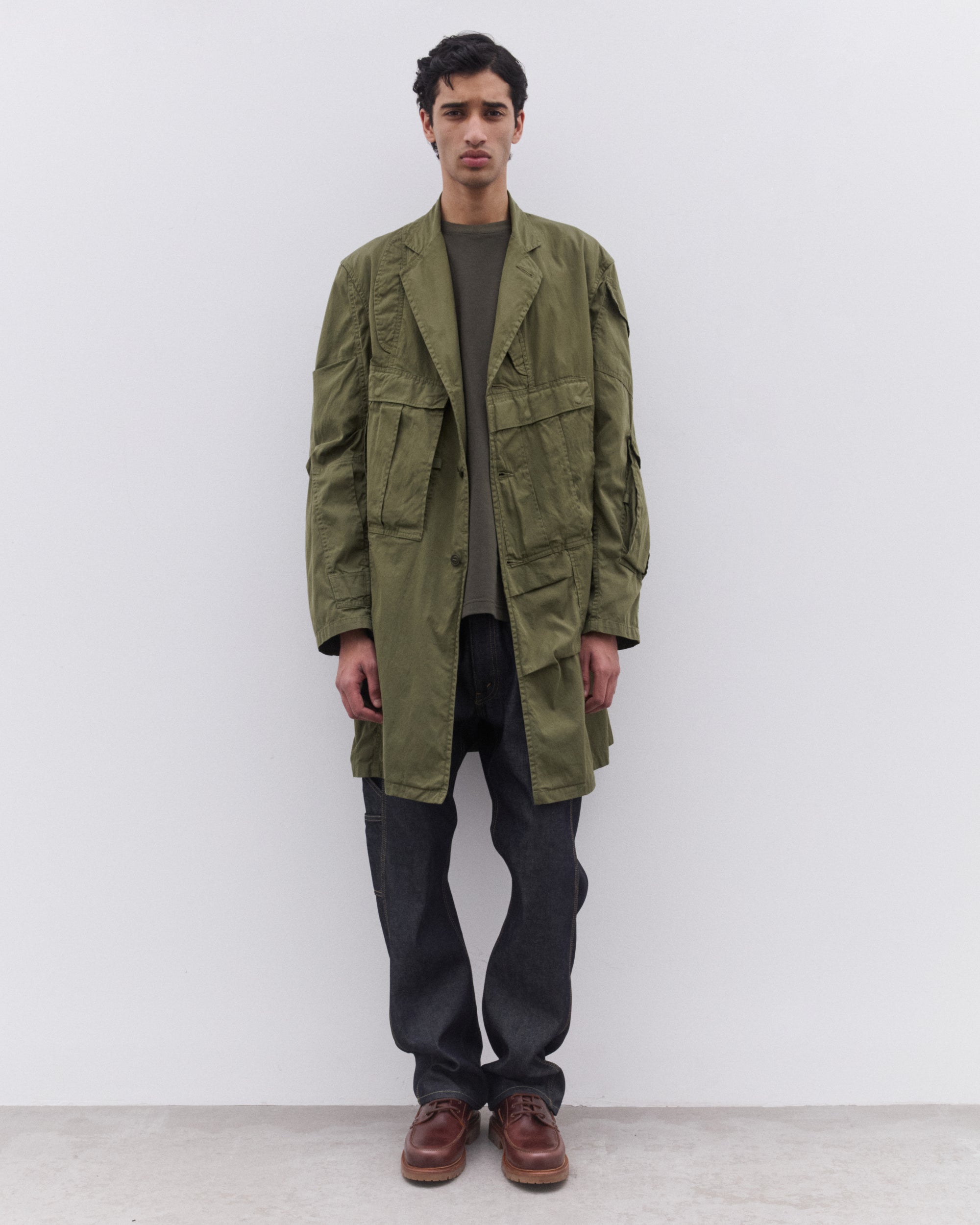 Made in Collaboration with Rebuild By NeedlesOpen collarMulti pocket detail throughoutDarted sleevesUnlinedMid-lengthWashed finish