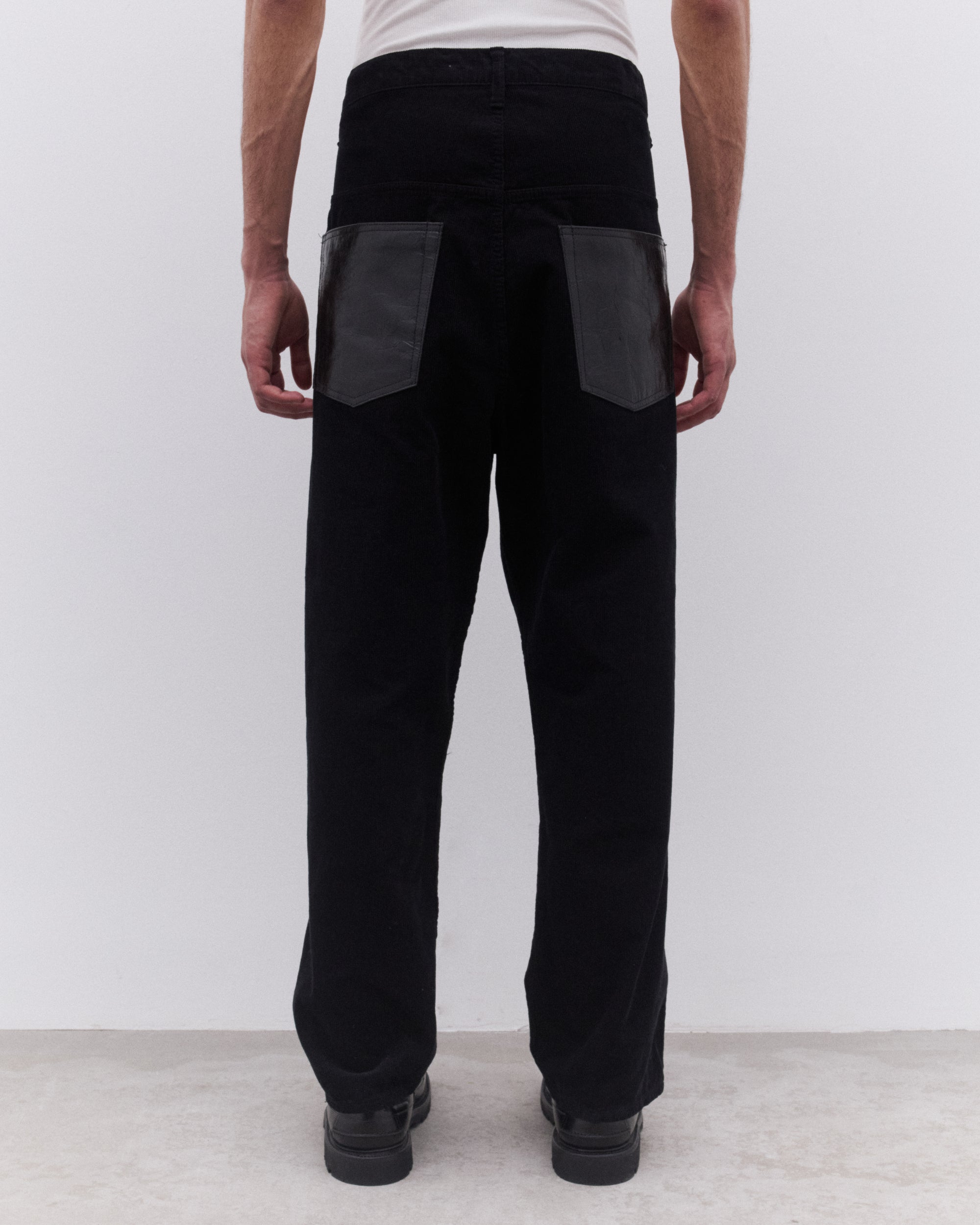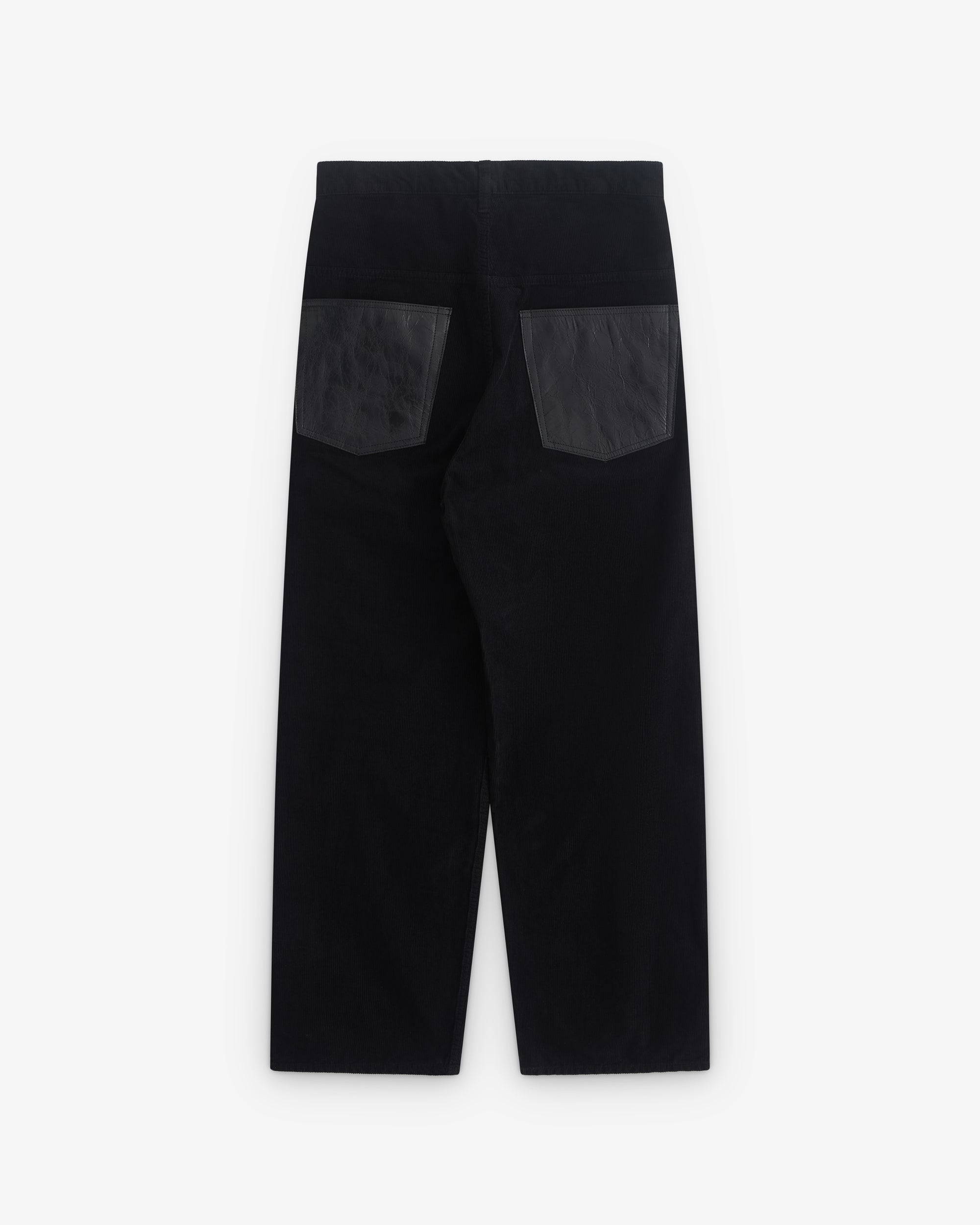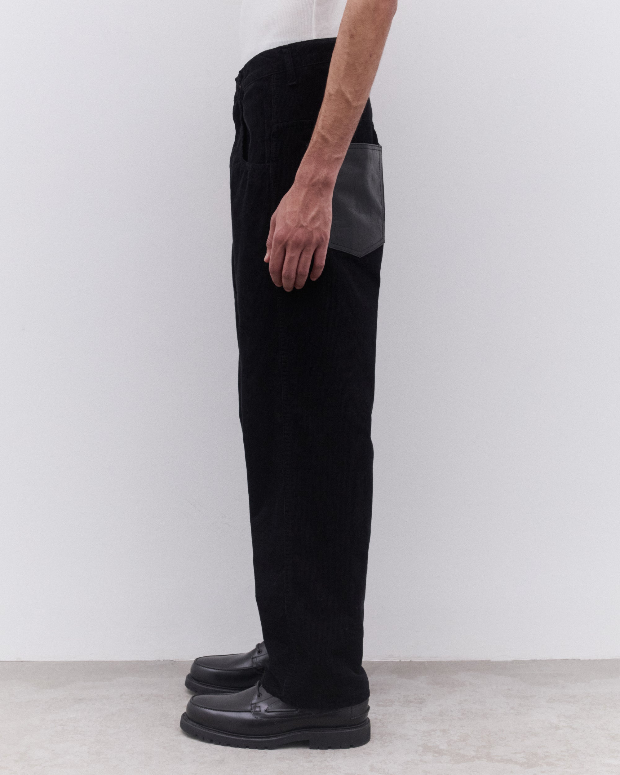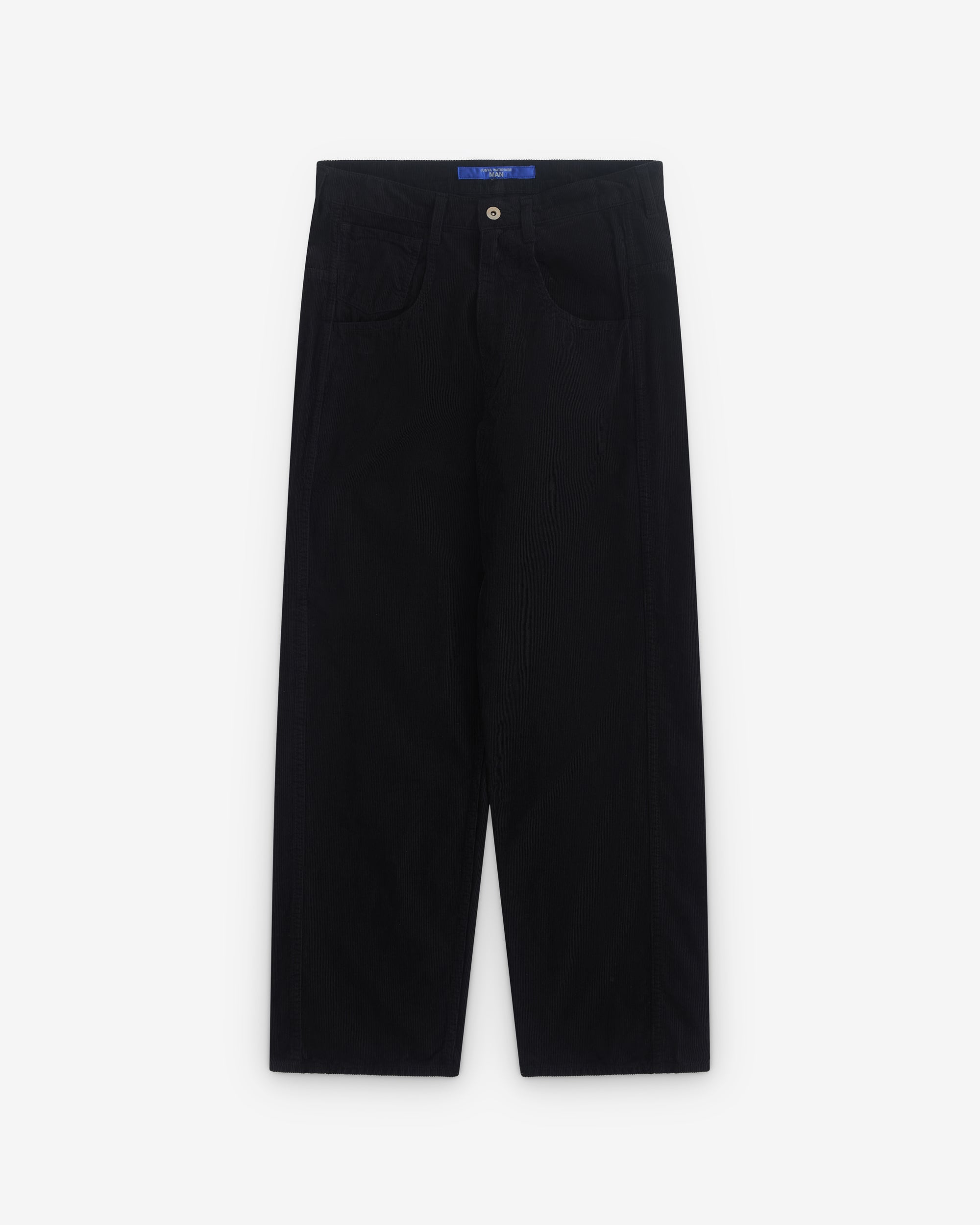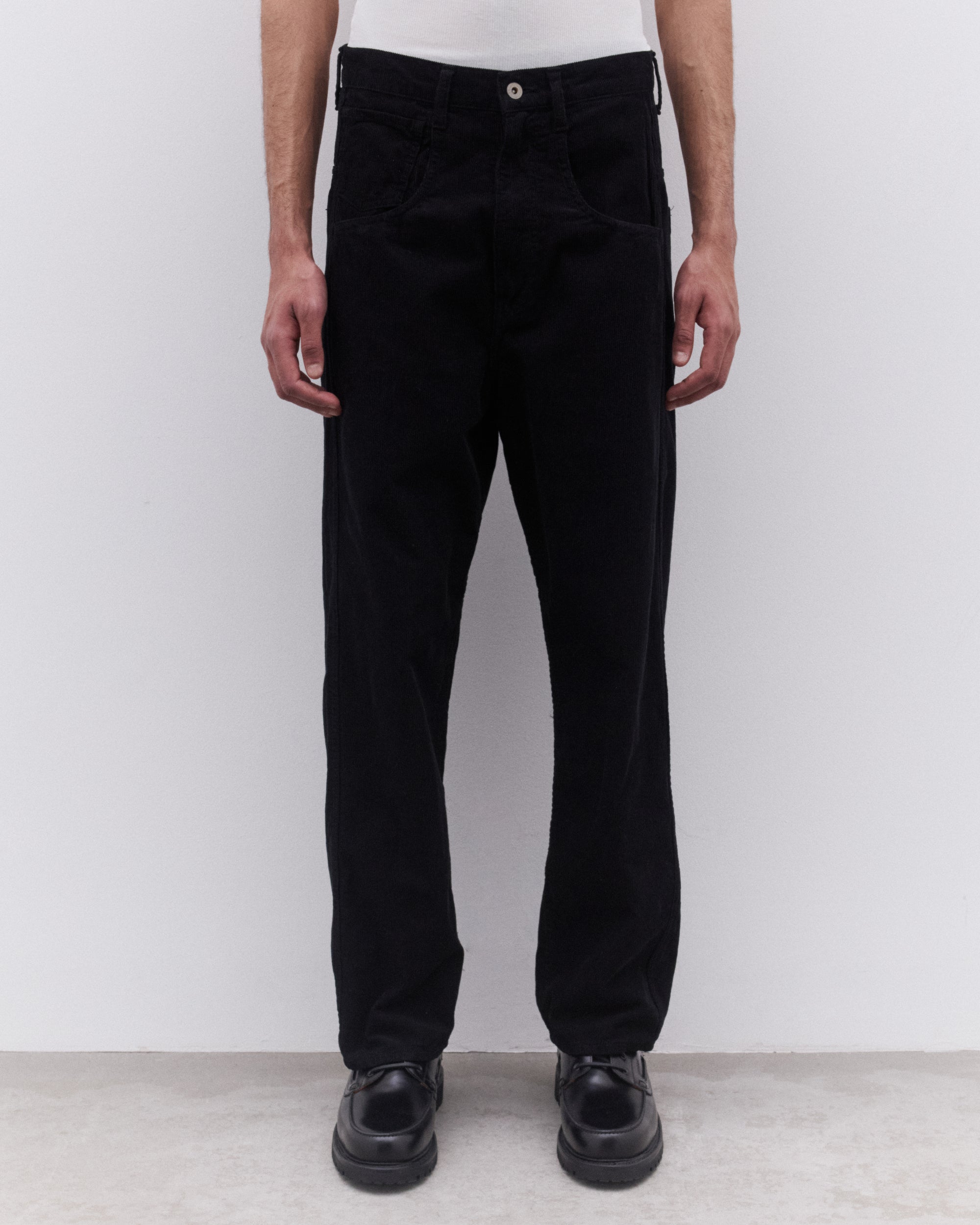 Needle corduroyTapered legDropped crotchContrast rear patch pockets Belt loopsflat front