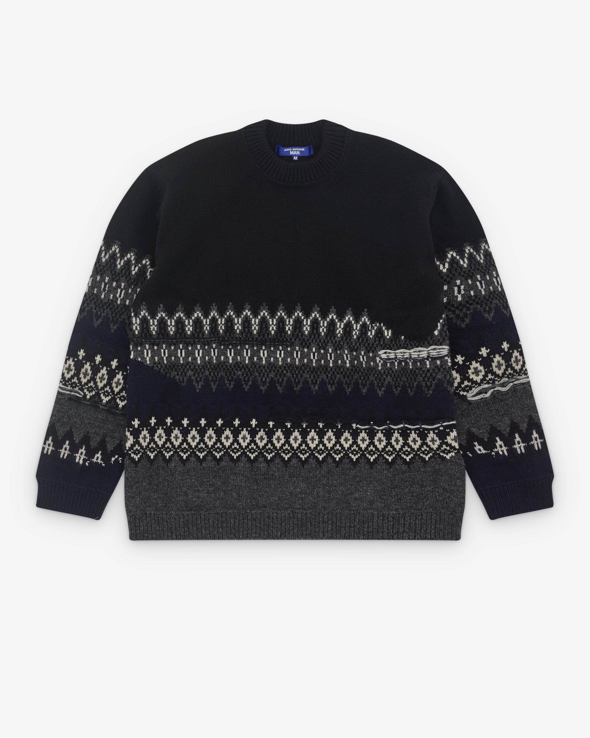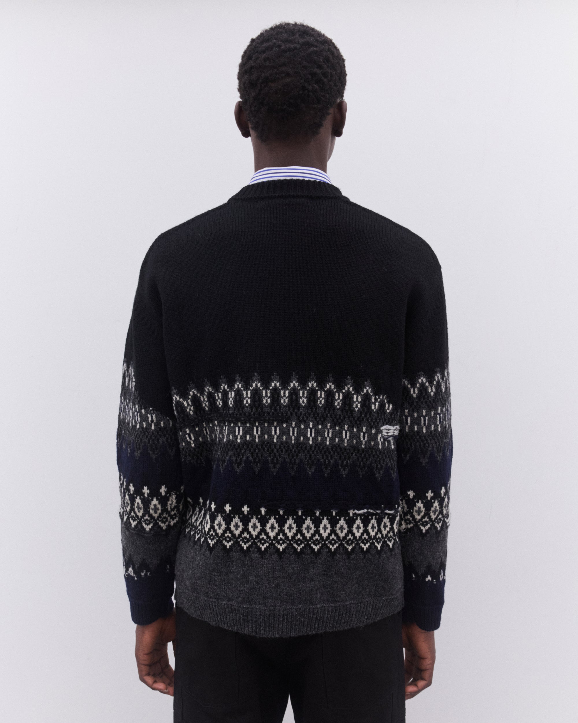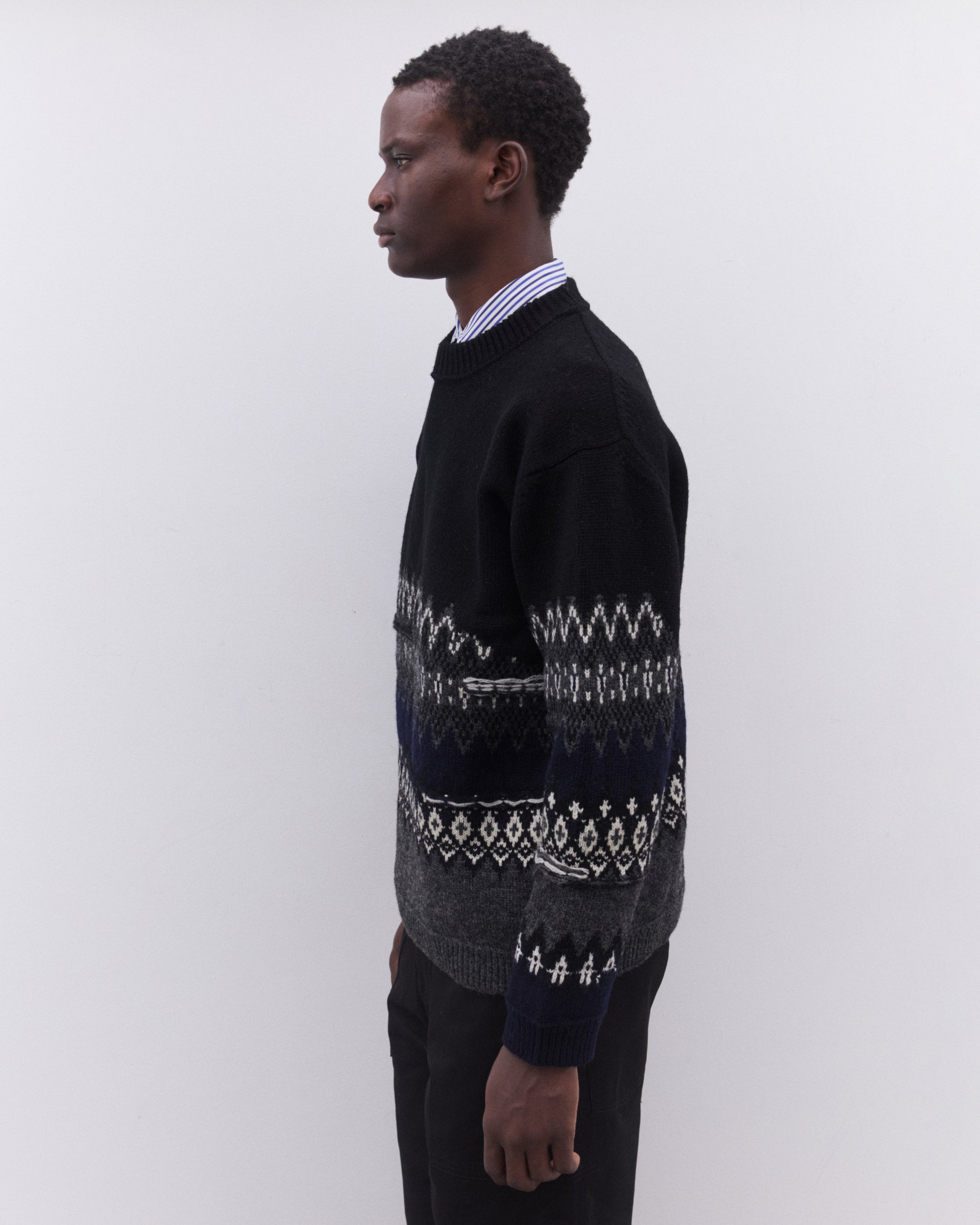 Shetland wool Crew neckRaglan sleevesIntarsia knit designRib knit trims100% WoolMade in Japan