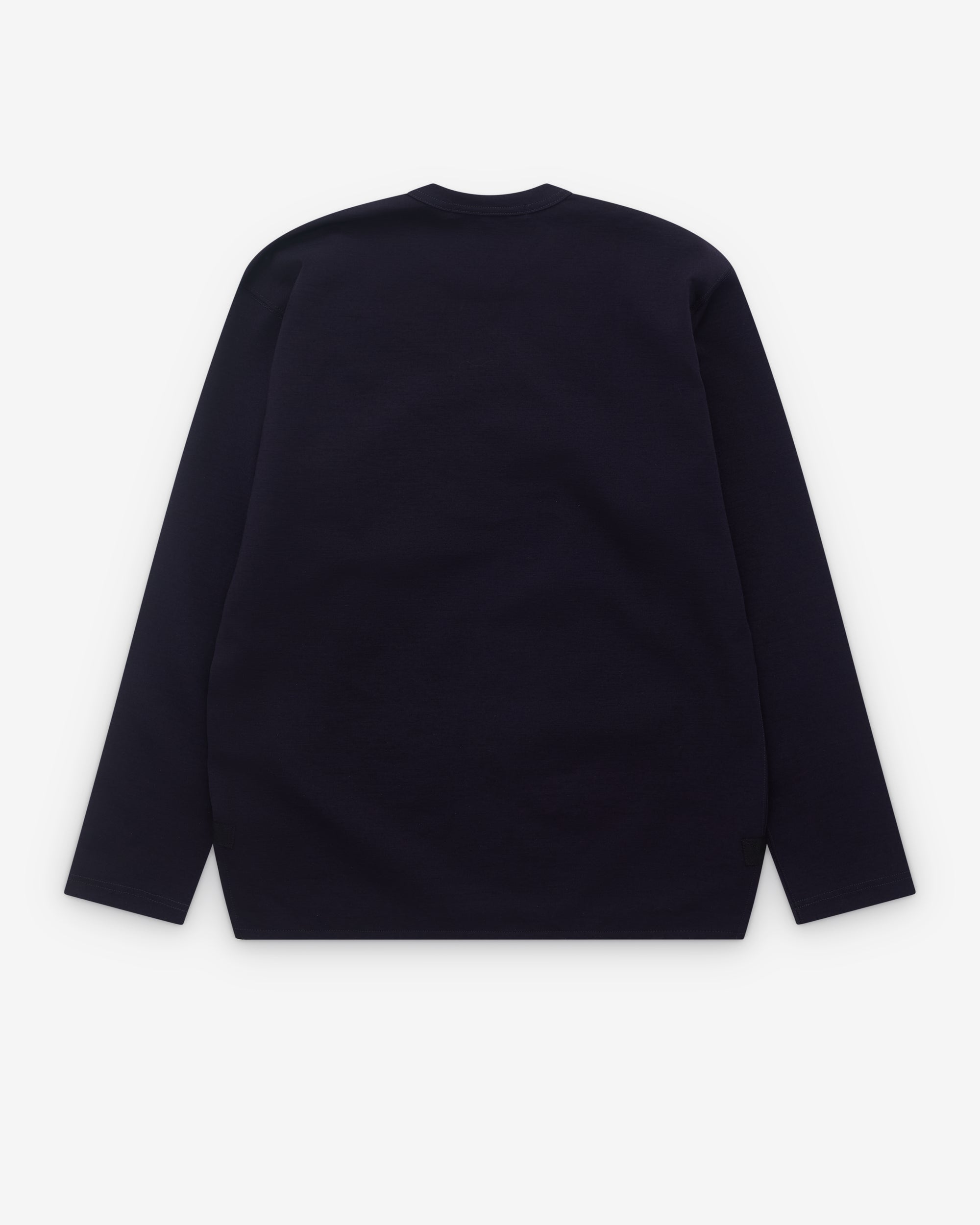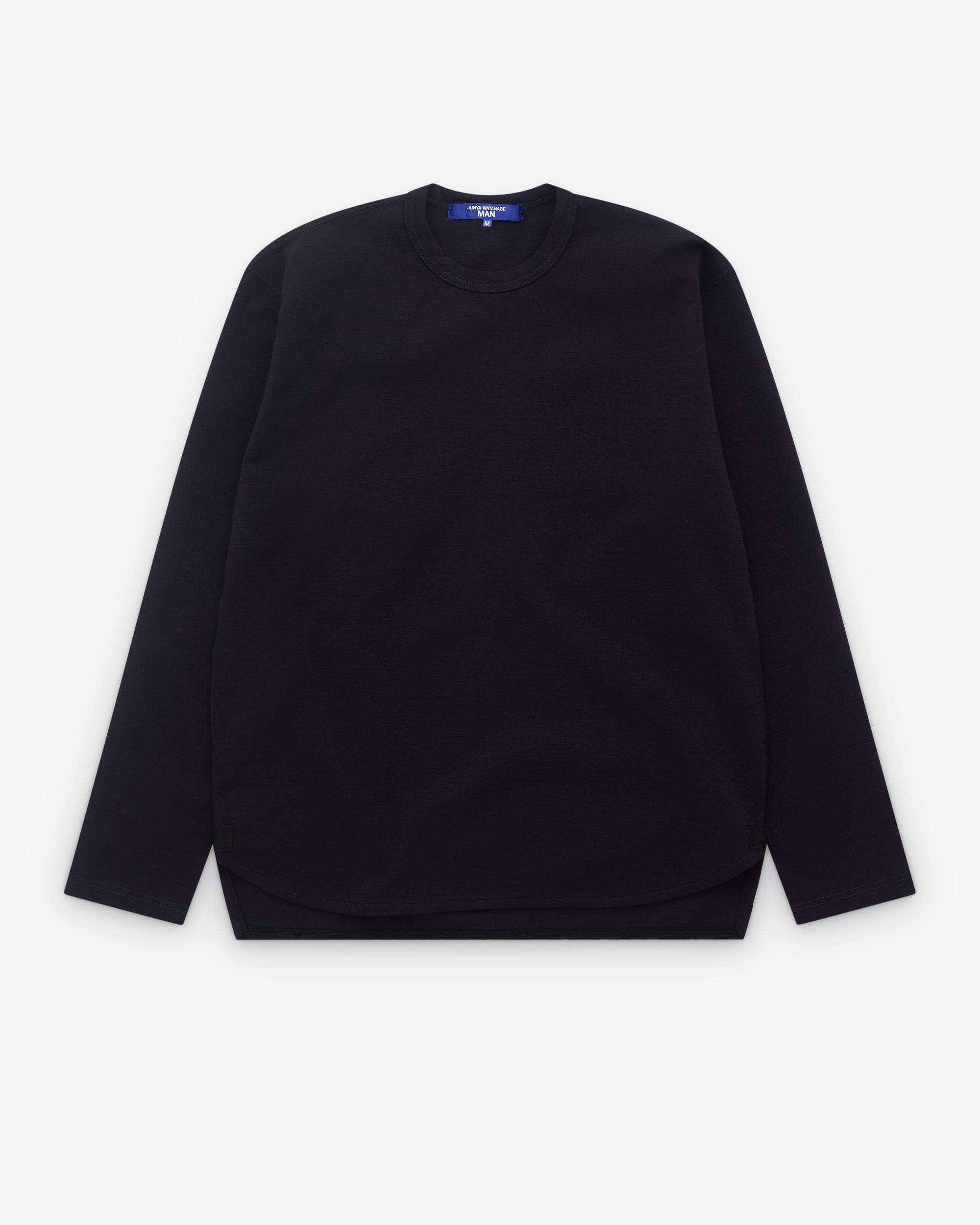 Round neckLong sleevesTipping details at stepped hemBoxy fit
