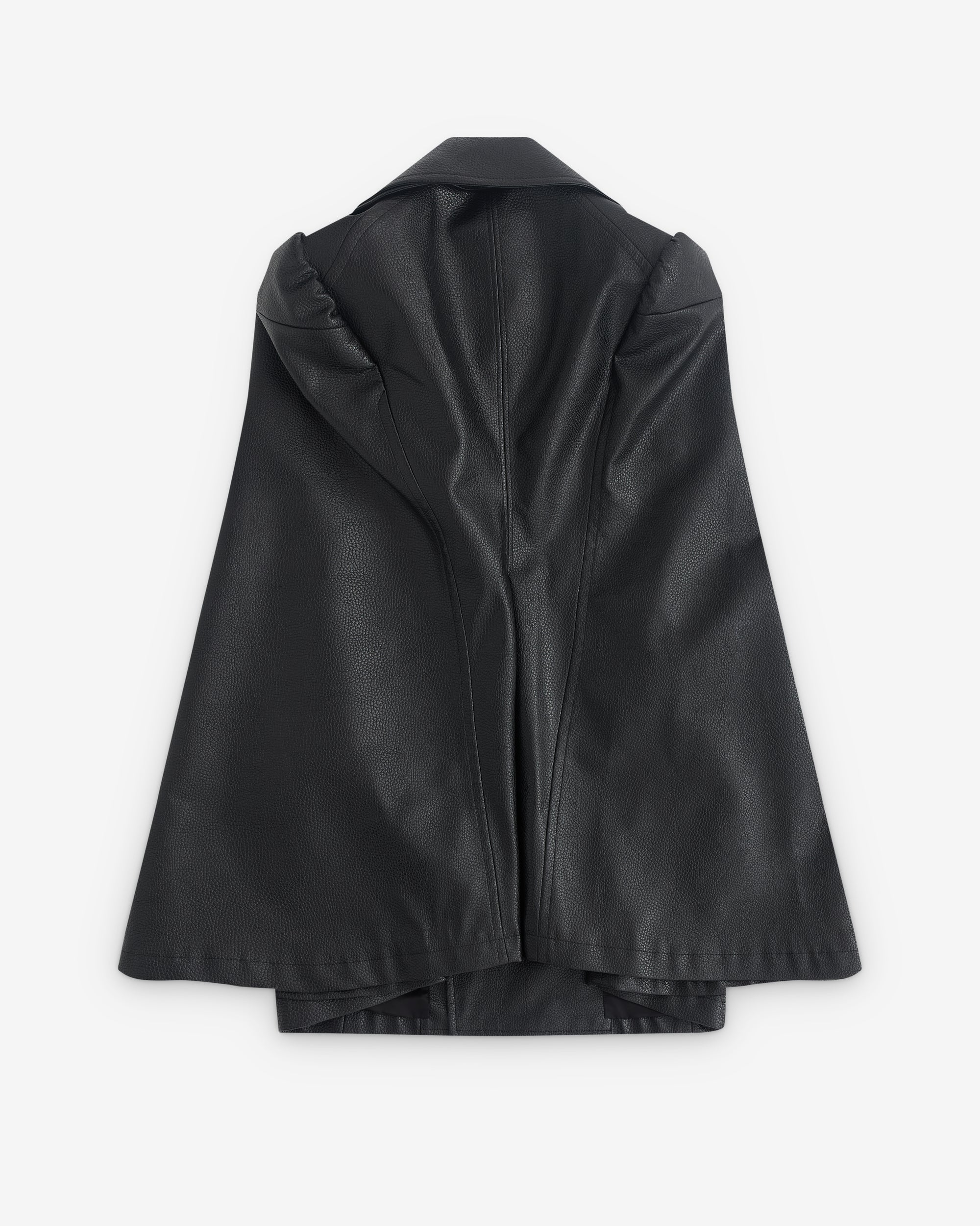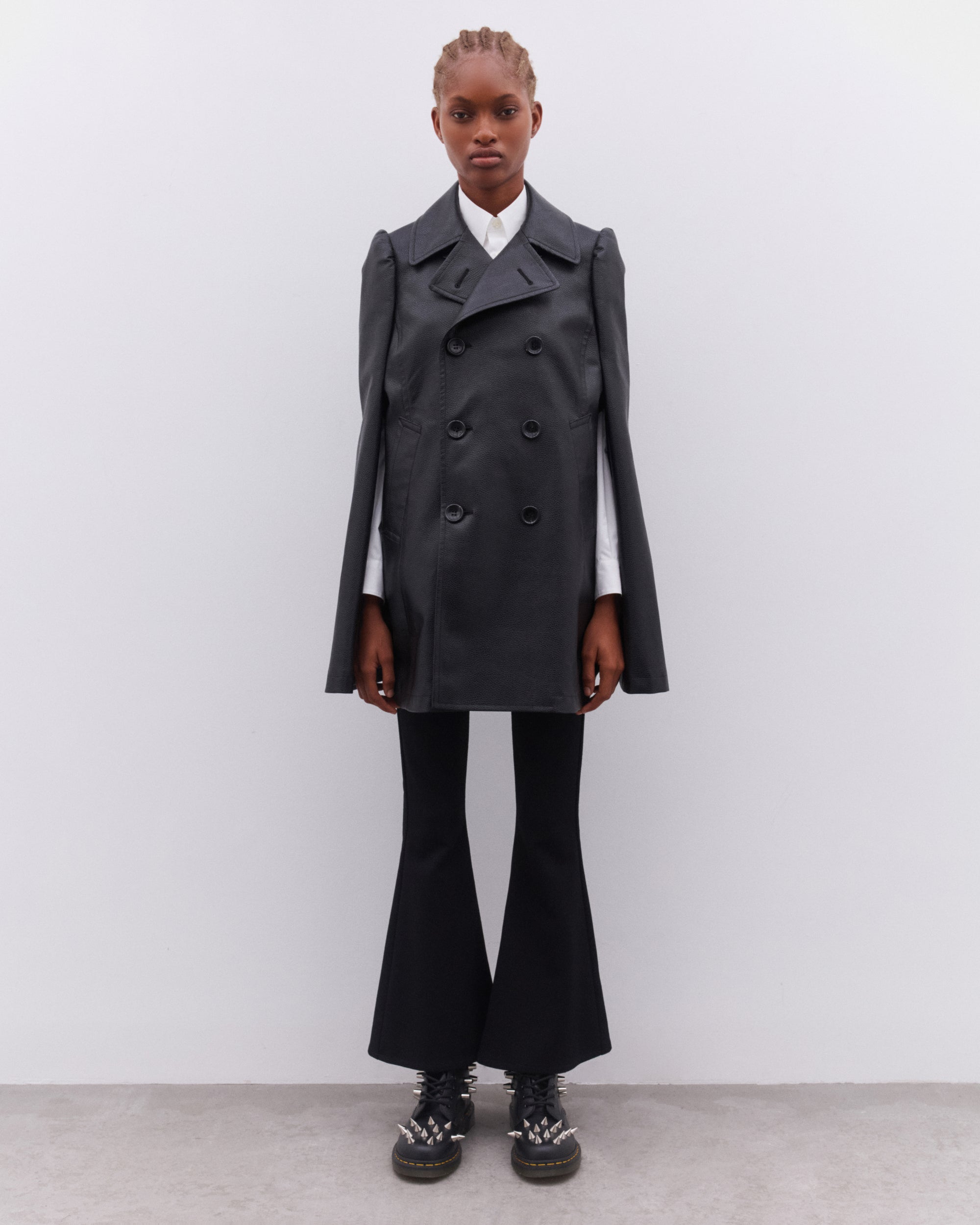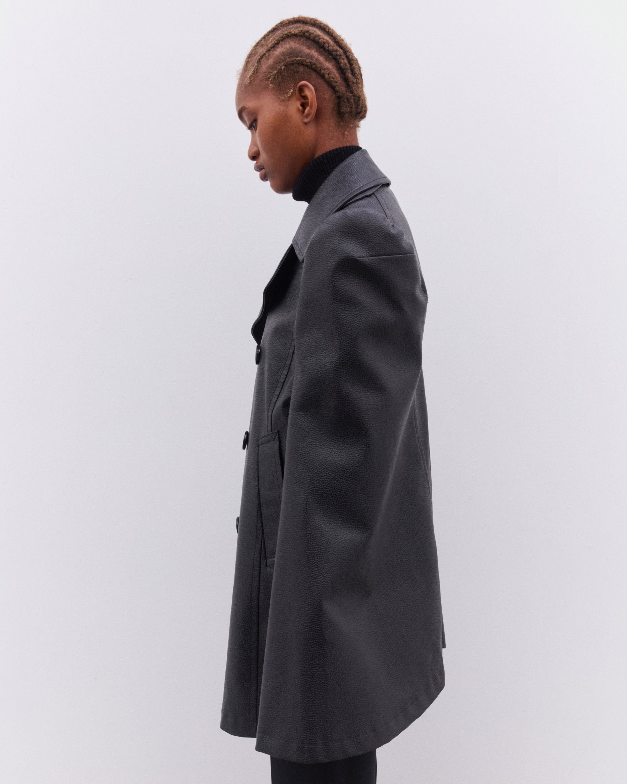 Open collarDouble breastedCape constructionWelt pocketsLinedGrained finish