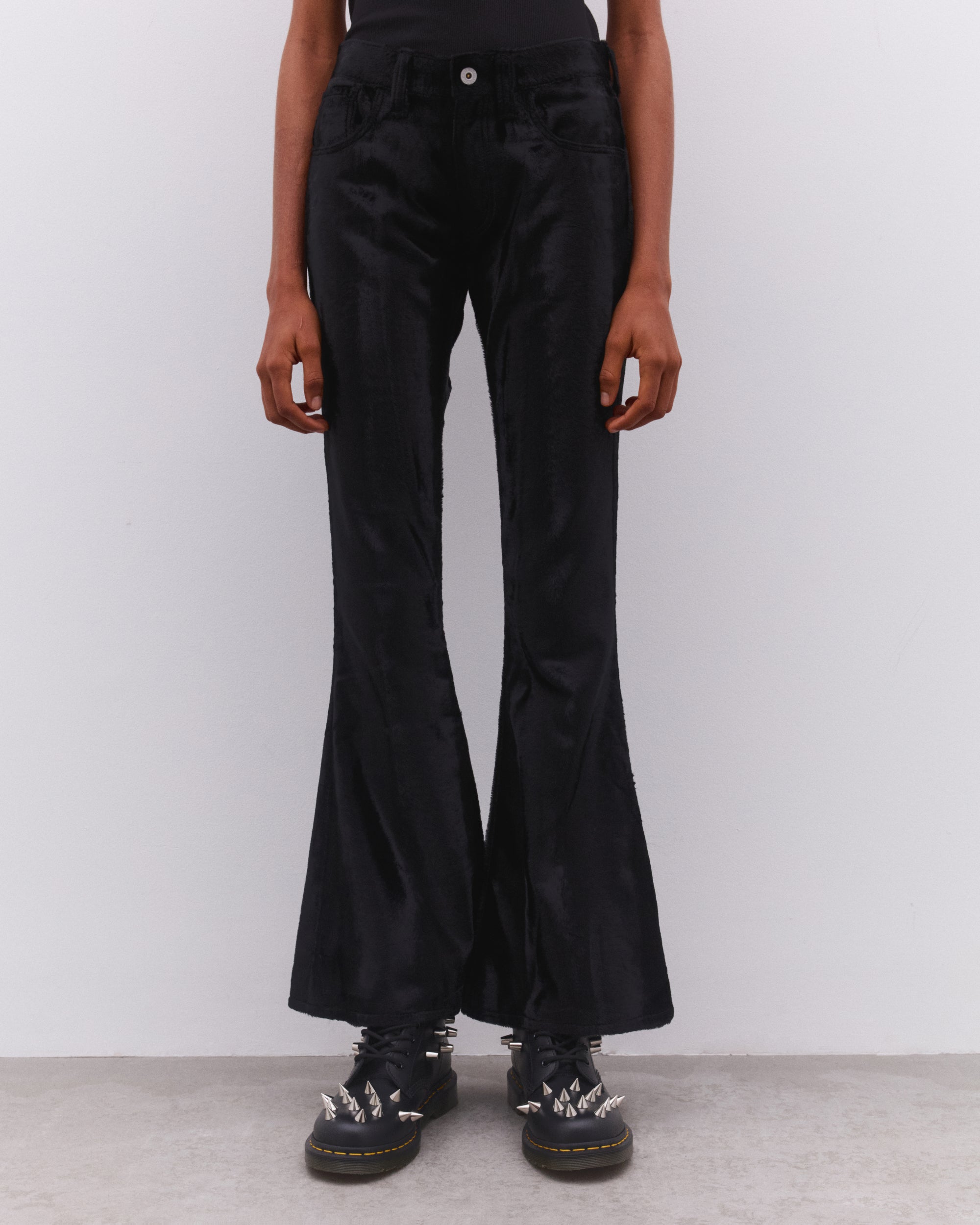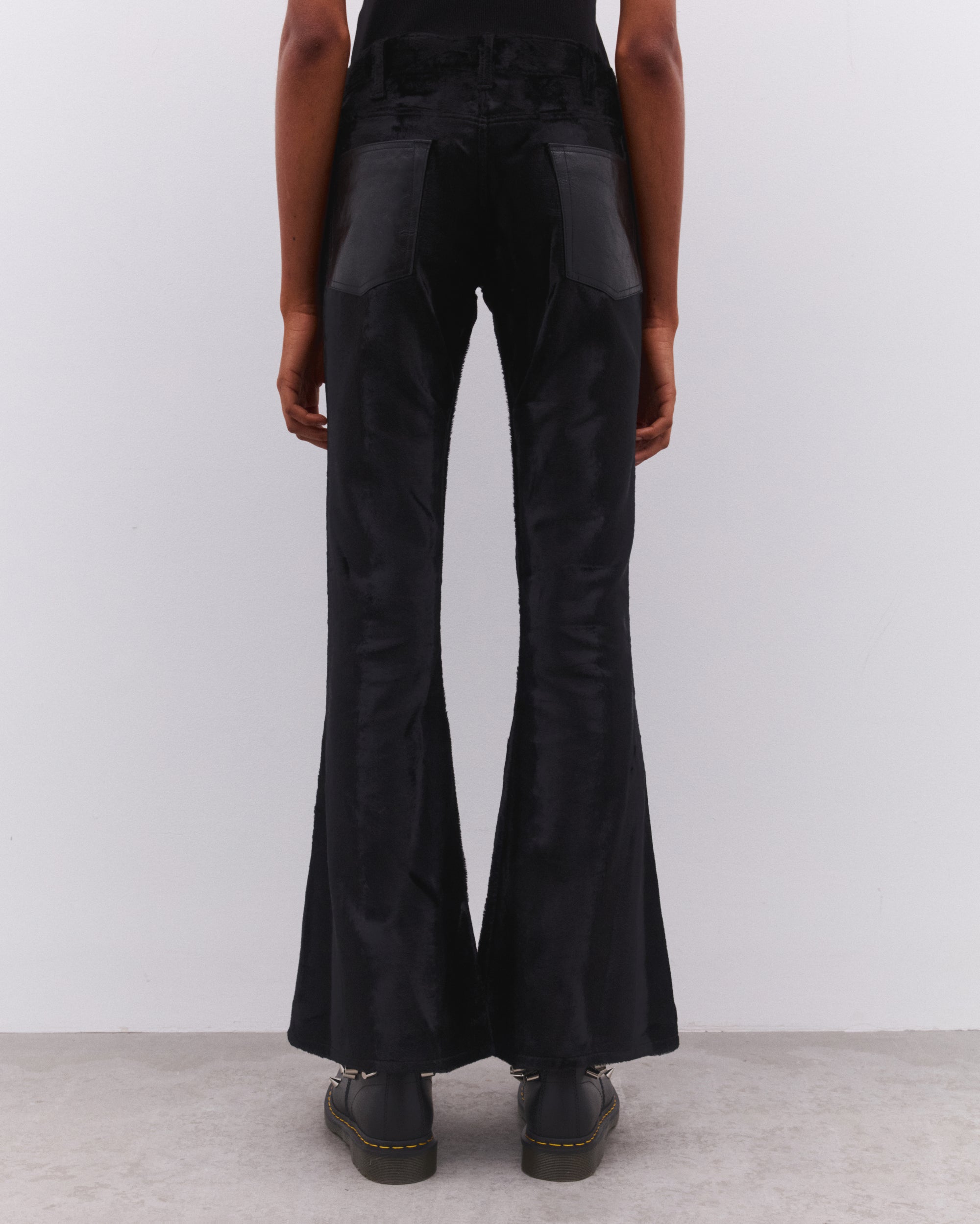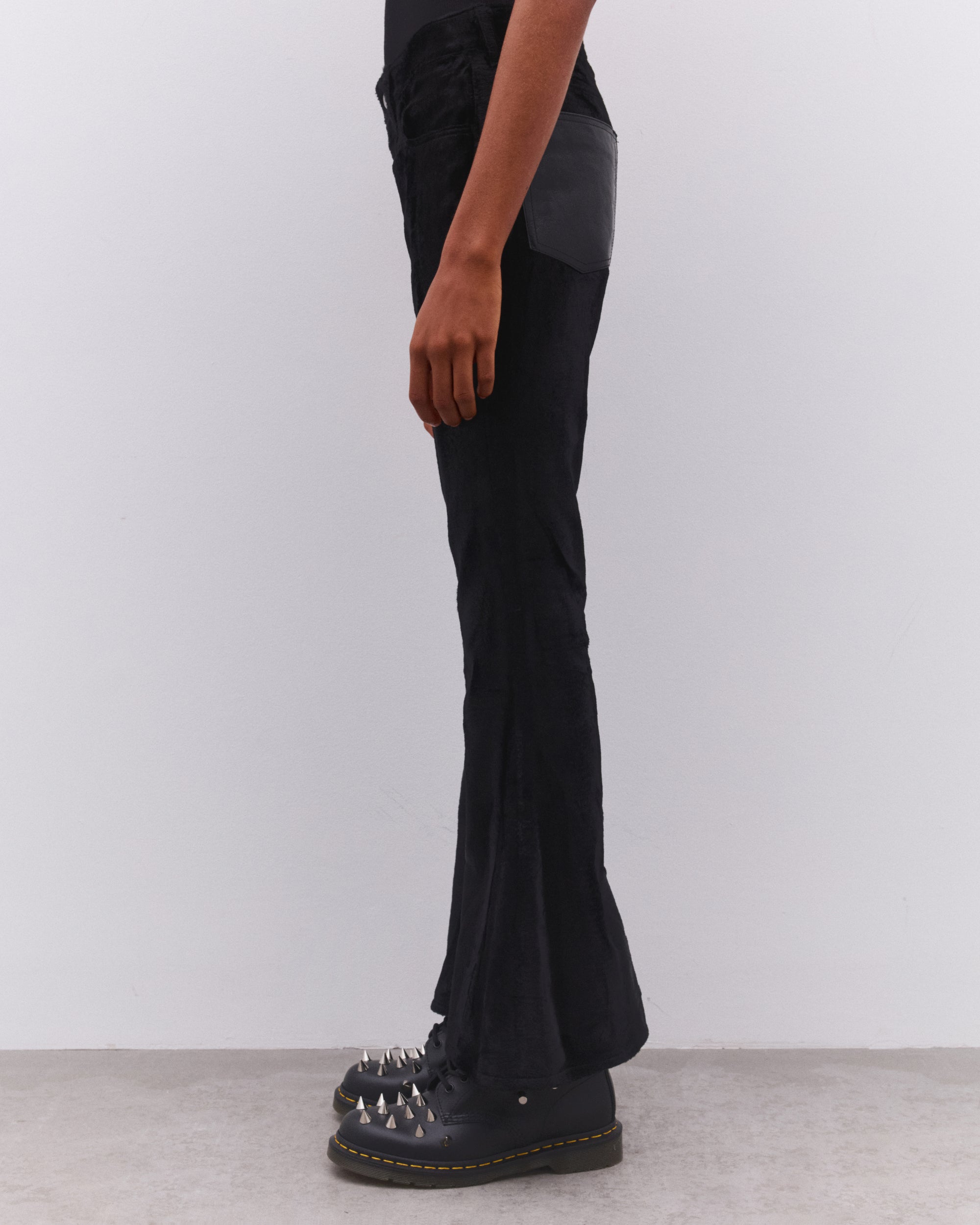 High waistSoft fabricationBelt loopsButton and fly fastening UnlinedRear contrast patch pockets