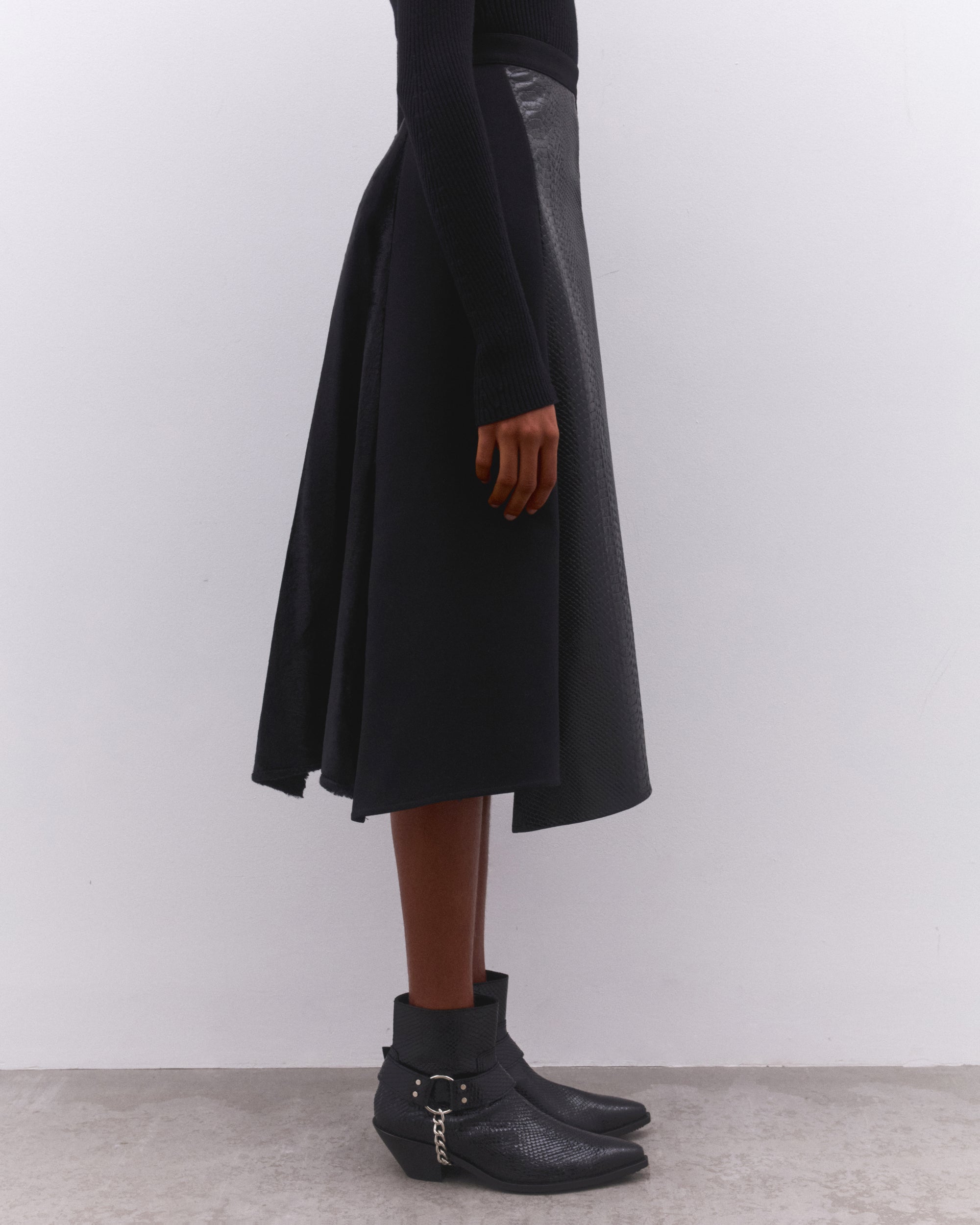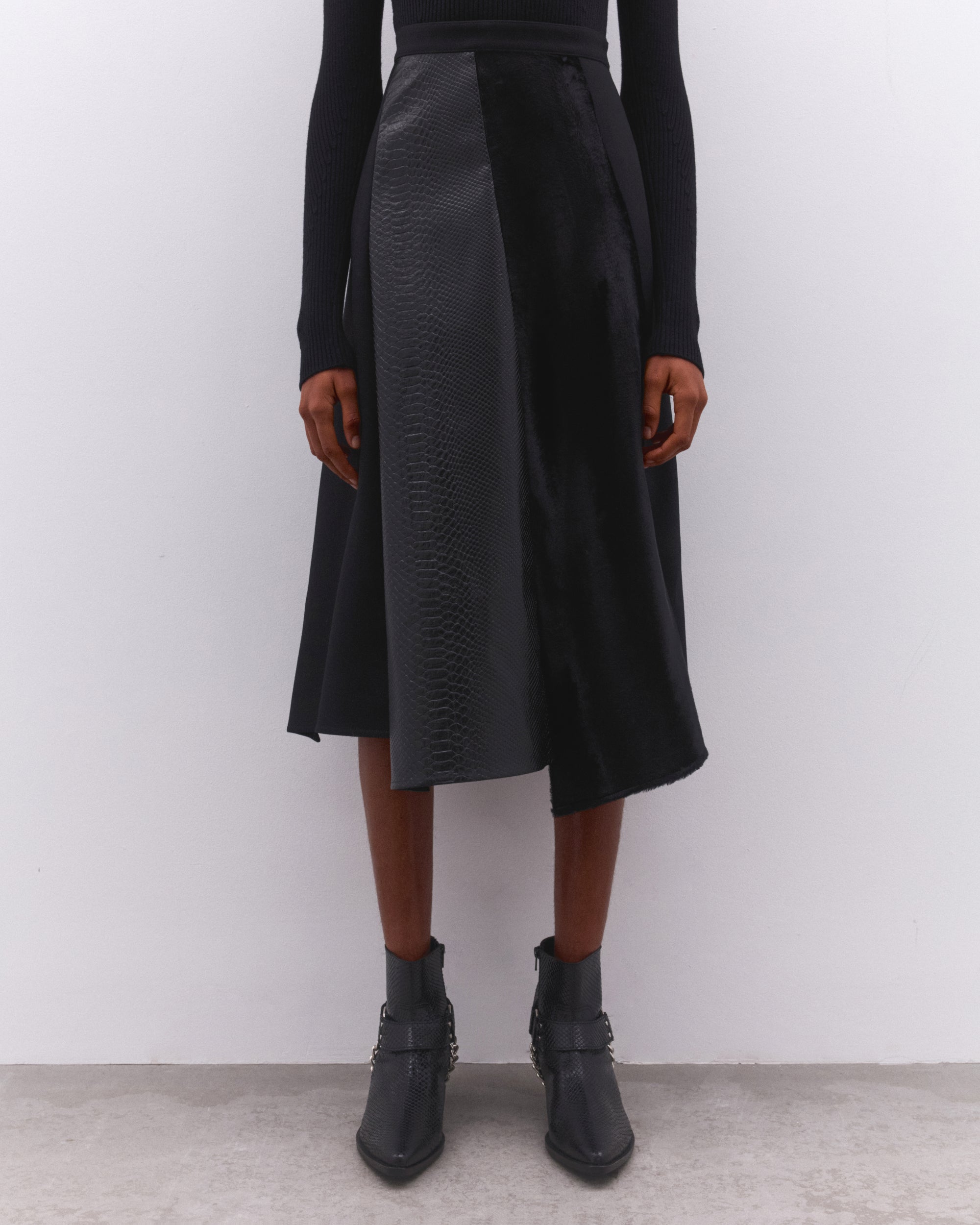 High waistedSide zip fasteningMulti-panel constructionMid-lengthLinedA-line silhouette