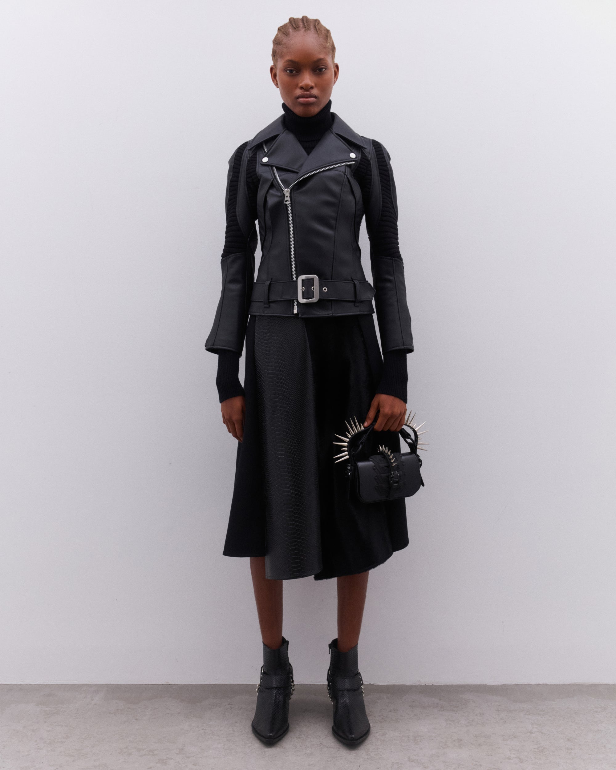 Main: 98% Wool, 2% PolyurethanePanel: 55% Rayon, 45% CottonPanel 2: 100% Synthetic LeatherLining: 100% CuproMade in Japan