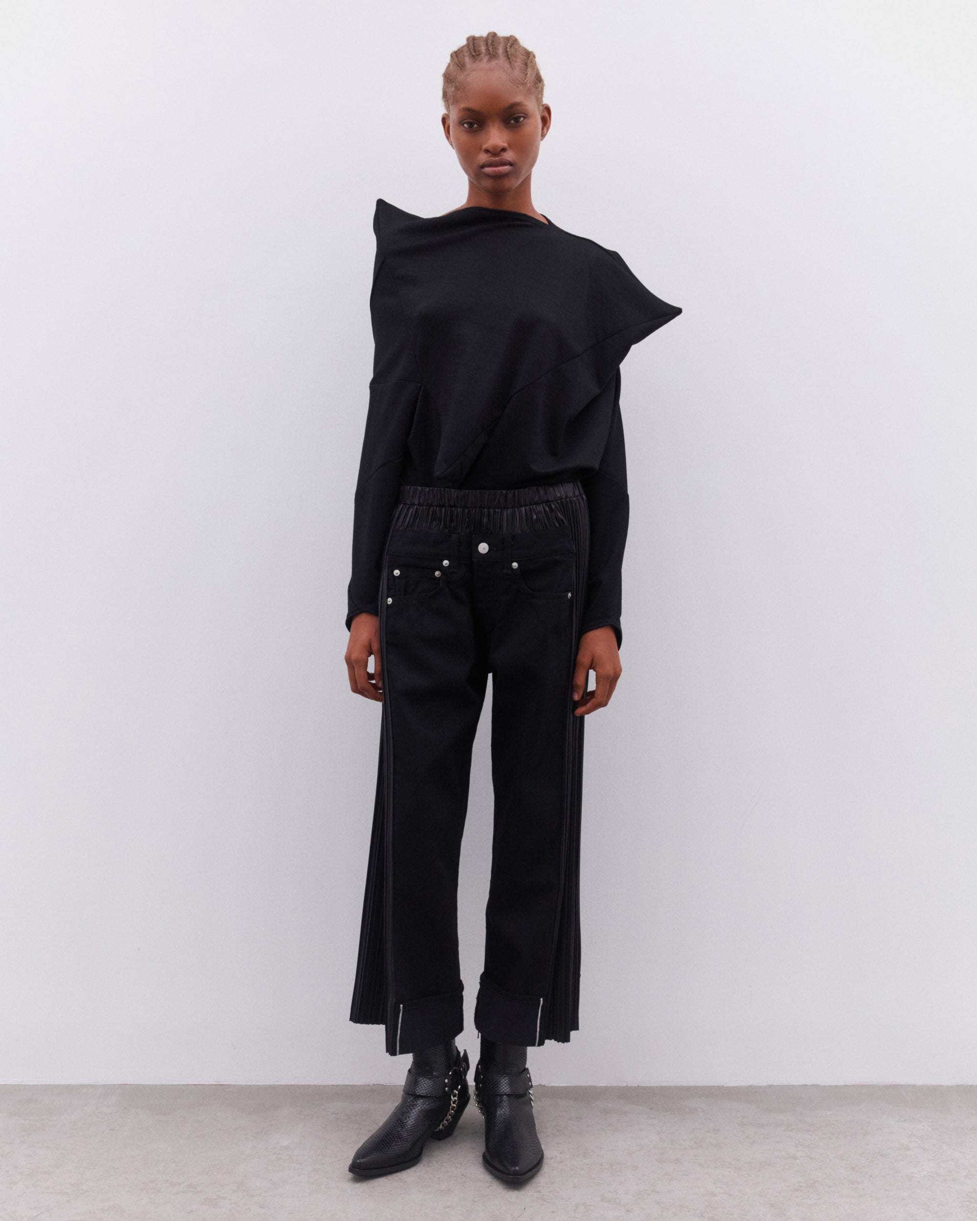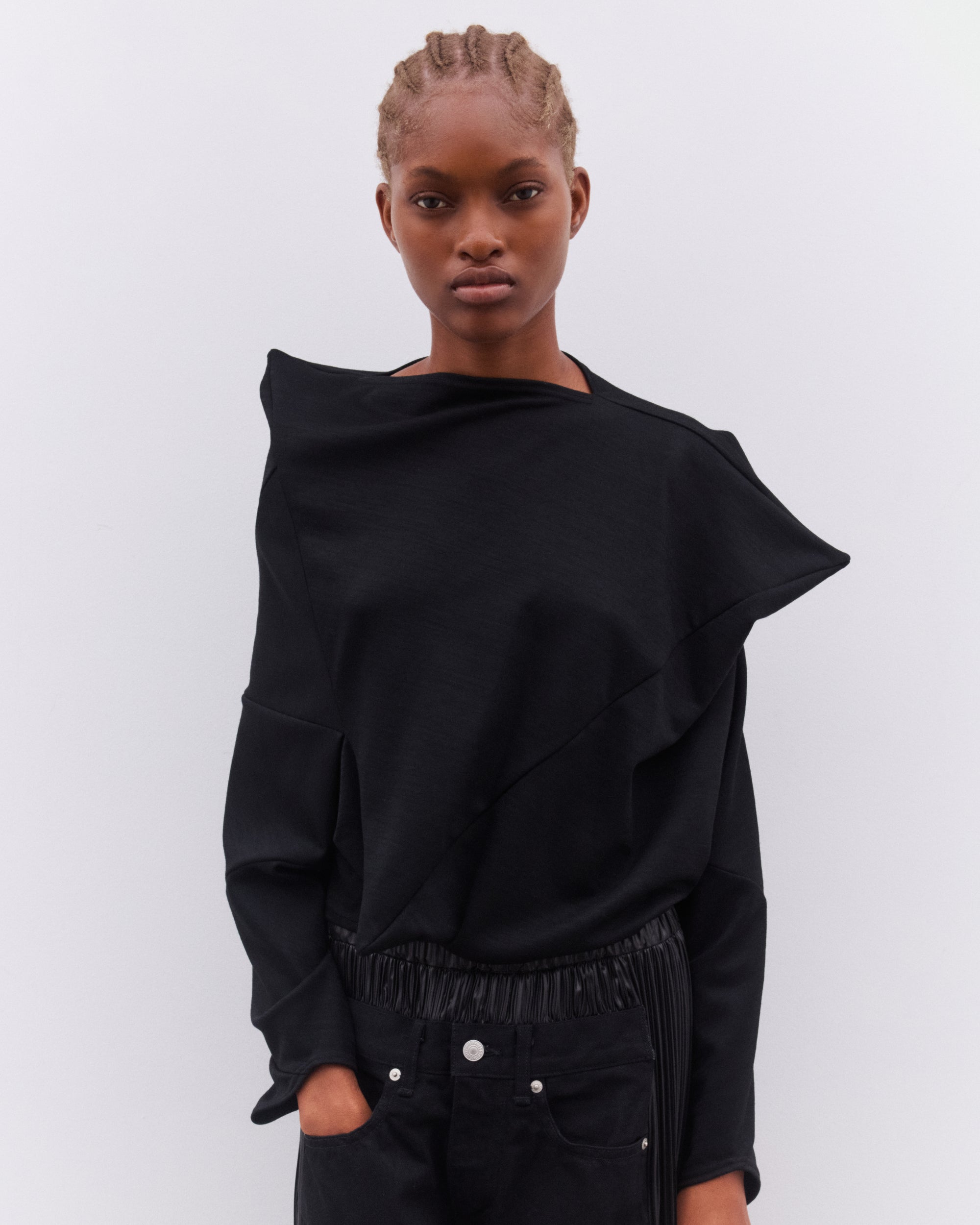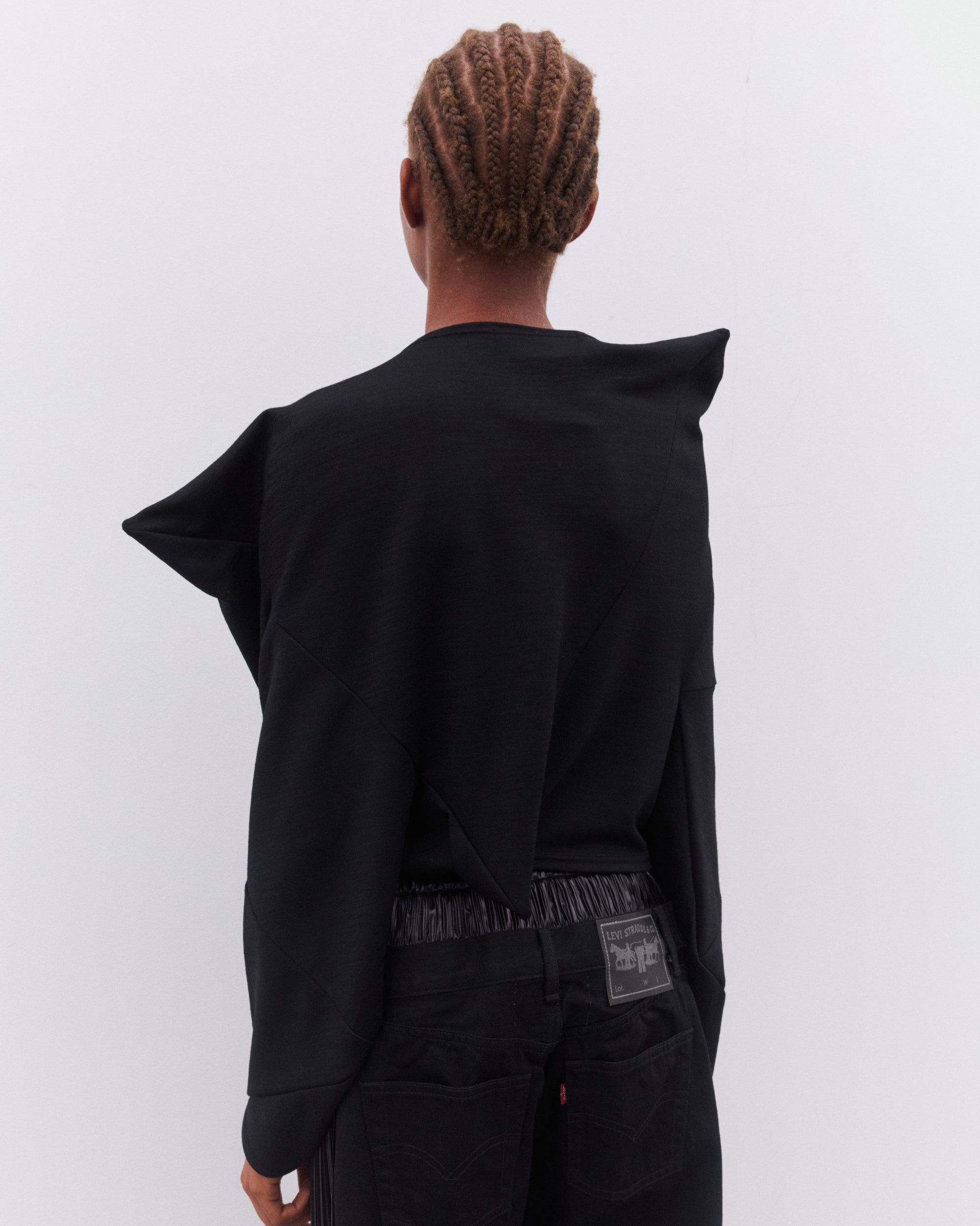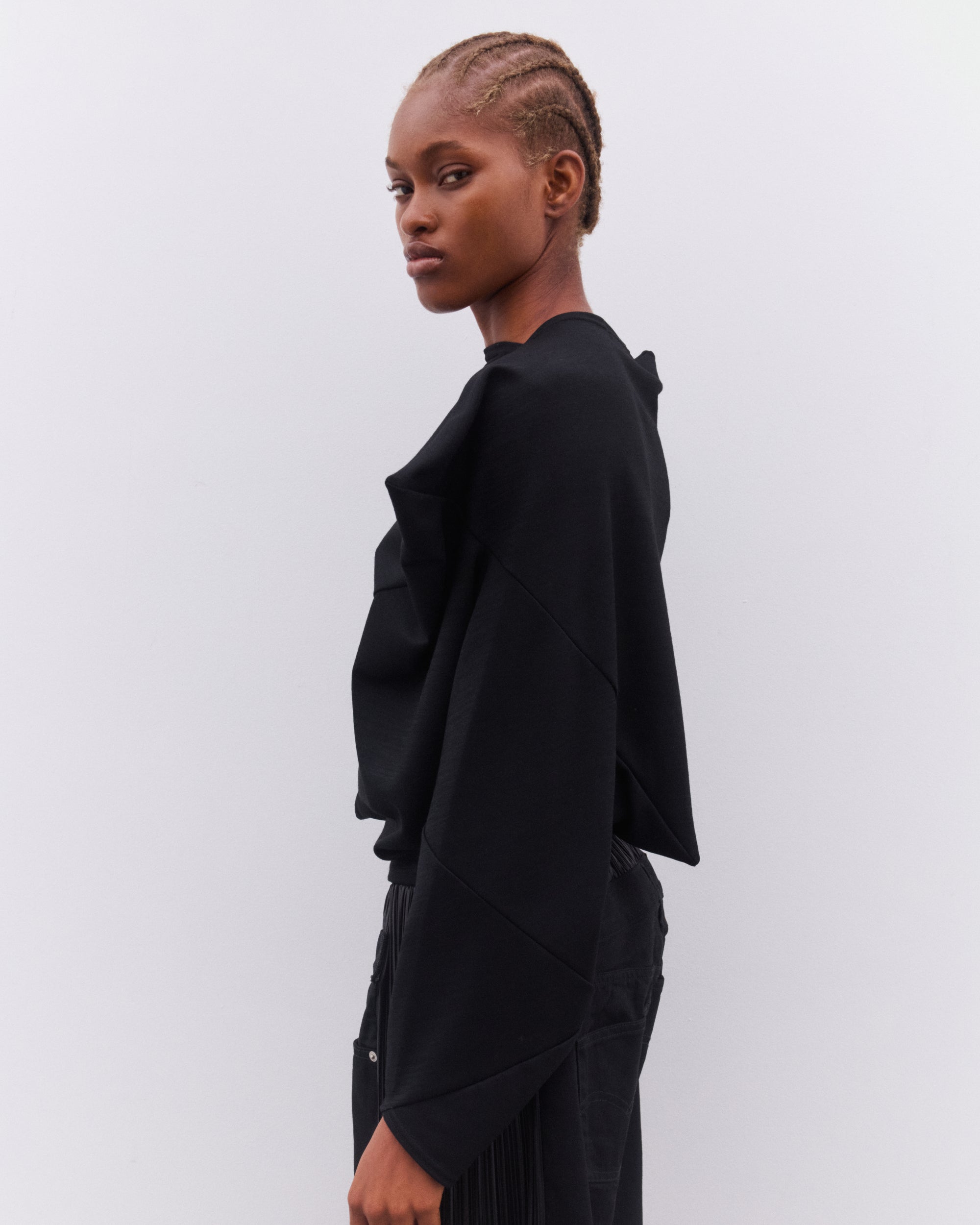 Boat neckLong sleevesPanelled constructionSpike detailing throughoutCropped