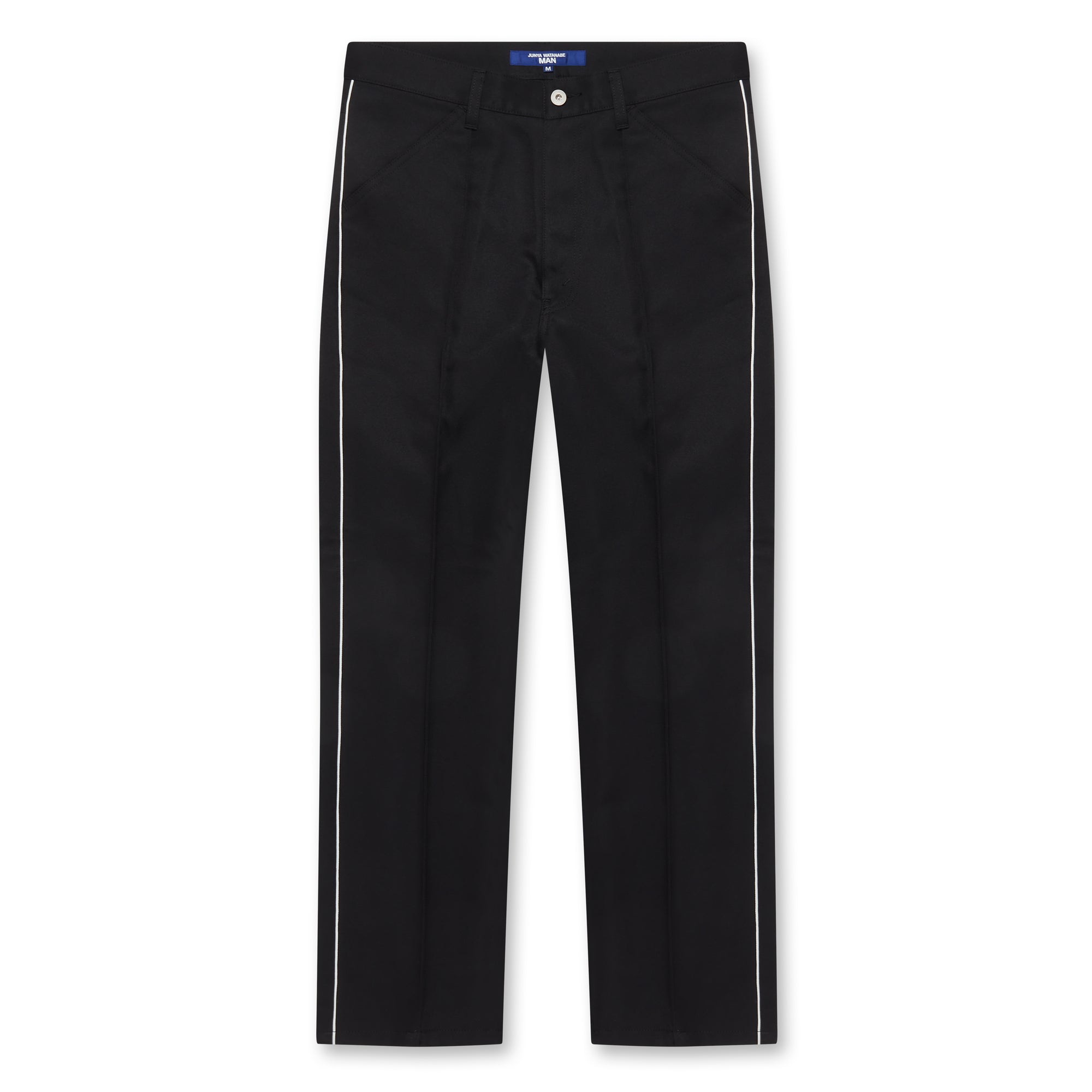 Junya Watanabe MAN rayon faux fur x polyester satin pants. Featuring beige piping, a contrast inside leg, two deep side pockets and two back pockets.