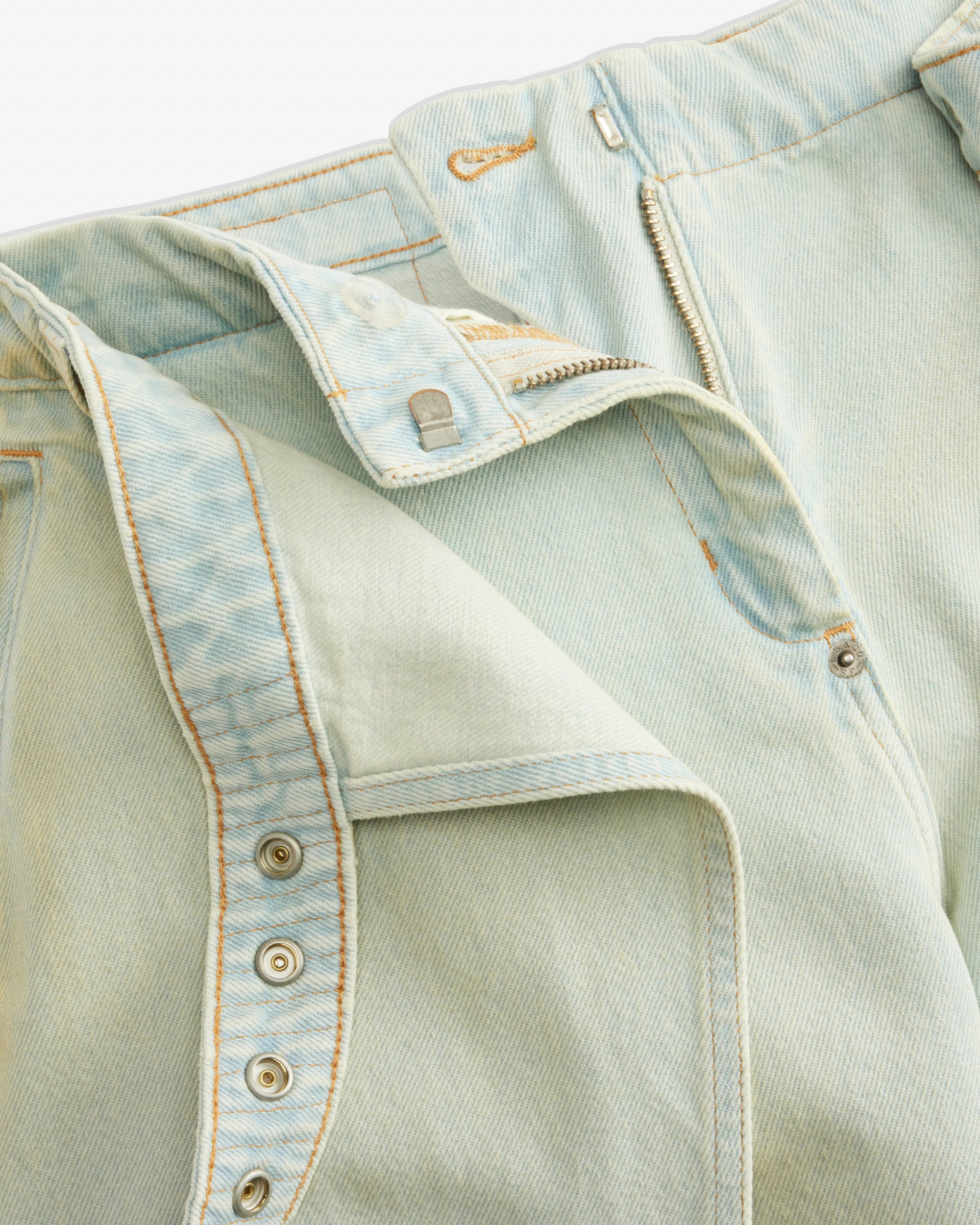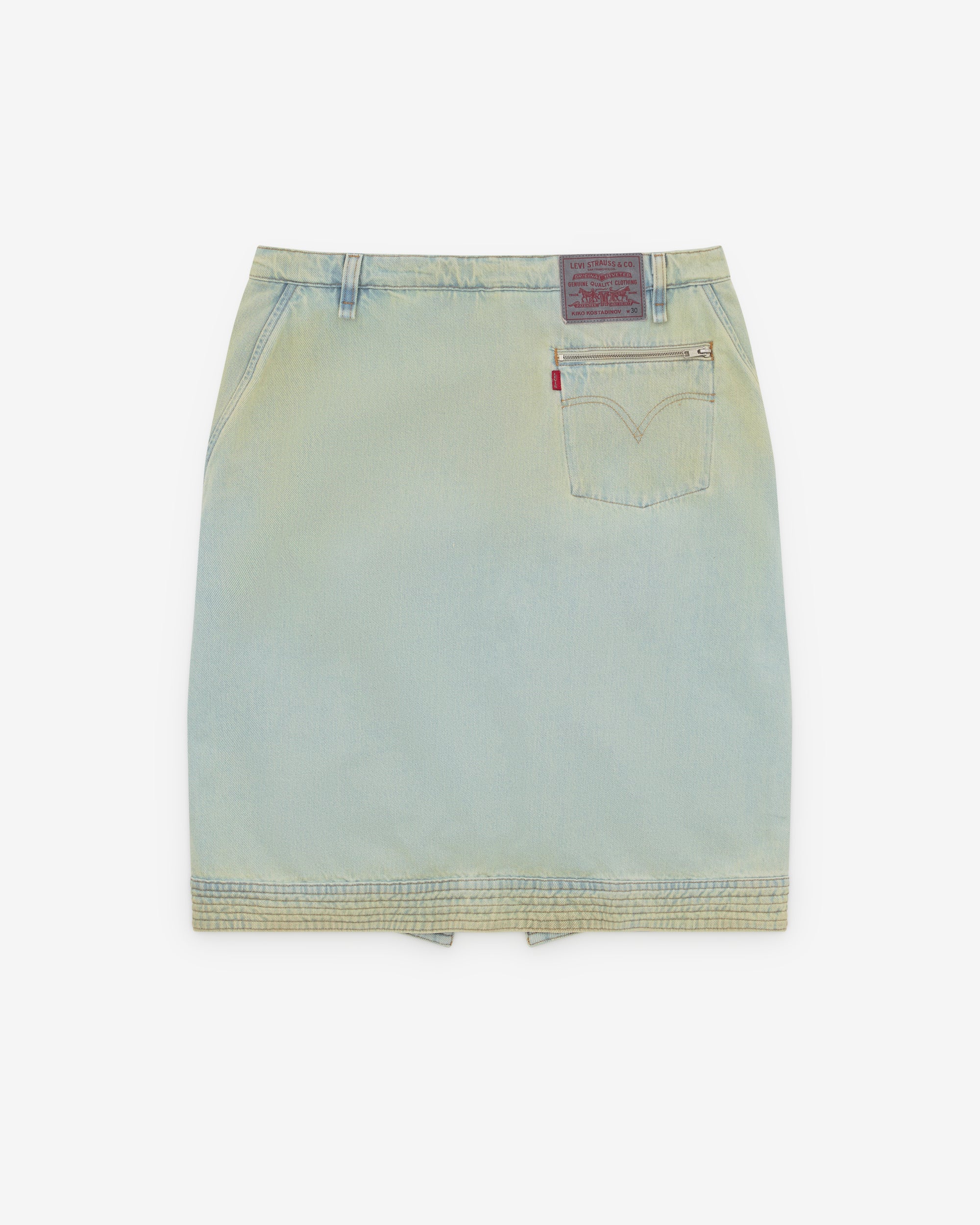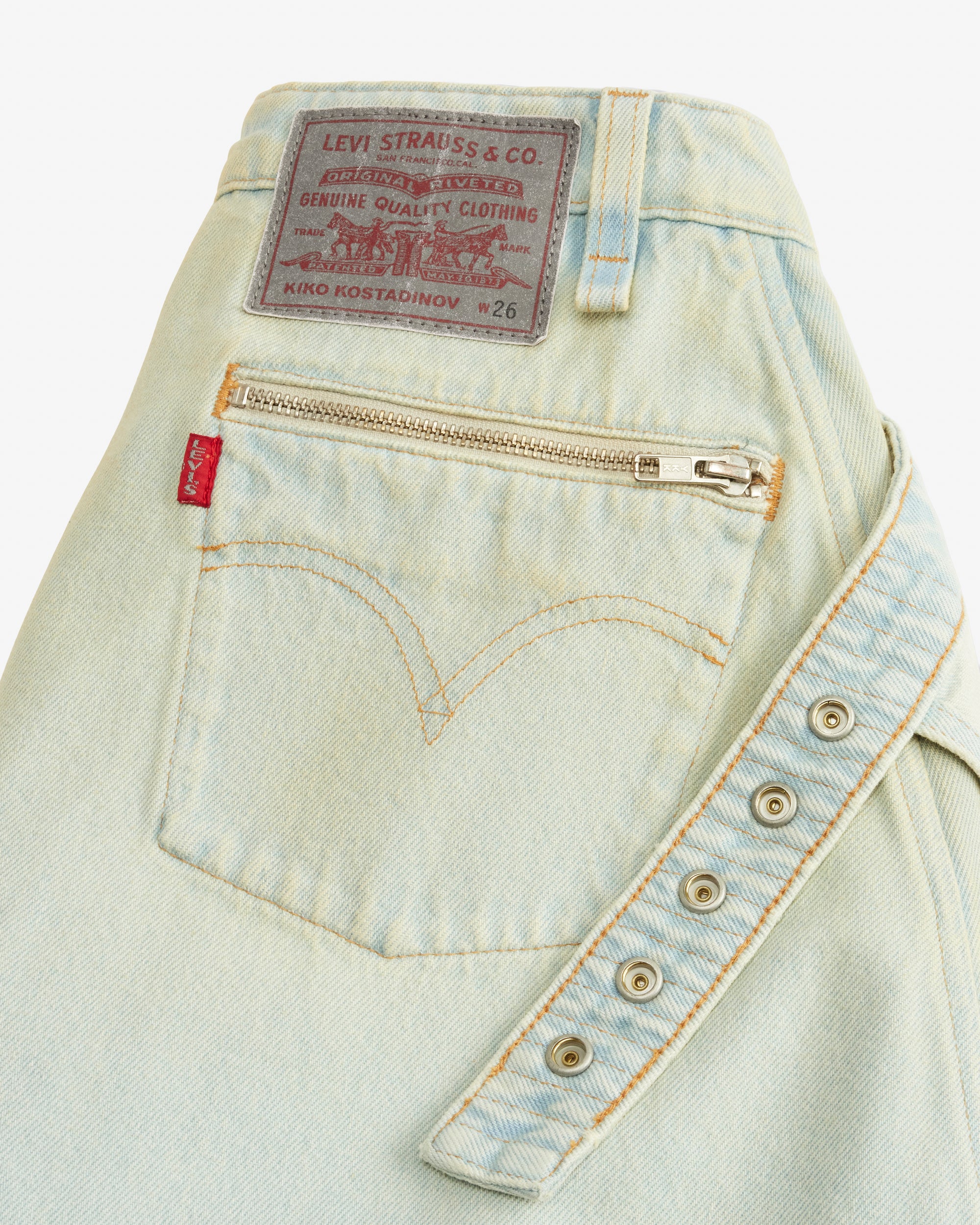 Collaborative project between Kiko Kostadinov and Levi'sShorts with skirt over-layRibbed detailingZip patch pocketsPress stud belt fastening