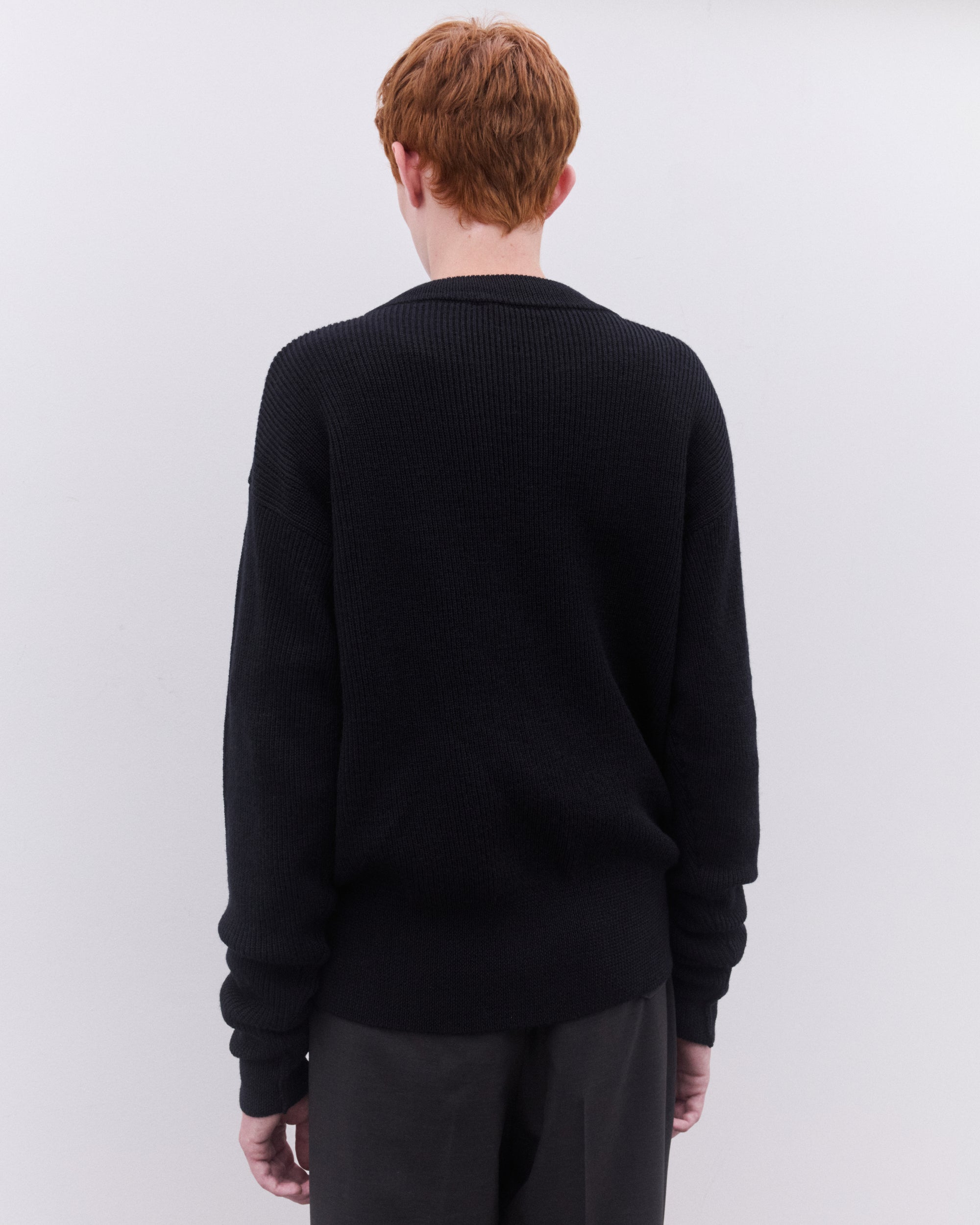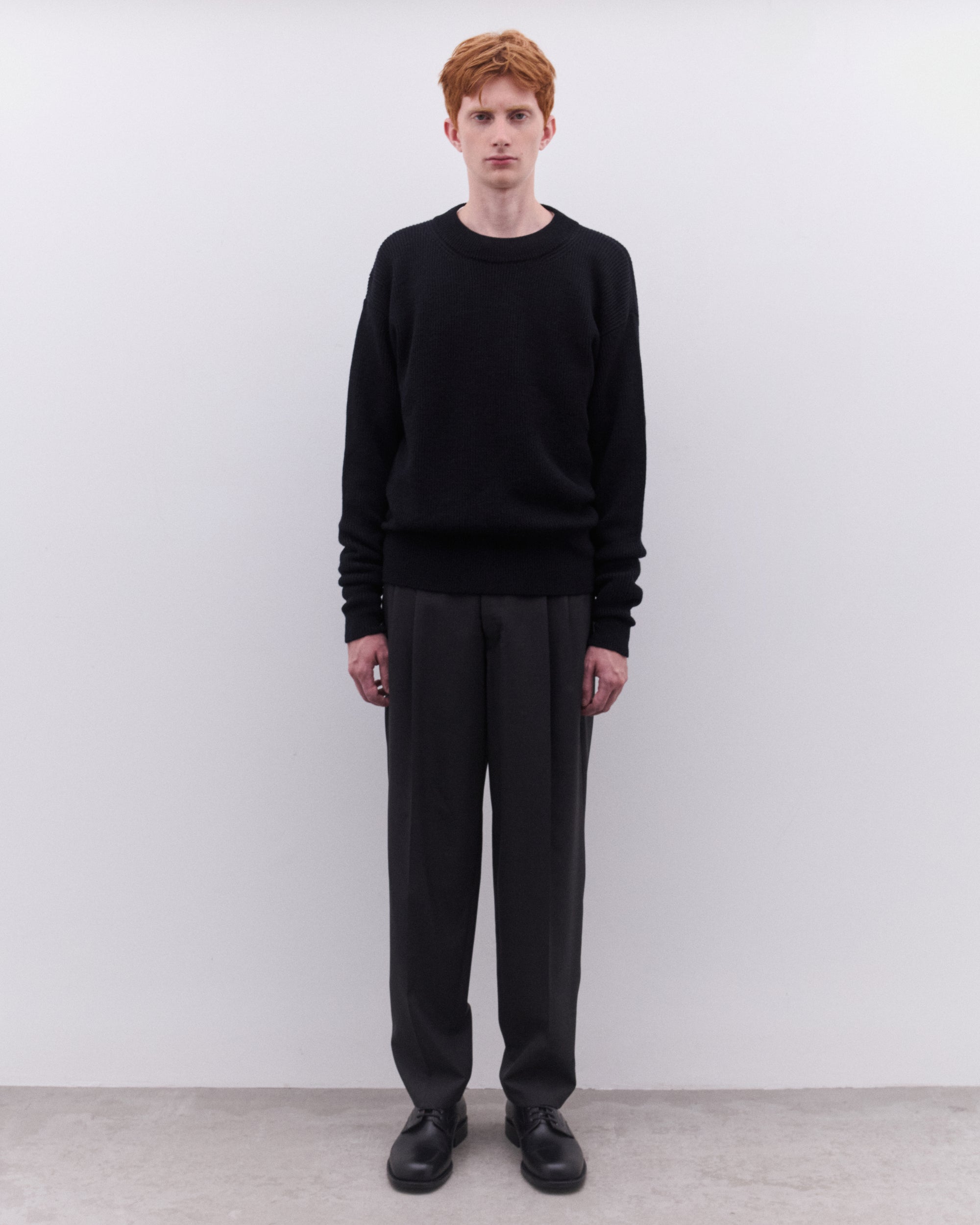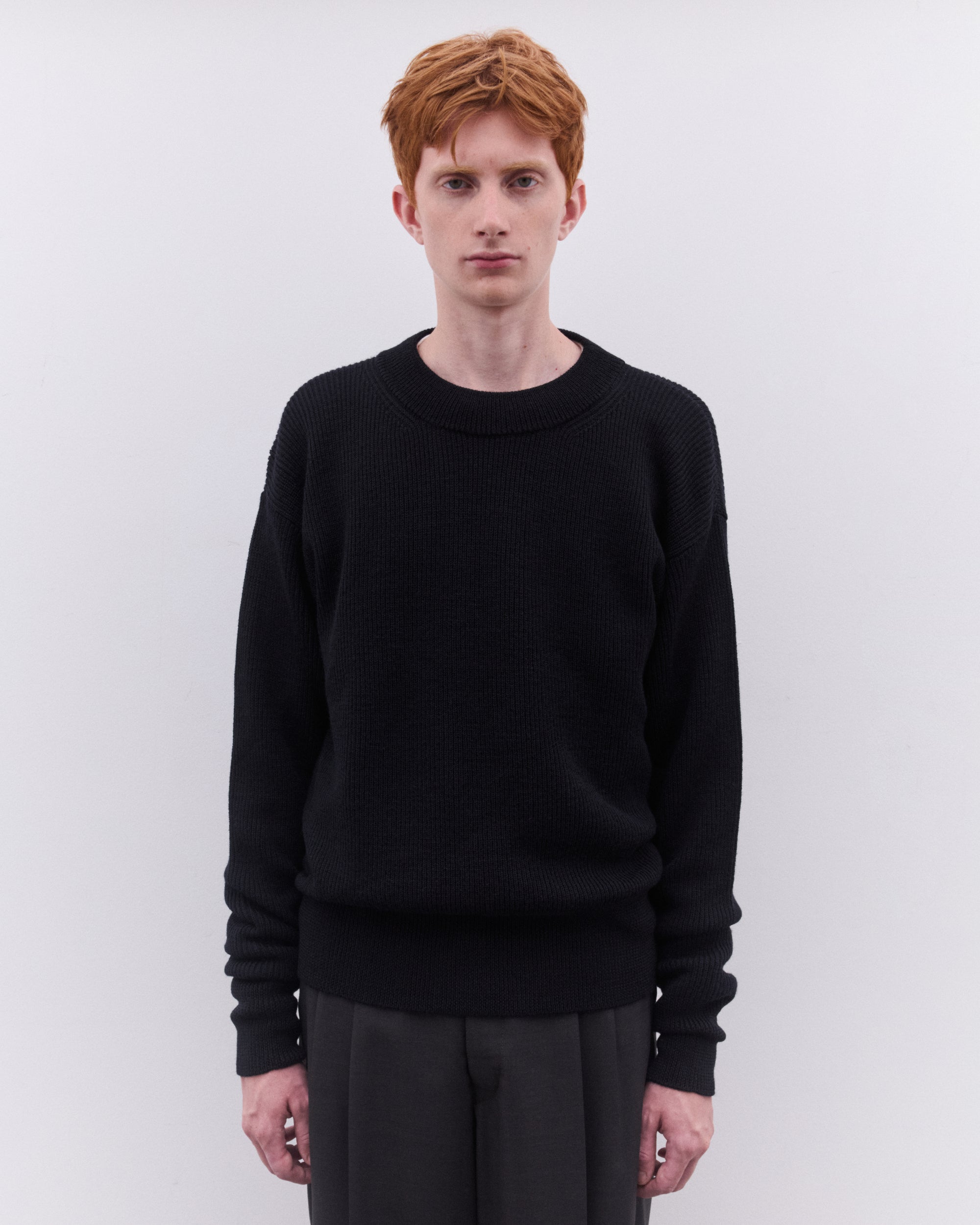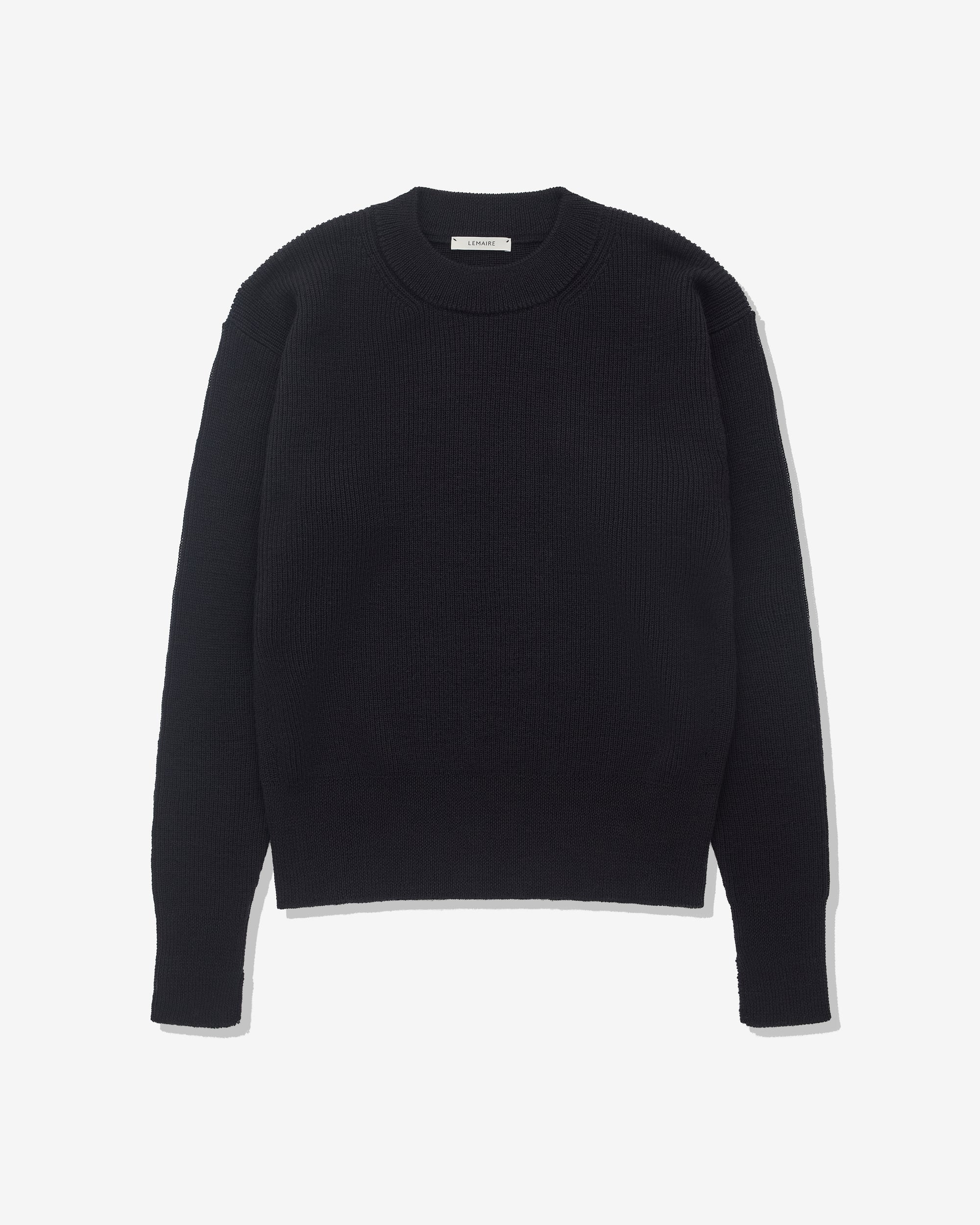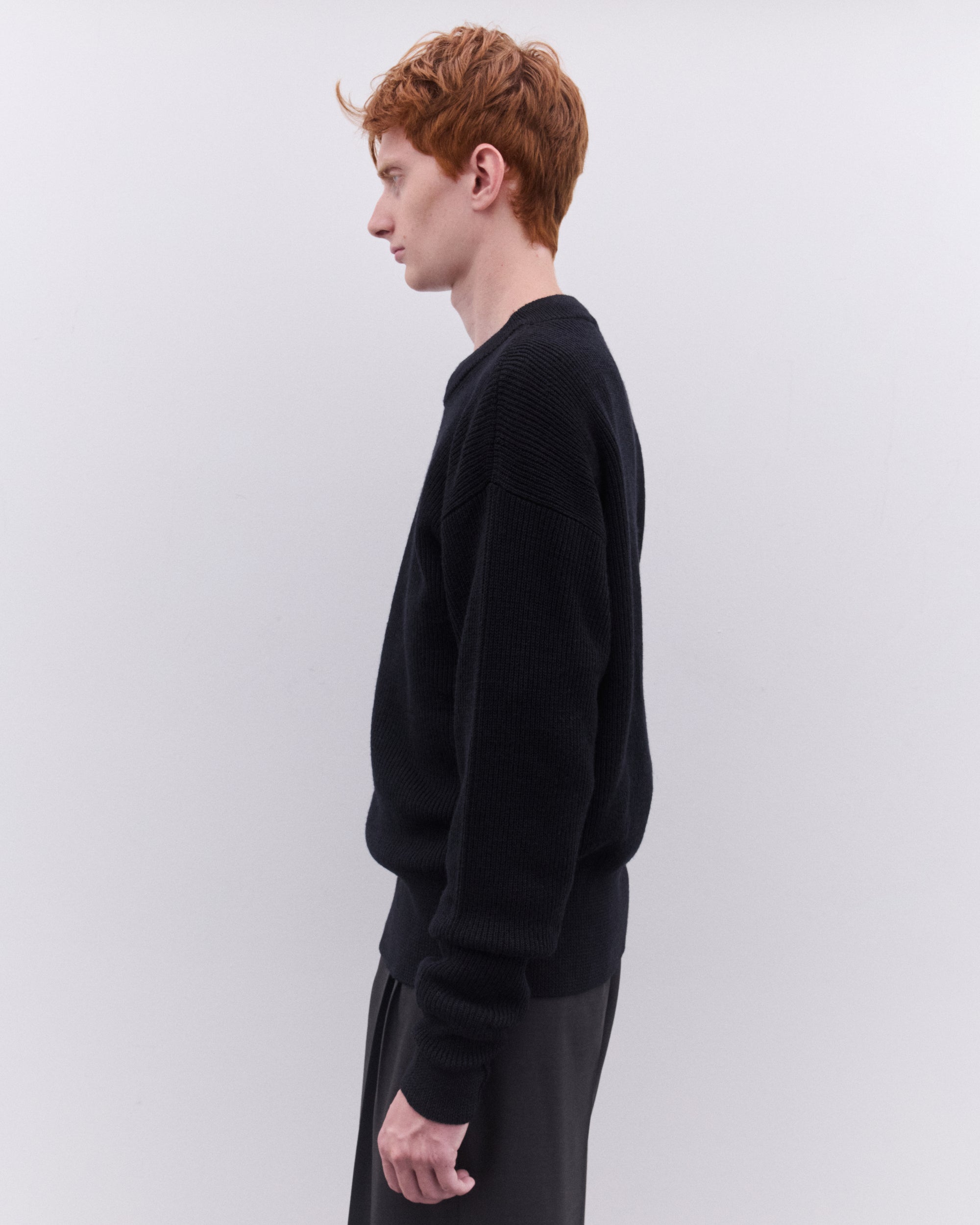 Boxy crewneck sweater in virgin woolCrewneckLong sleevesRib-knit trim at the neckline, cuffs, and waist