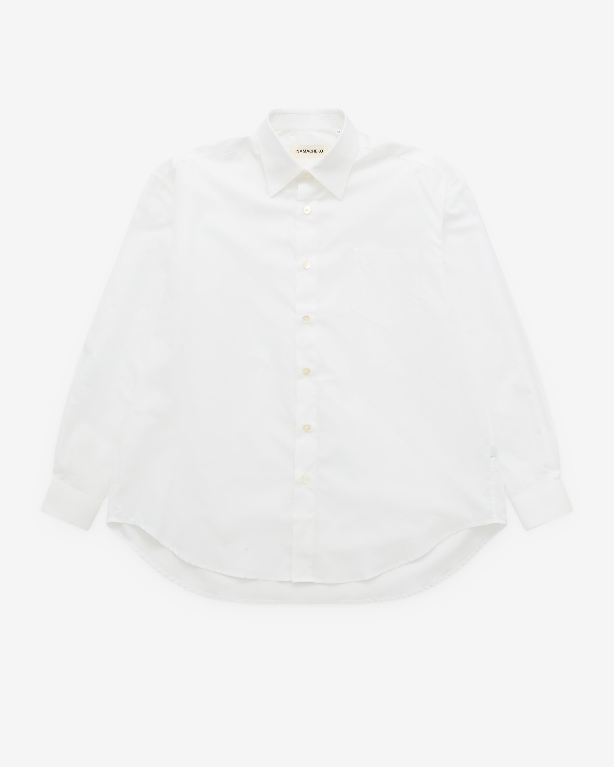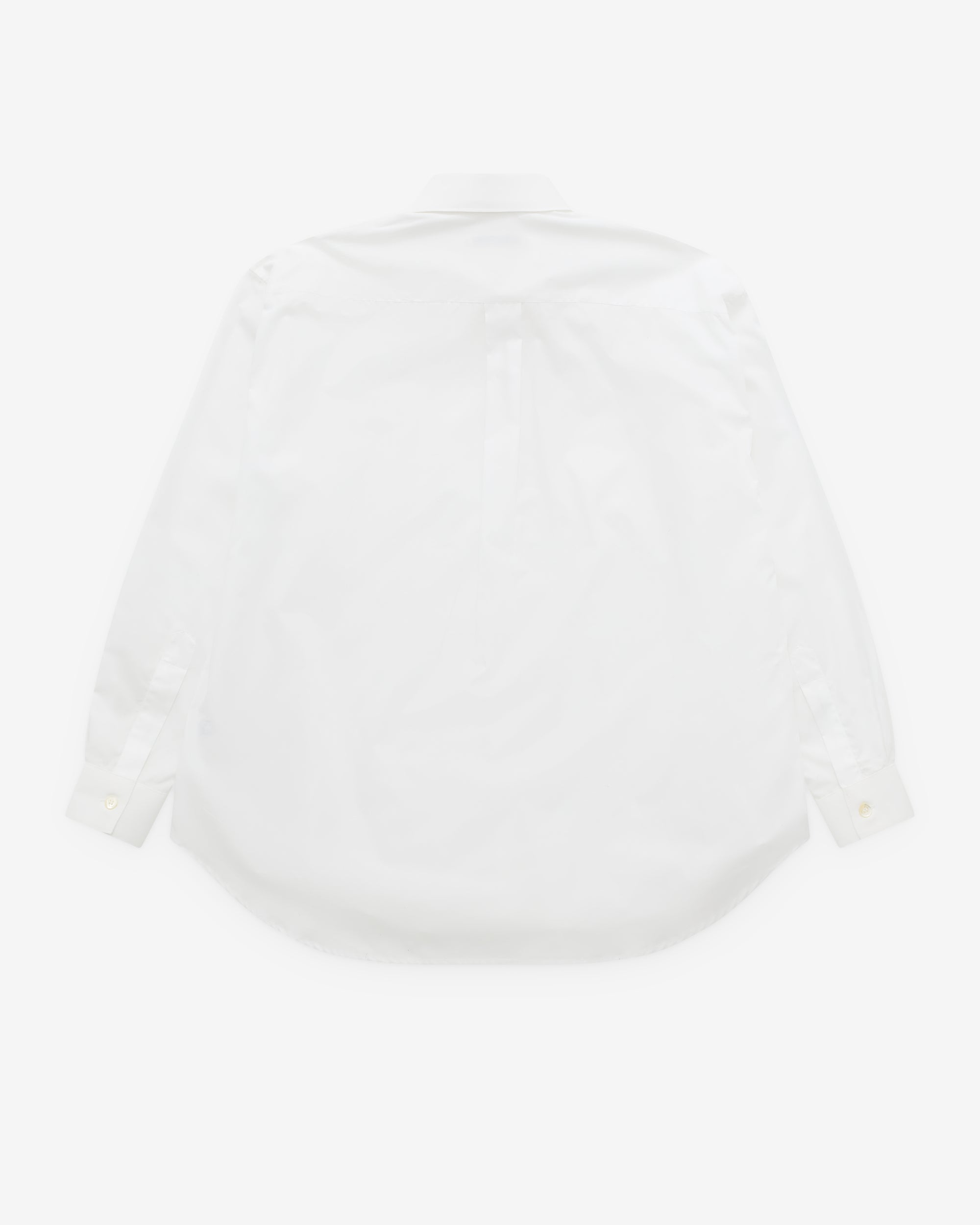 Cotton poplin fabricPoint collarFront button closureSingle chest pocketCurved shirttail hem