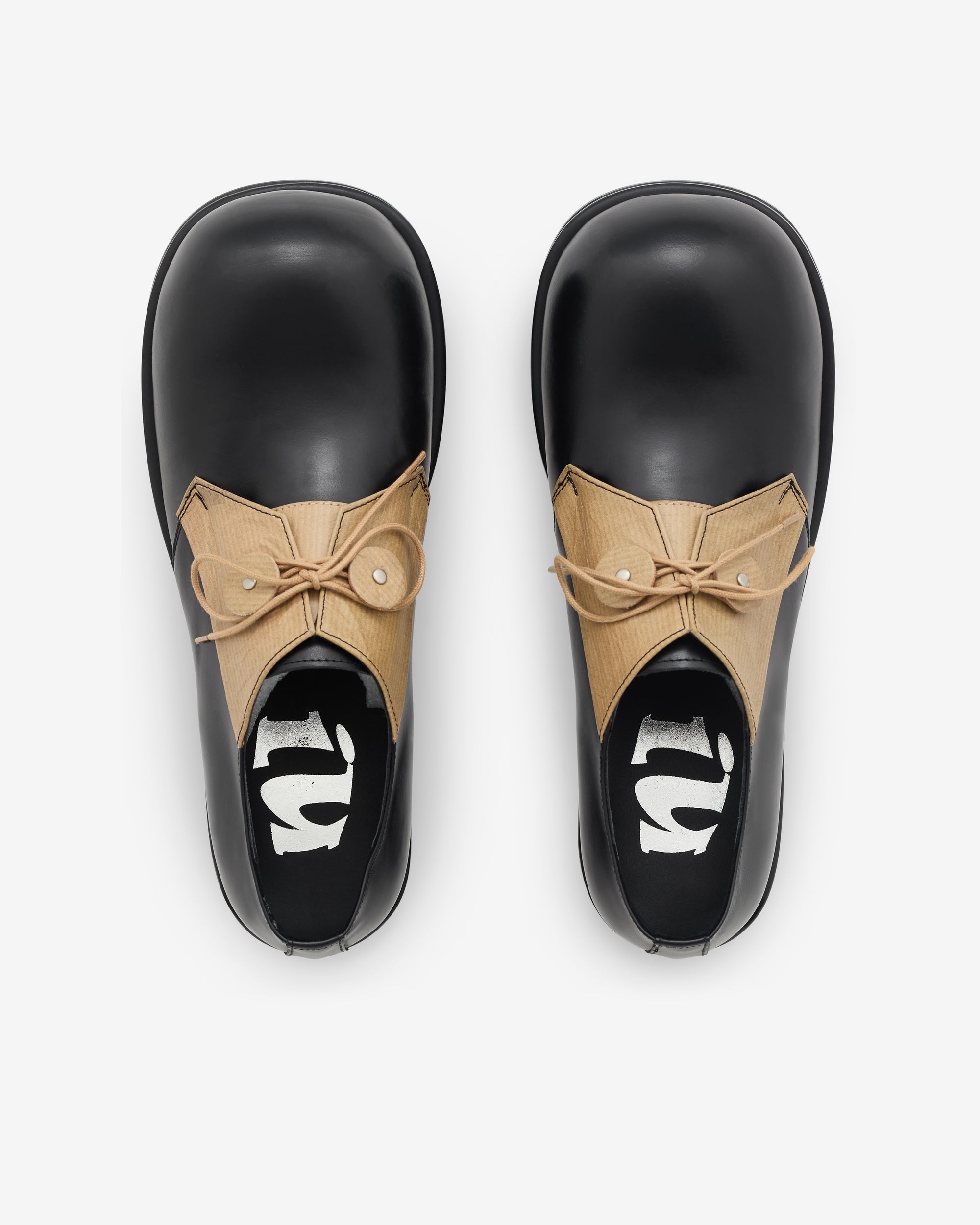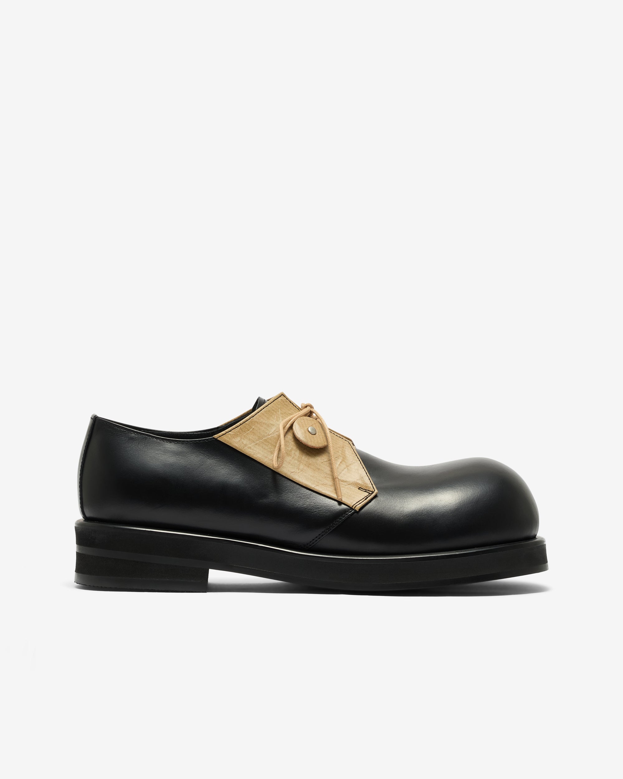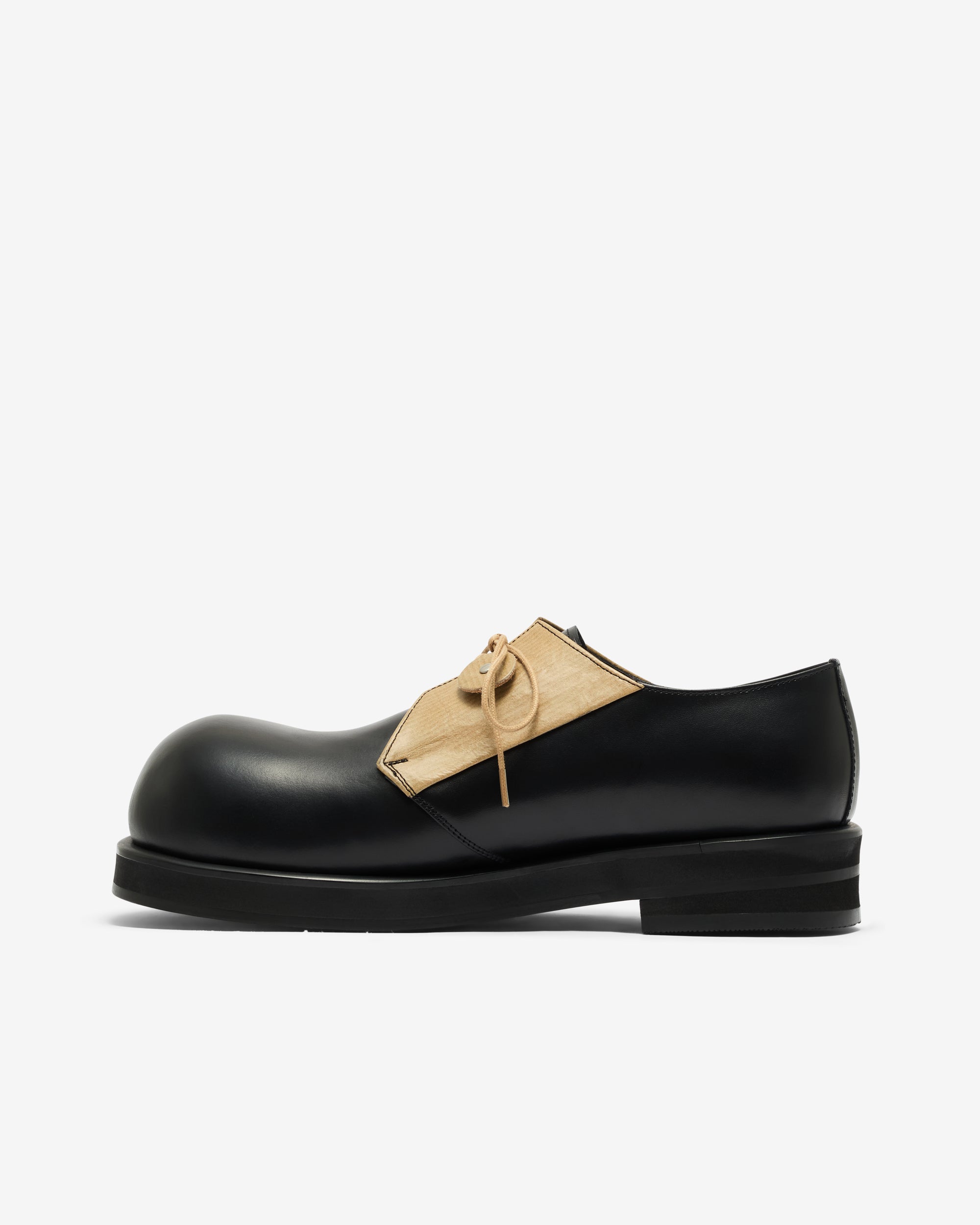 Exaggerated round toeContrast panelSponge rubber soleOrtholite insole4cm heel height