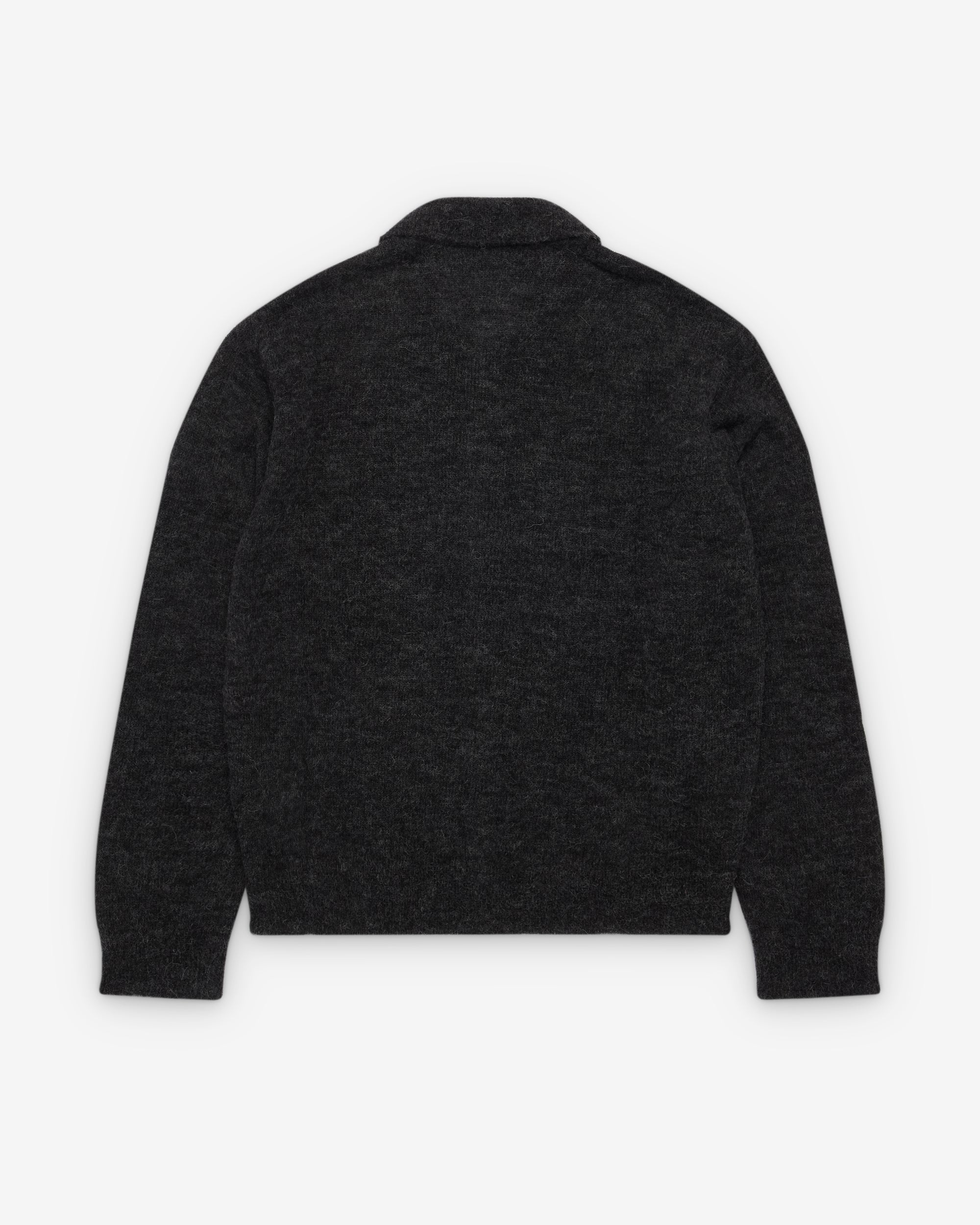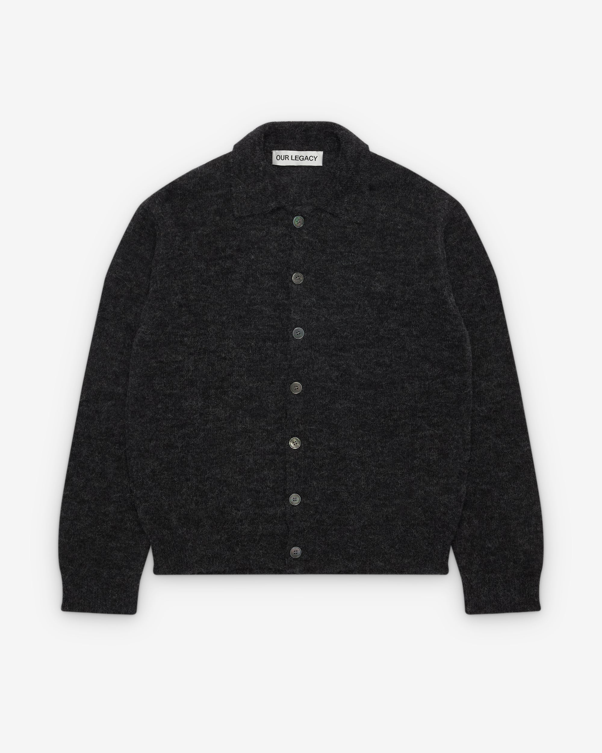 Delicate fabricFine knitPeaked collarMother of pearls buttonsStraight deep ribbed hemRelaxed, boxy fit