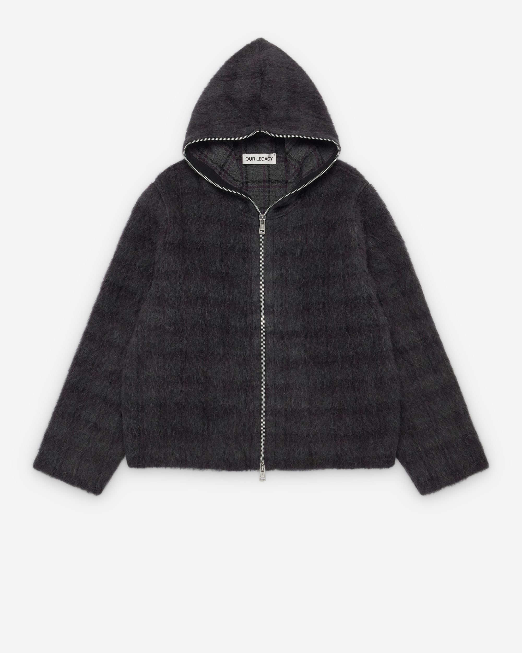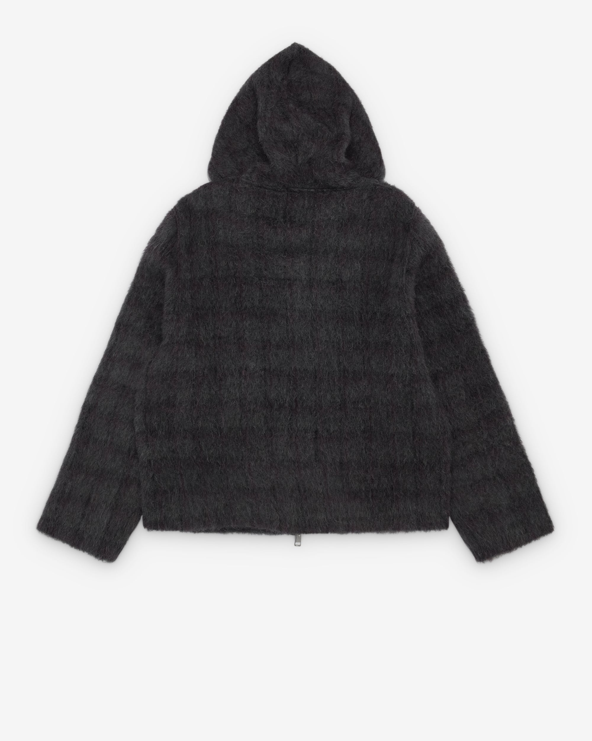 Two-way zip fasteningAll over check patternHooded Long sleevesStraight hem
