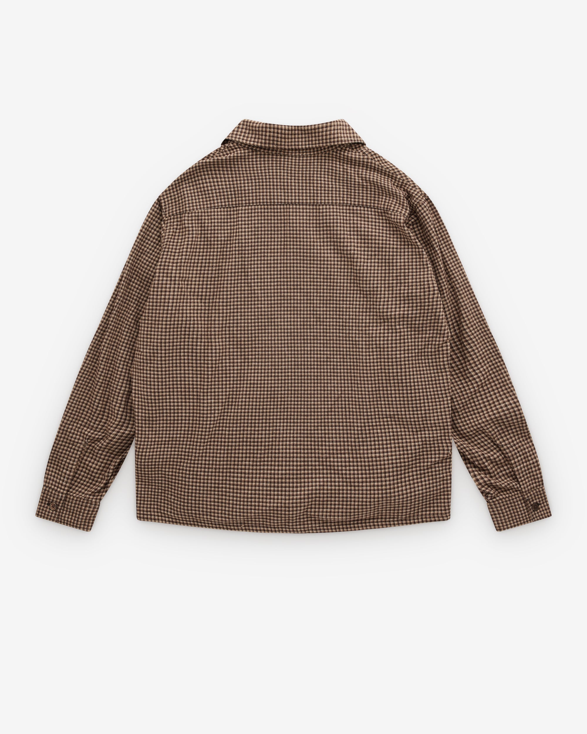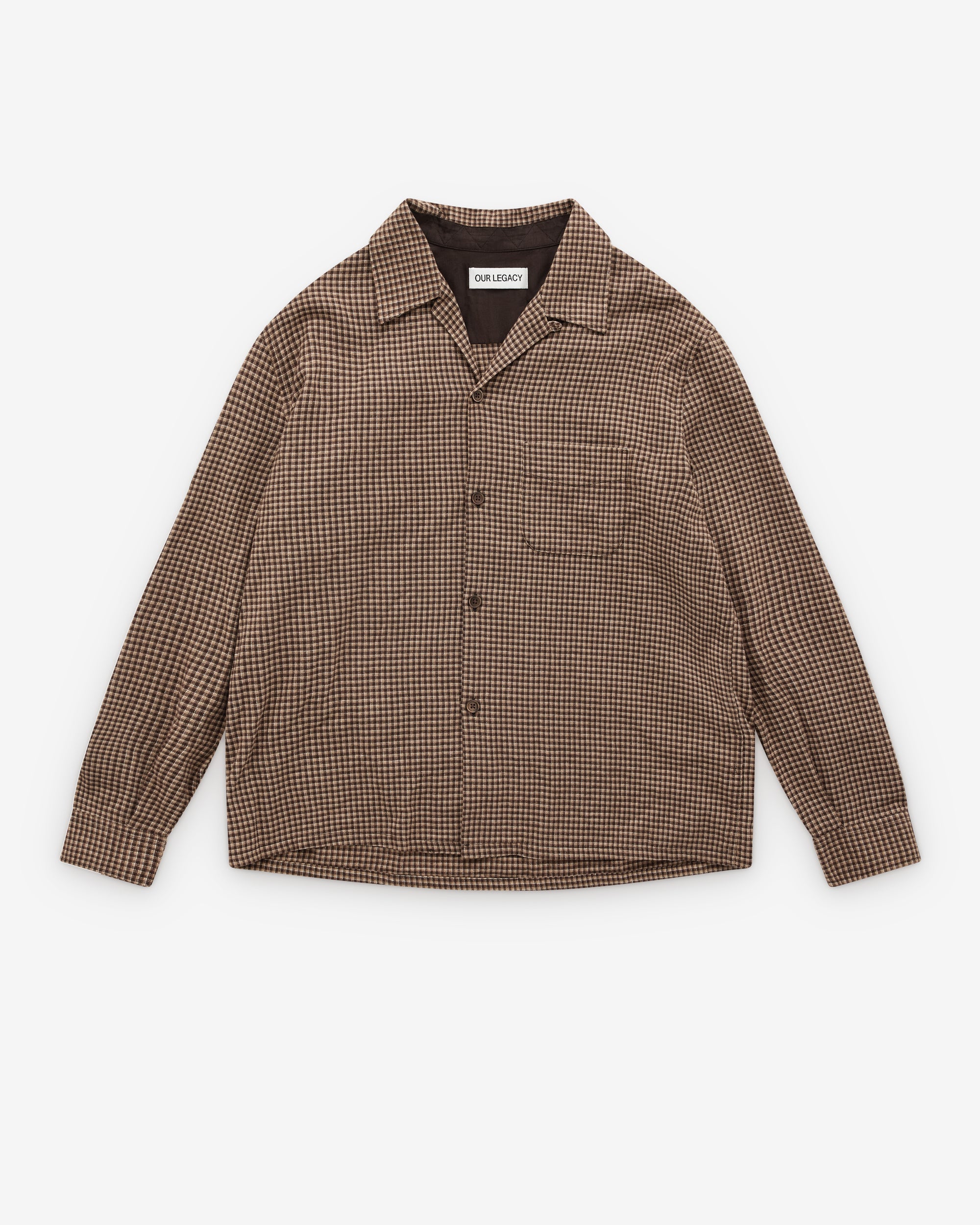 Soft check flannelMother of pearl buttonsSingle chest pocketStraight hemBoxy fit